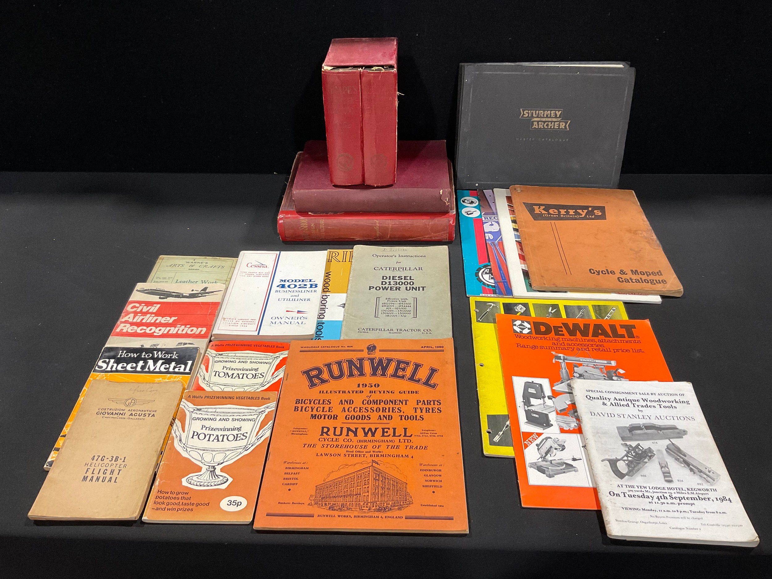Mechanical Catalogues, Design & Manufacture - Swaylans, Edward Boot & Shoe design and manufacture, with 126 inserted plates, 1905, tooled cloth binding; a 1950’s bicycle wholesale catalogue by RUNWELL of Birmingham, a 1965 Stanley tools export price list catalogue; motorcycle catalogue; engineering books; a Caterpillar diesel D13000 power unit operators instruction manual; J. Simple & Sons tool catalogue; etc qty