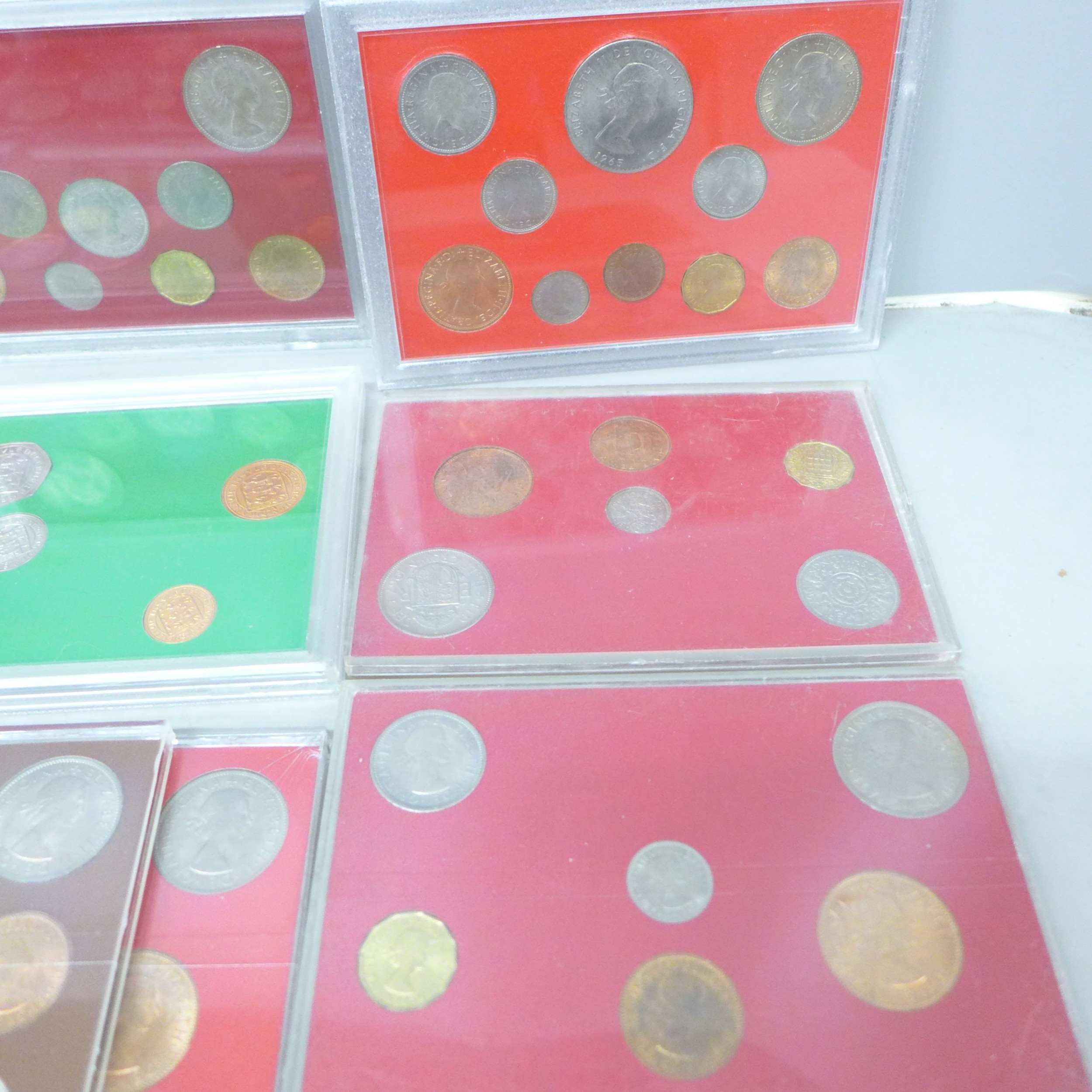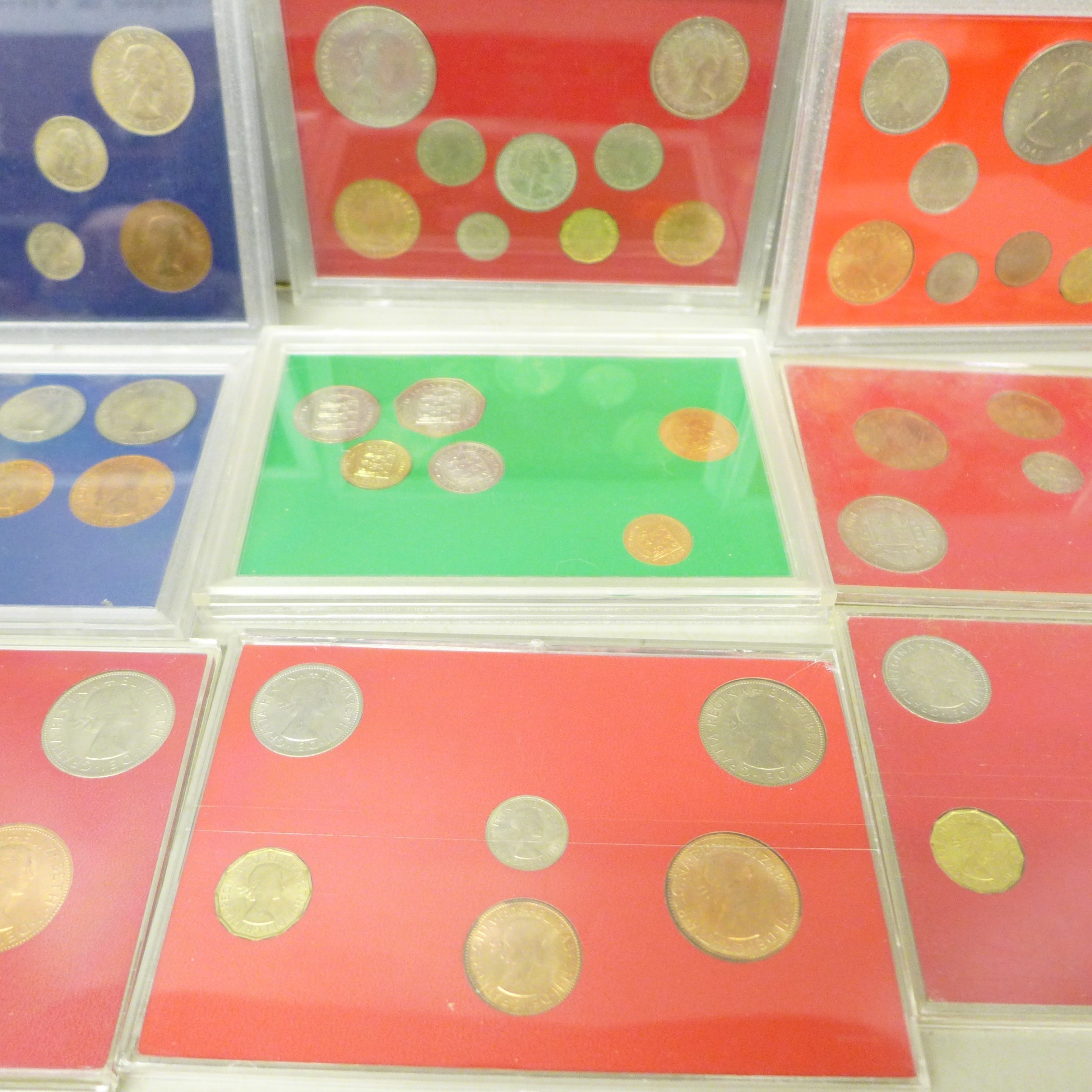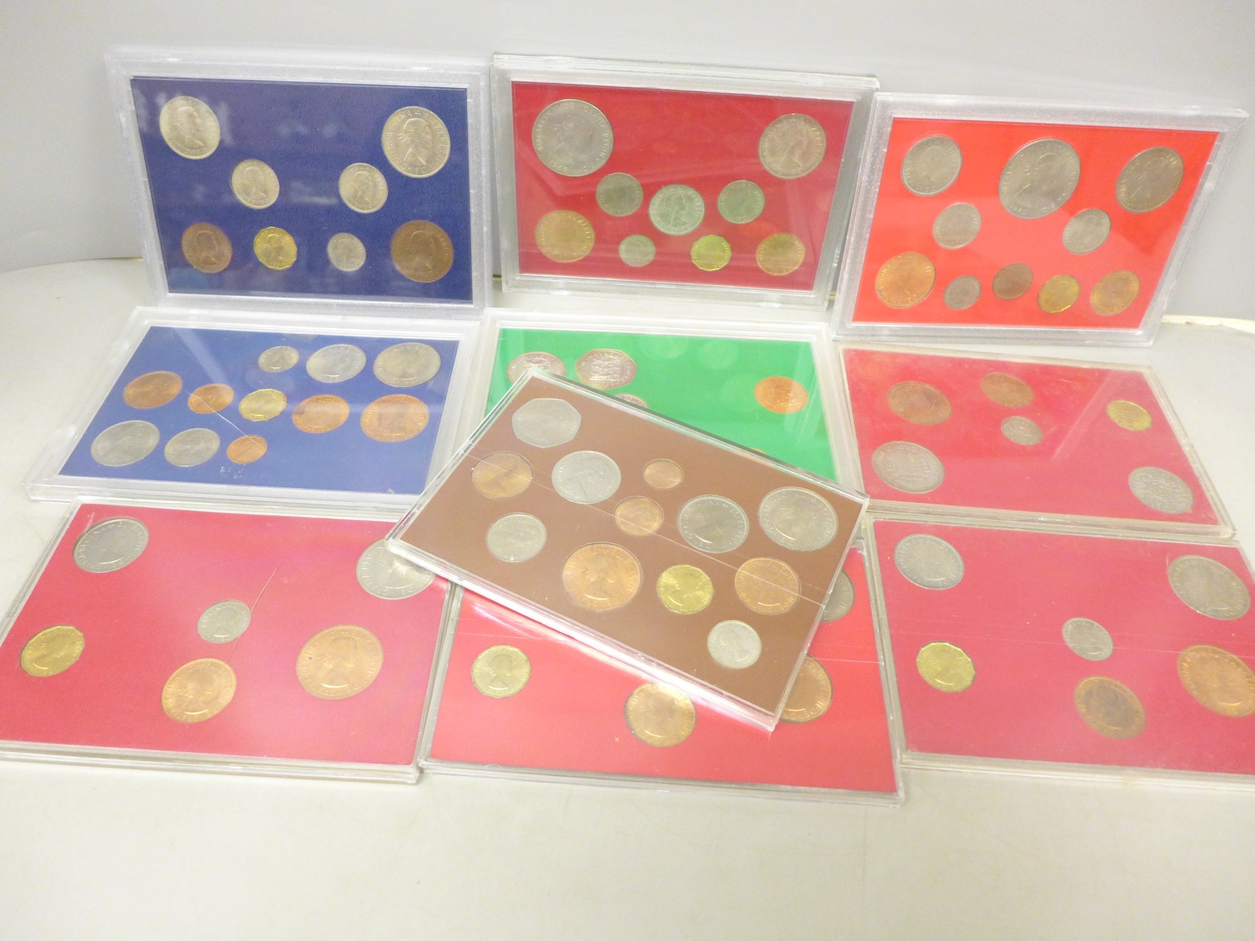 Ten uncirculated coin sets including Guernsey, GB 1967 x3, etc.