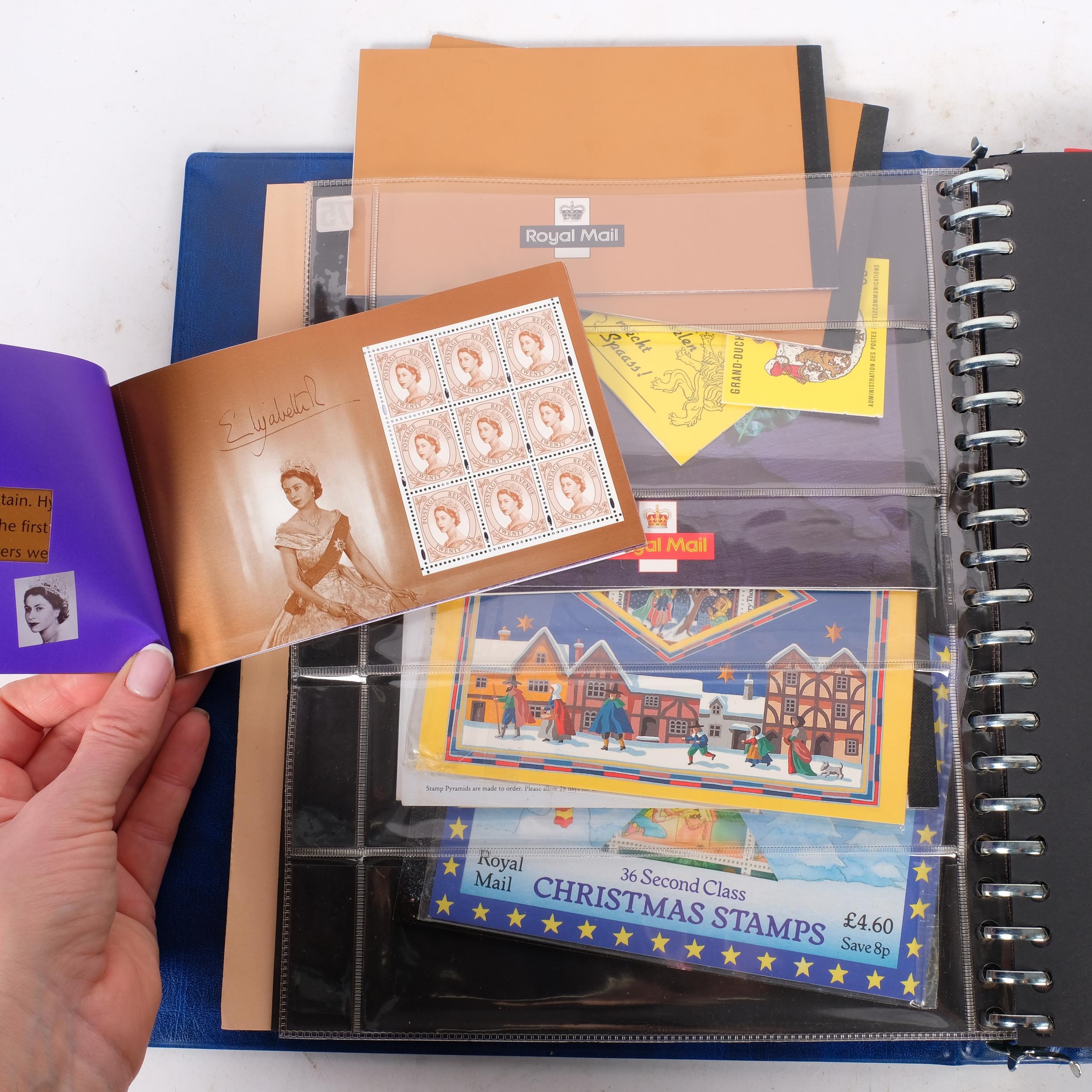 A collector's folder containing a wide variety of stamps, including collector's folders by Royal Mail First Class Christmas and Greetings stamps, and a small quantity of world stamps