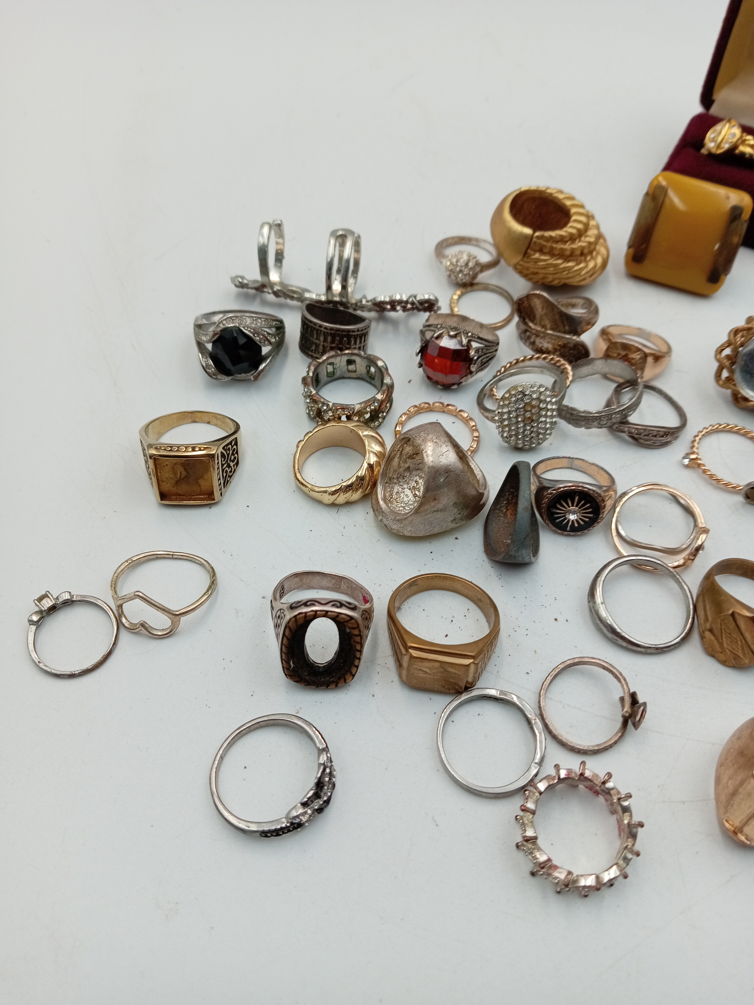 A good quantity of costume rings including a Catier Love style ring, signet rings, etc
