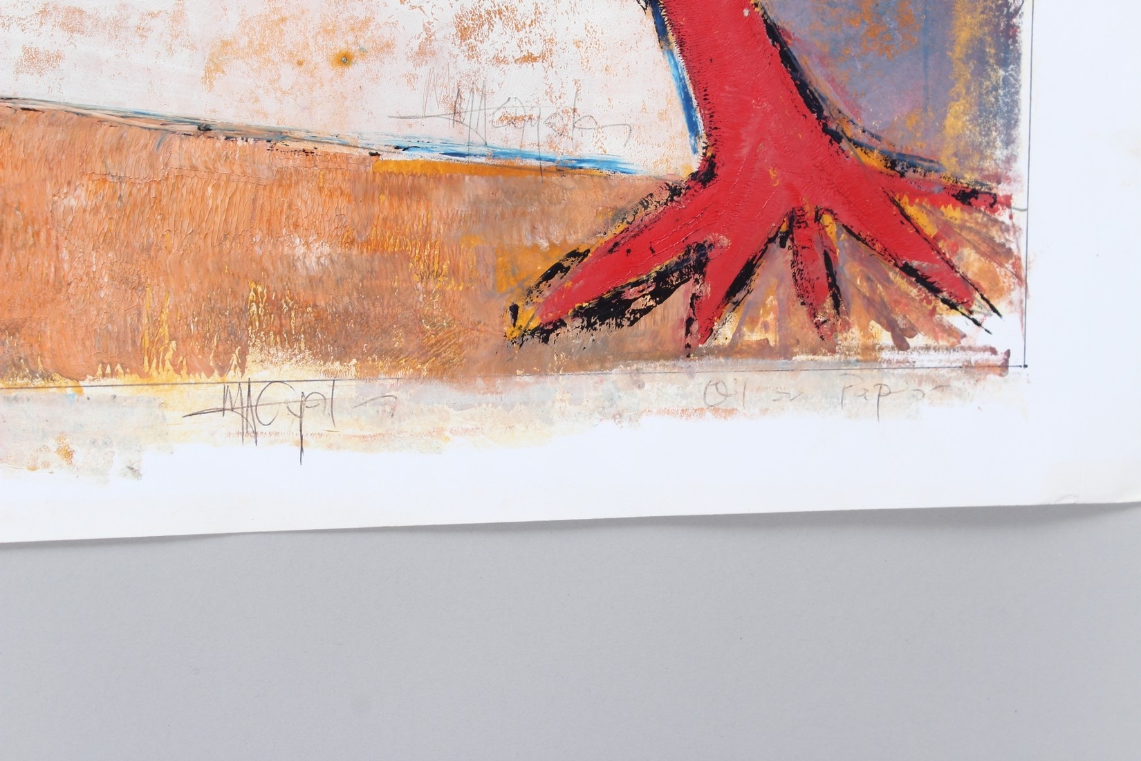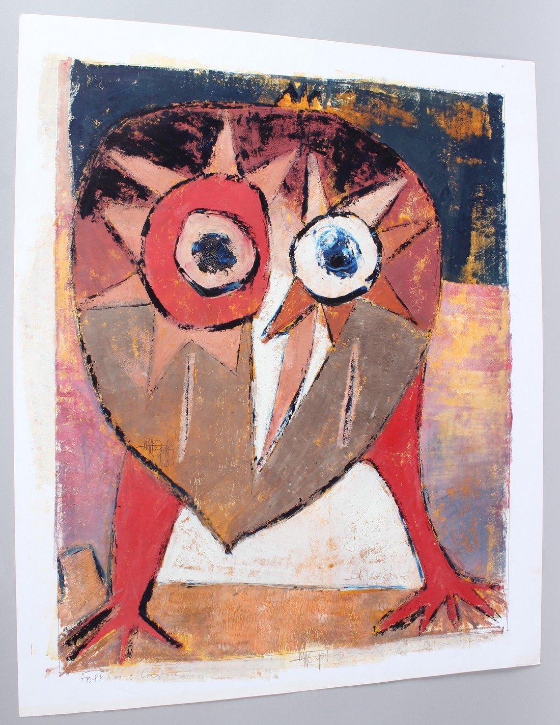 MURAINA OYELAMI (b.1940) 'Folklore Creature' oil on paper signed, inscribed and dated 2011 unframed 56 x 45cm image