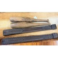 A pair of mahogany 18th century pilasters with fluted decoration and a pair of Indian exercise clubs