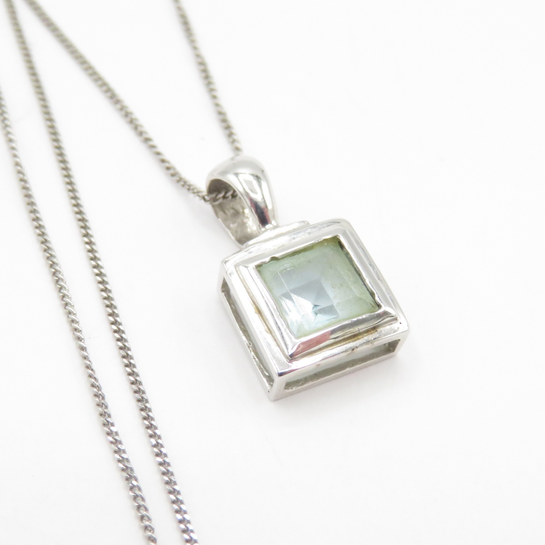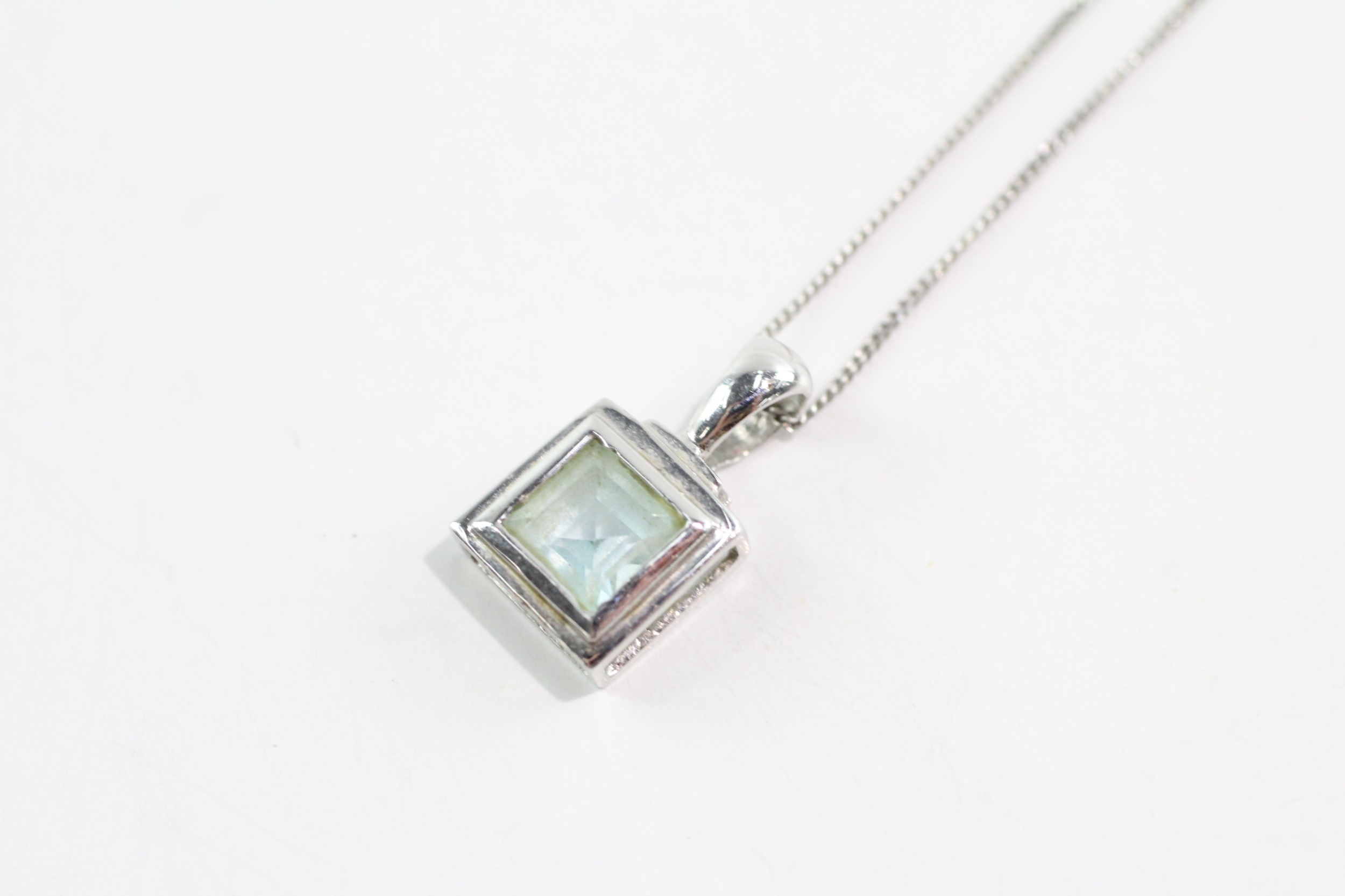 9ct white gold blue topaz pendant necklace (1.6g)