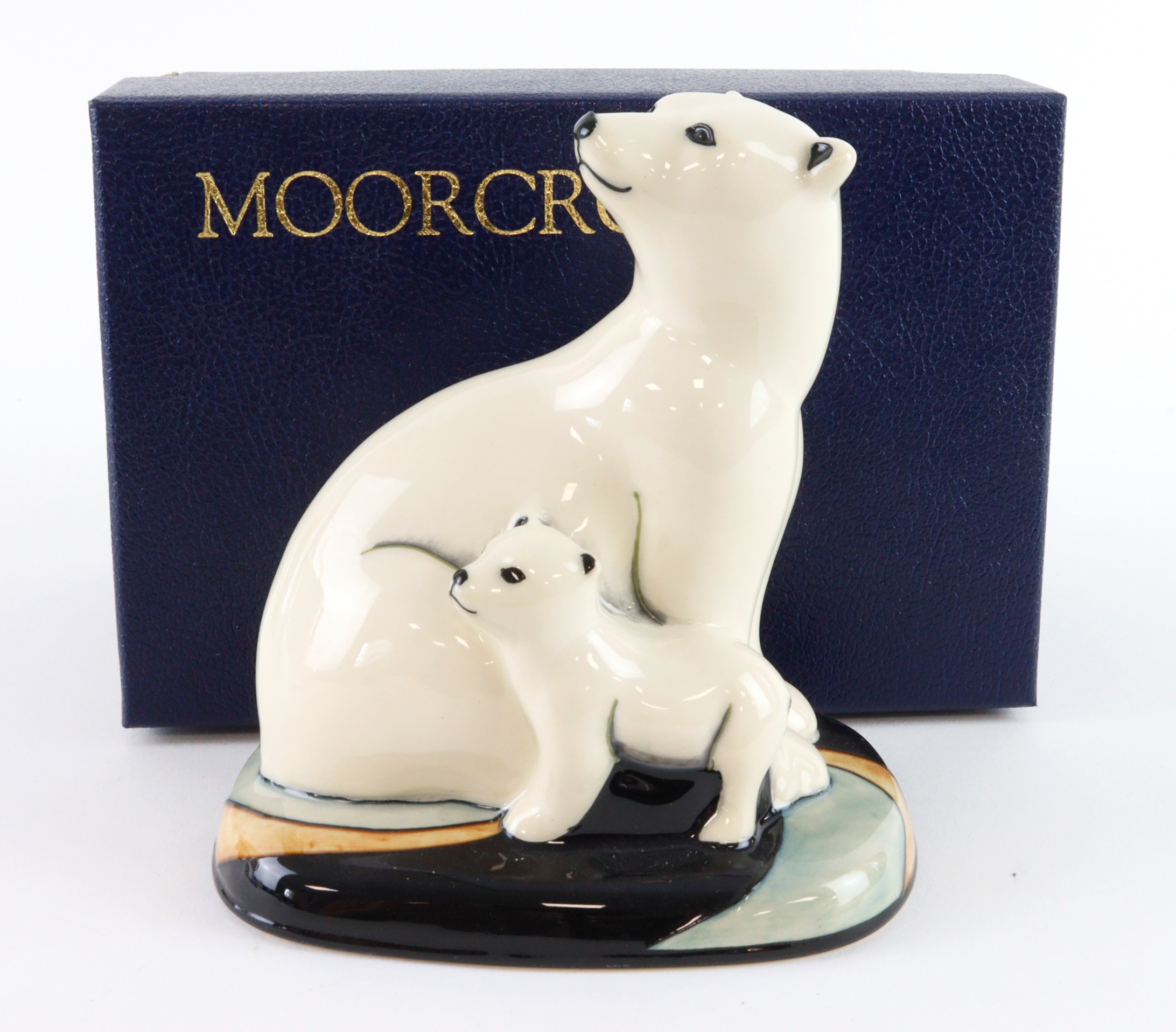 Moorcroft Polar Bear & Cub figure, dated 2009, makers marks to base, height 13cm approx., contained in a Moorcroft box
