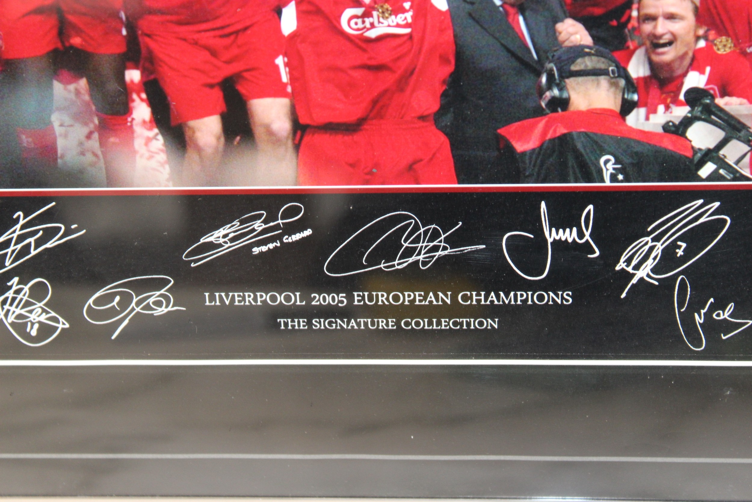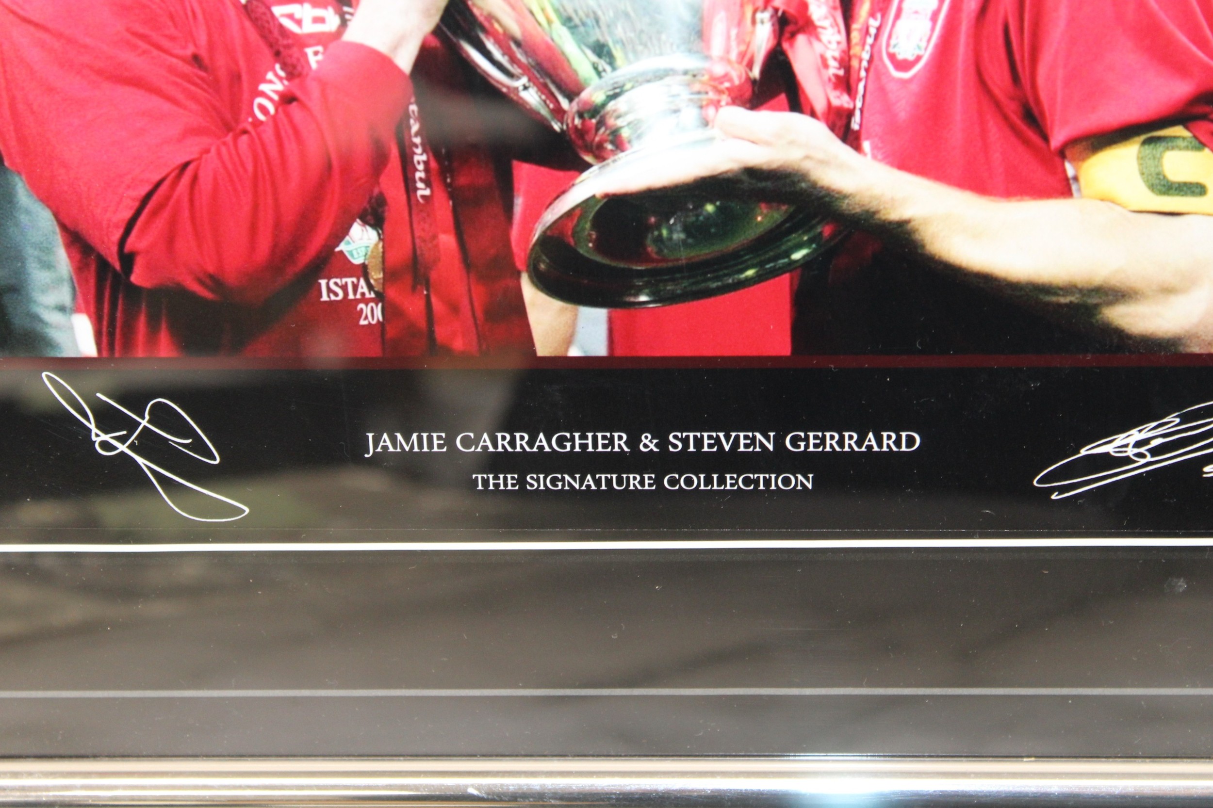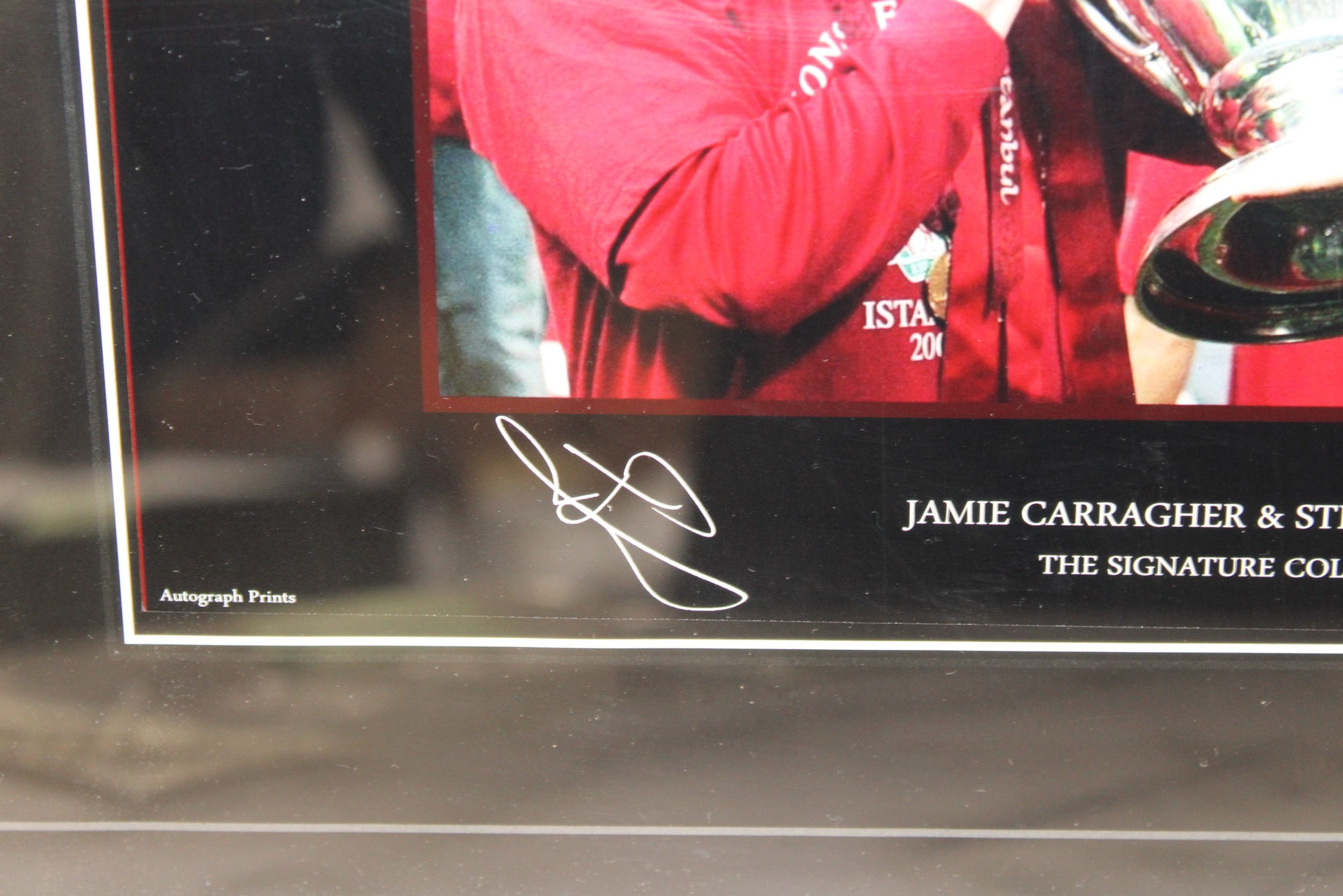 Two Autograph Print LIVERPOOL THE SIGNATURE COLLECTION Framed Pictures 47.5cm x 35cm LIVERPOOL 2005 EUROPEAN CHAMPIONS & JAMIE CARRAGHER & STEVEN GERRARD