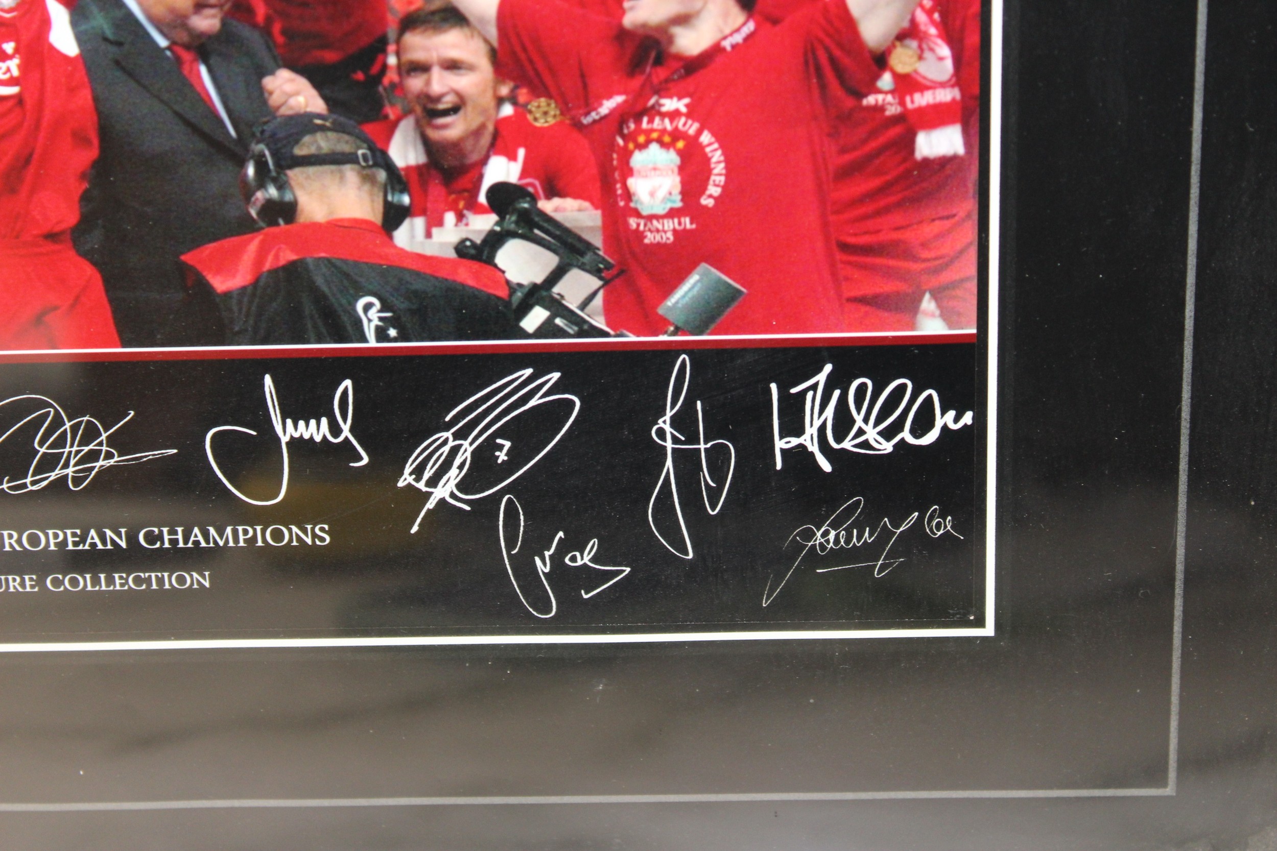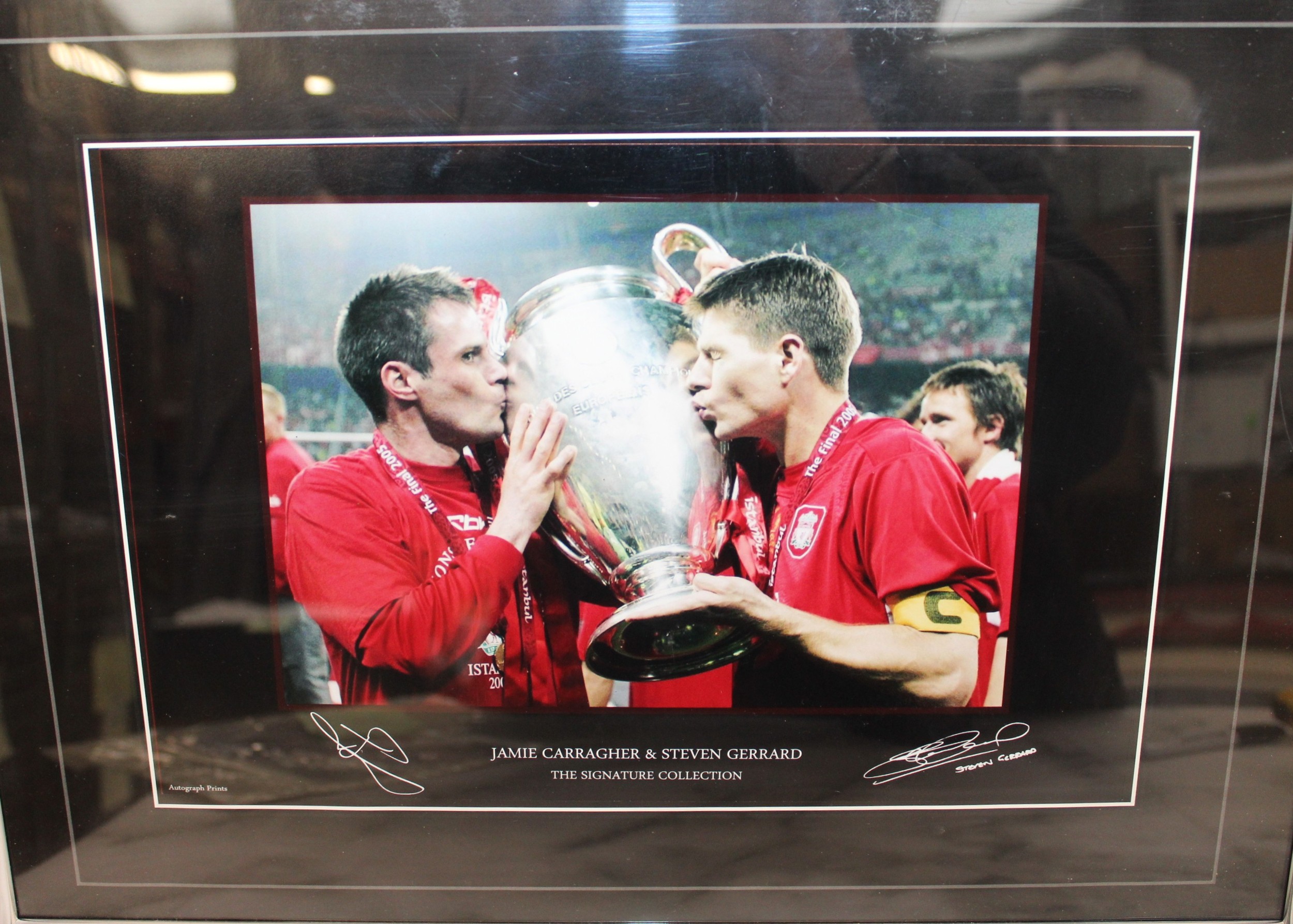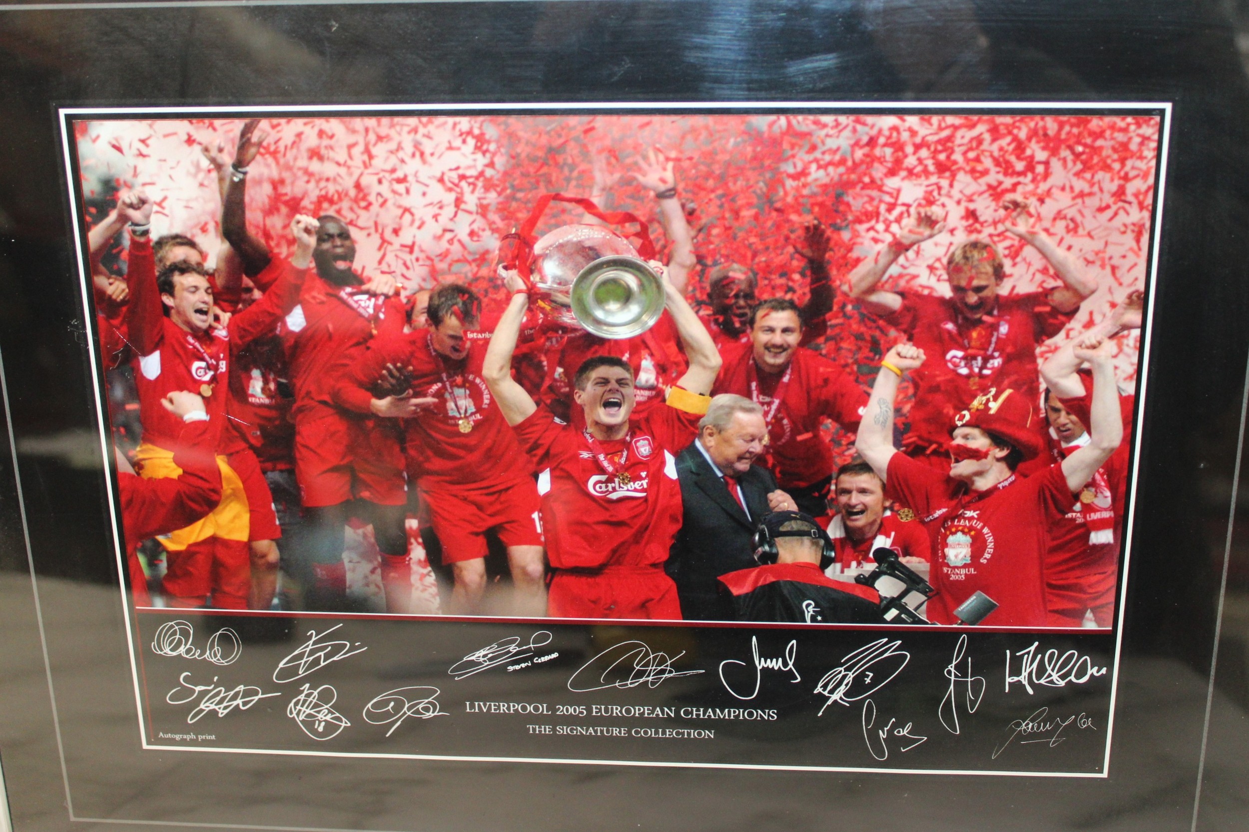 Two Autograph Print LIVERPOOL THE SIGNATURE COLLECTION Framed Pictures 47.5cm x 35cm LIVERPOOL 2005 EUROPEAN CHAMPIONS & JAMIE CARRAGHER & STEVEN GERRARD