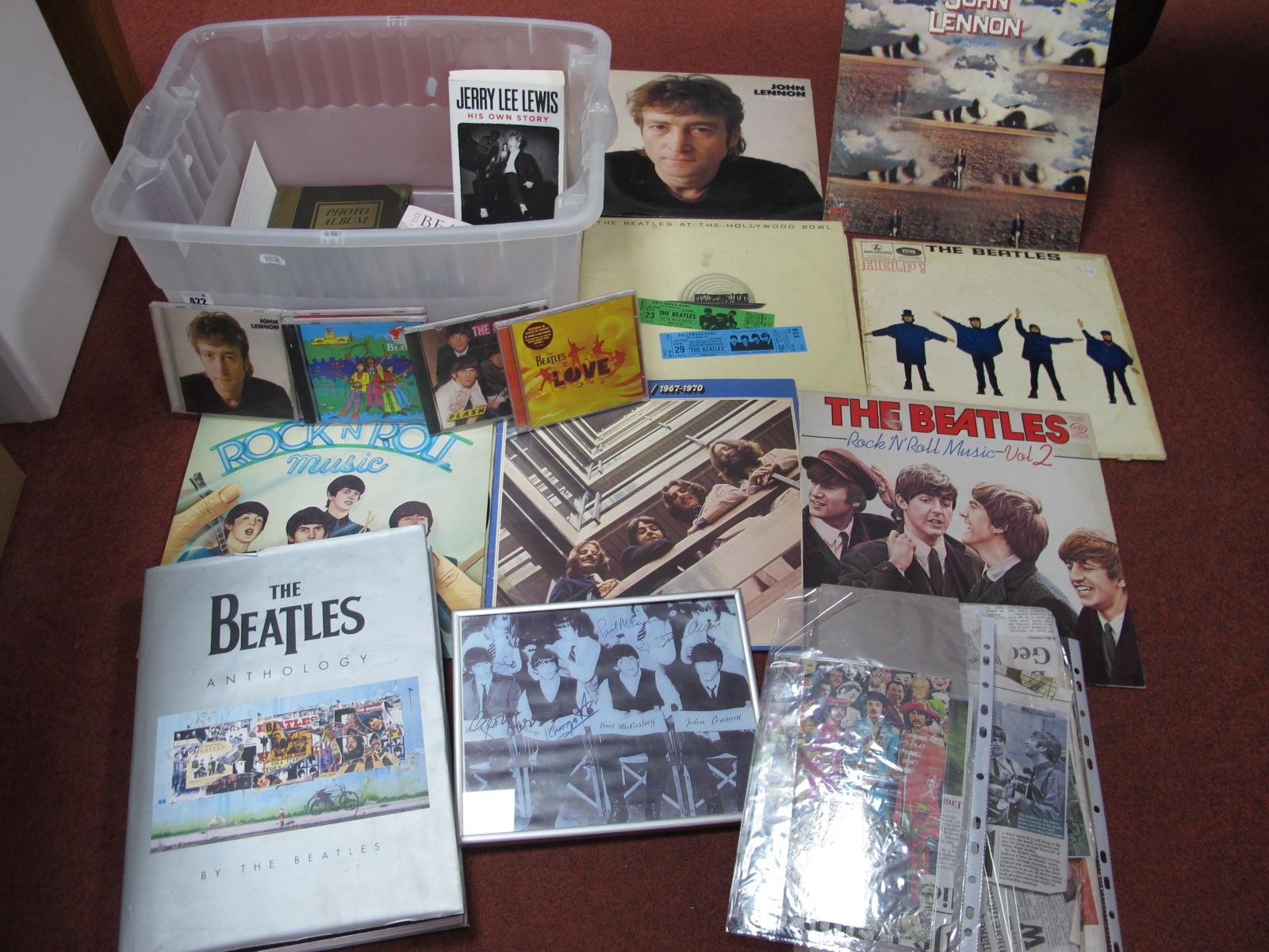 Beatles Collection, to include six lp's five cd's eighteen Nems Enterprises trading cards from 1965, three books including the Anthology, and a folder of newspaper clippings.