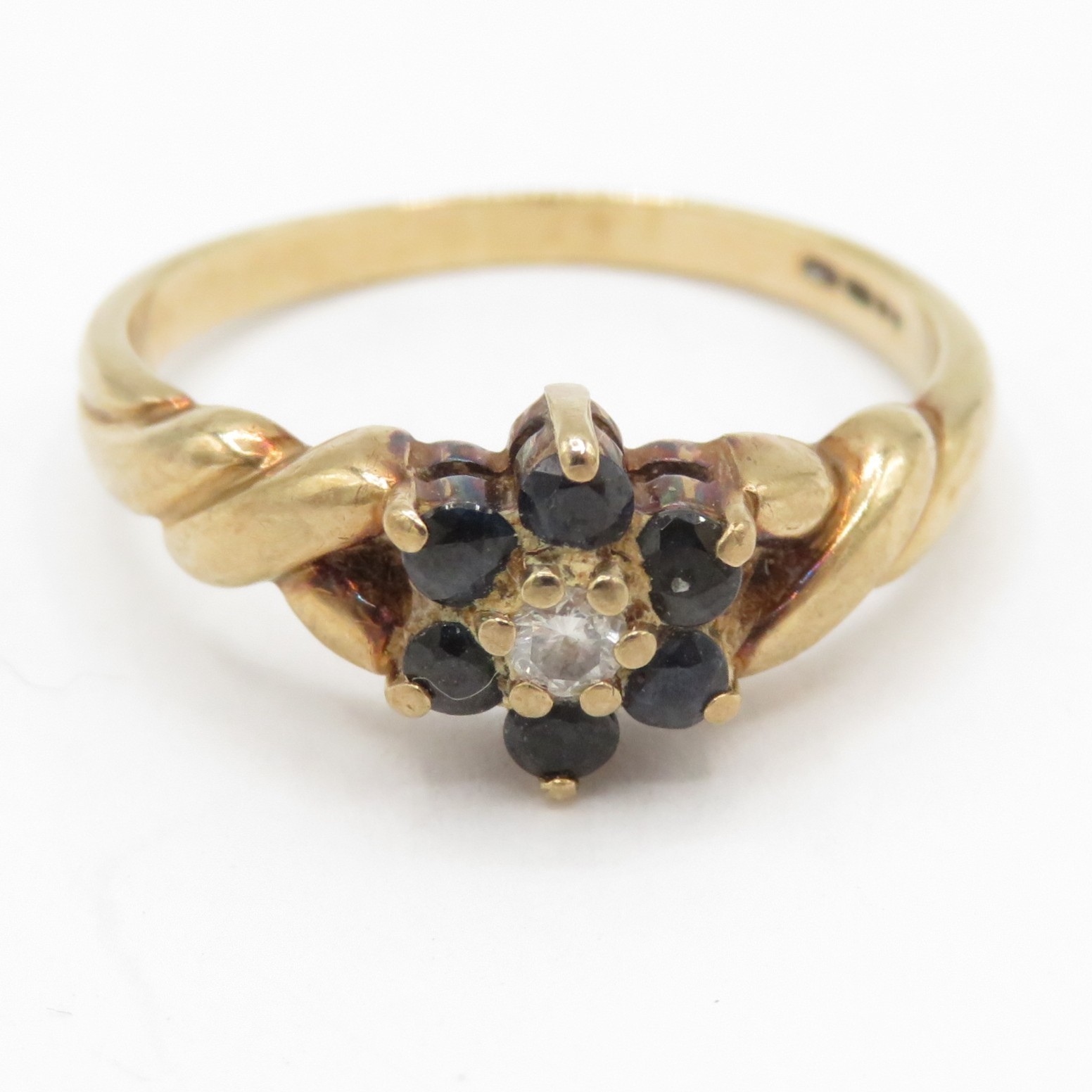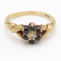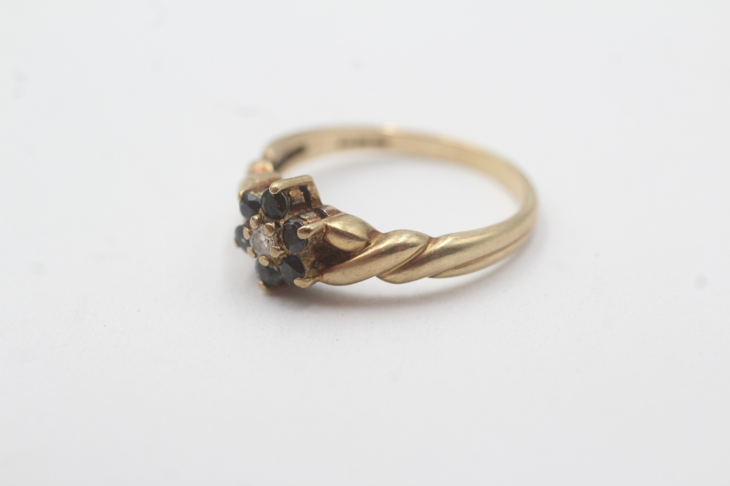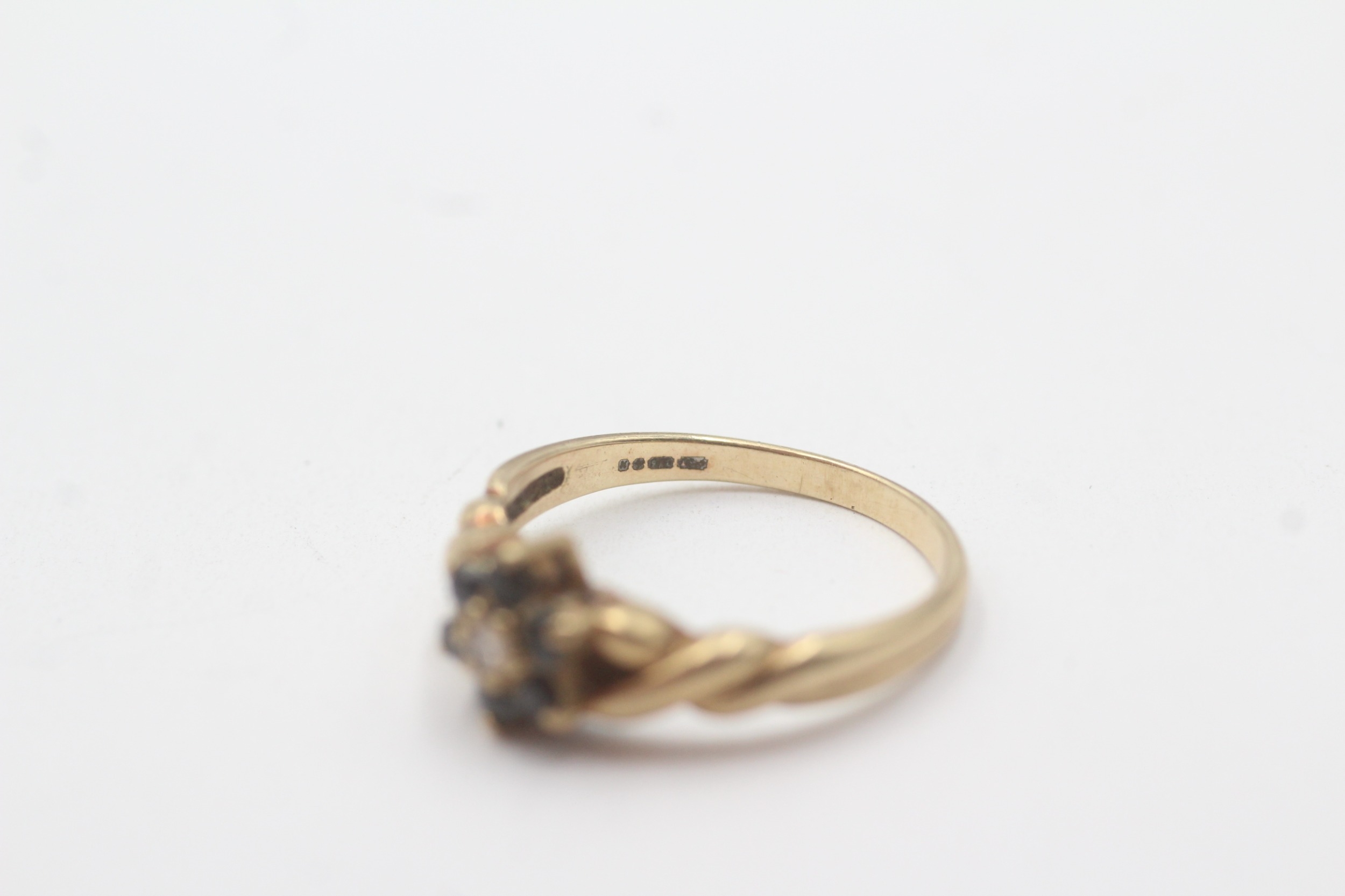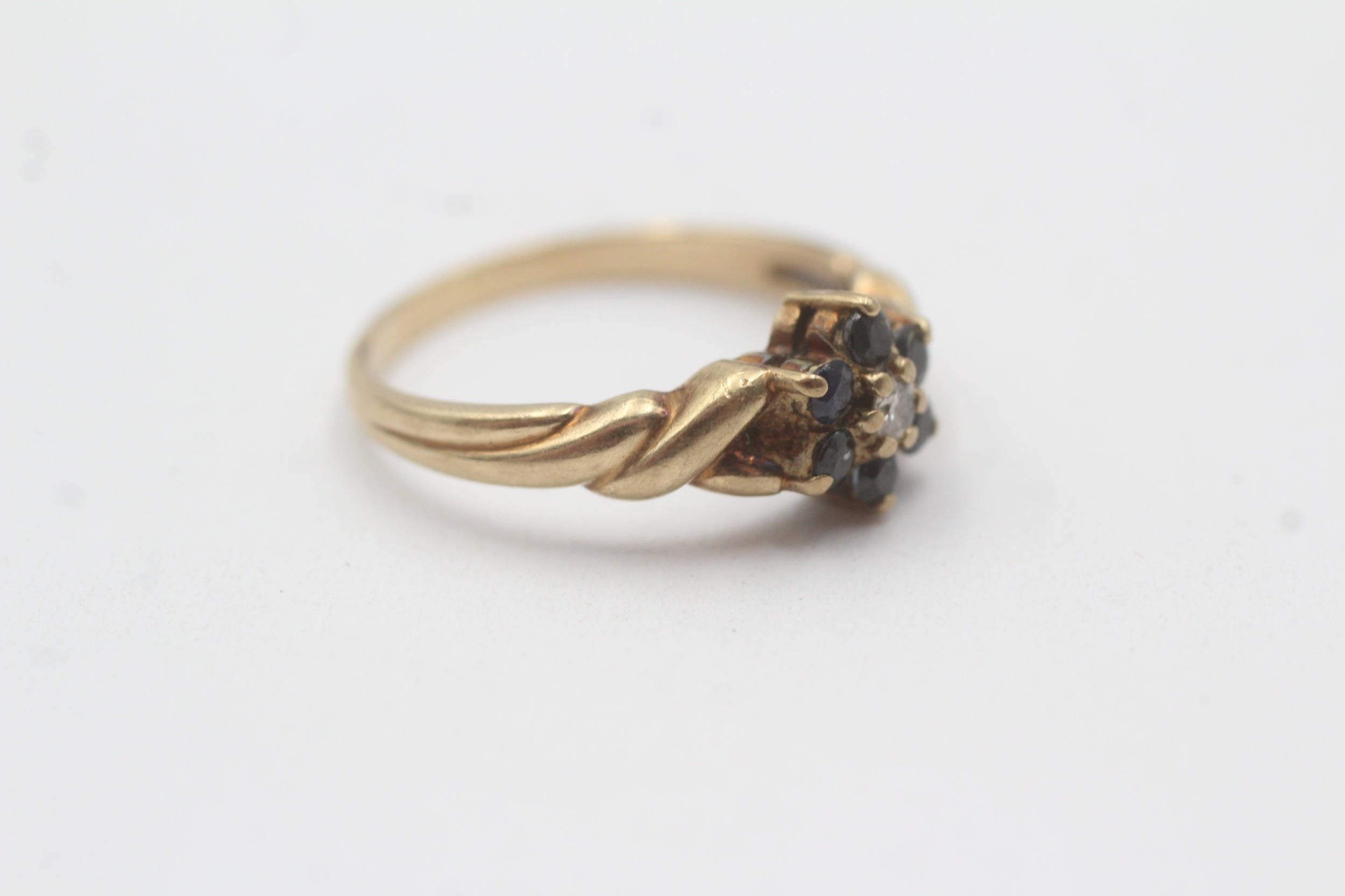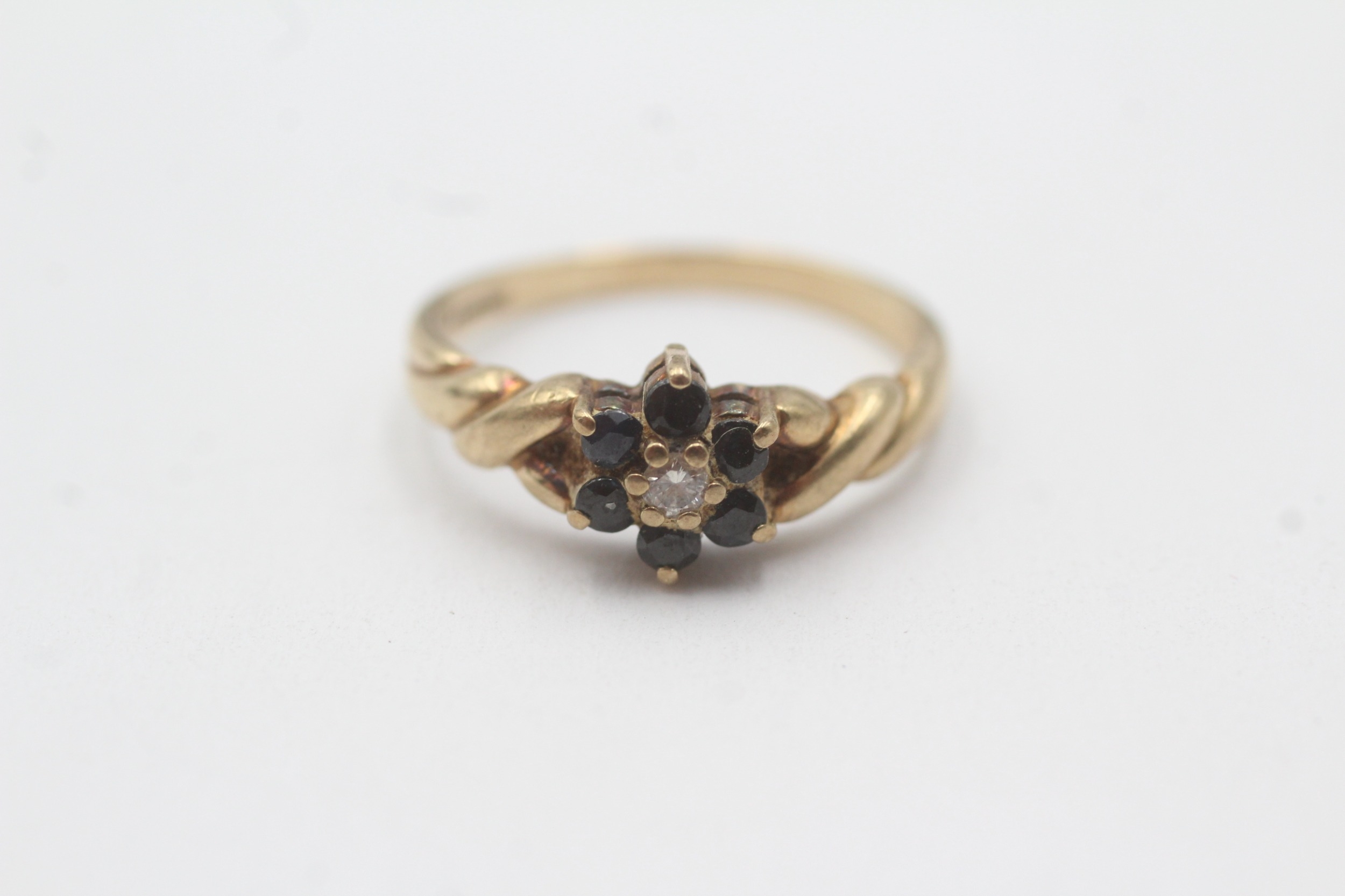 9ct gold sapphire diamond cluster ring (2.4g) Size O