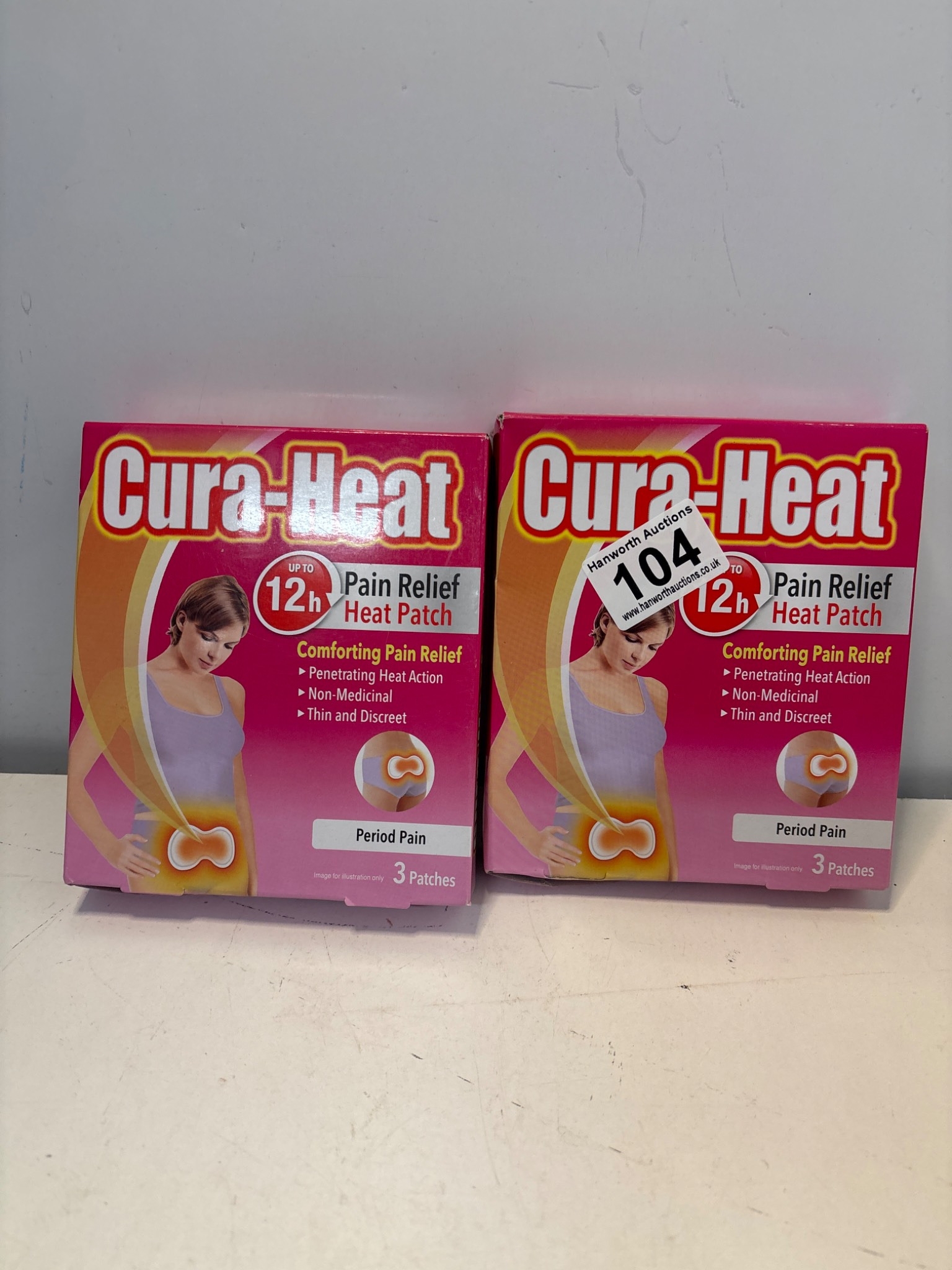 Two packs of Cura-Heat pain relief patches, 3-pc each.