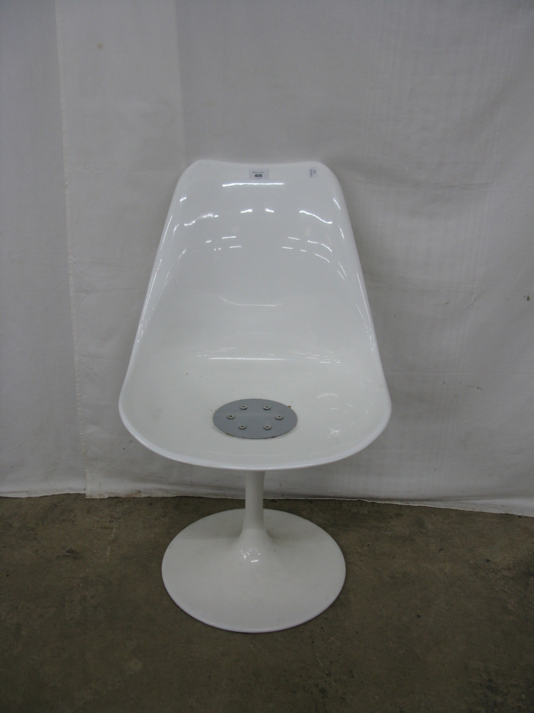 Rudi Bonzanini white swivel tulip style chair standing on circular base - 48cm x 52cm x 79cm tall (no cushion)