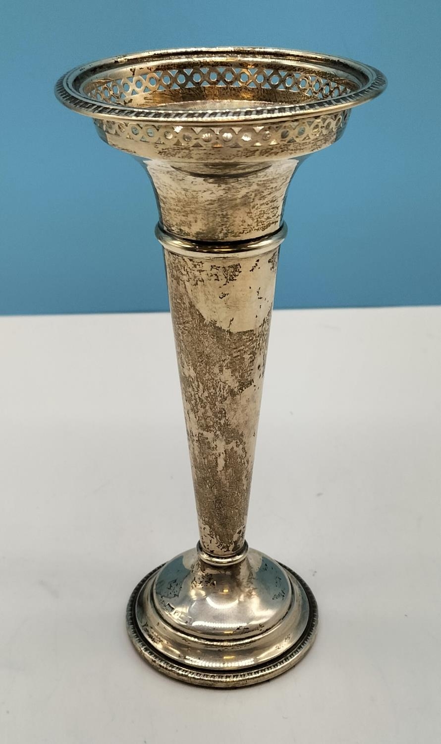 Hallmarked Silver Weighted Trumpet Vase. Hallmarked Rubbed but Tests as Silver.
