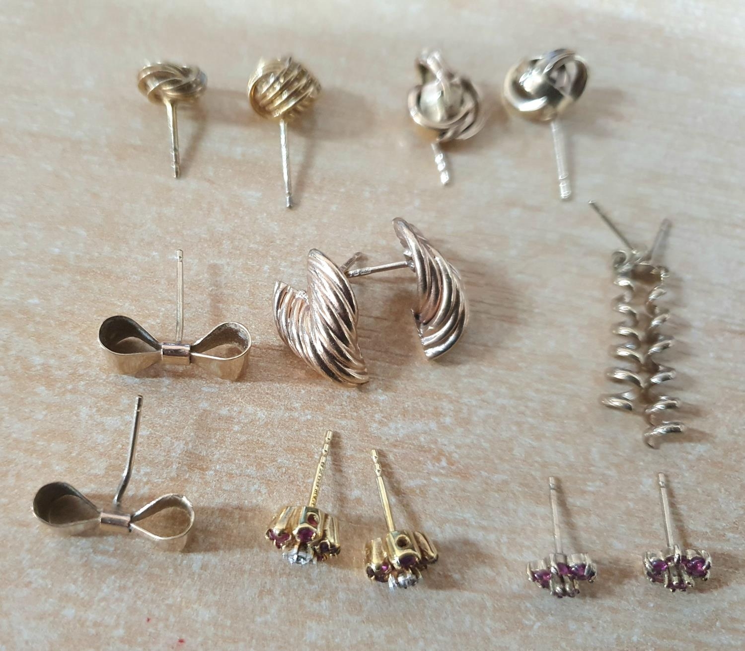 Seven pairs (and near pairs) of 9ct yellow gold earrings (7),9.7 grams gross