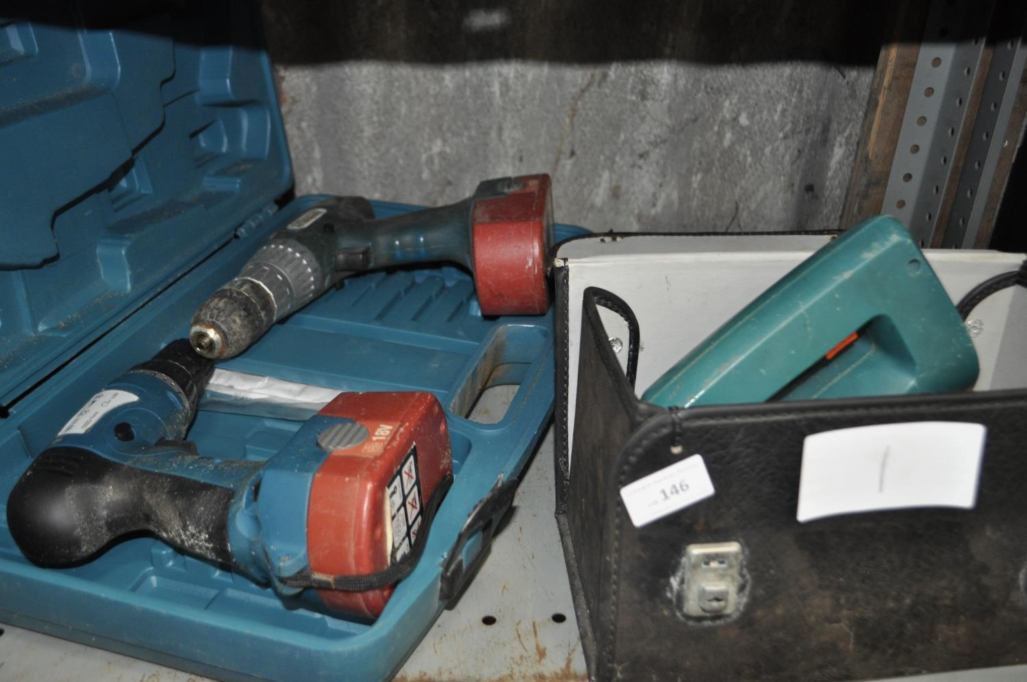CASED BLACK AND DECKER ELECTRIC JIGSAW AND 2 X 18V CORDLESS DRILLS IN CASE - UNTESTED