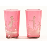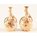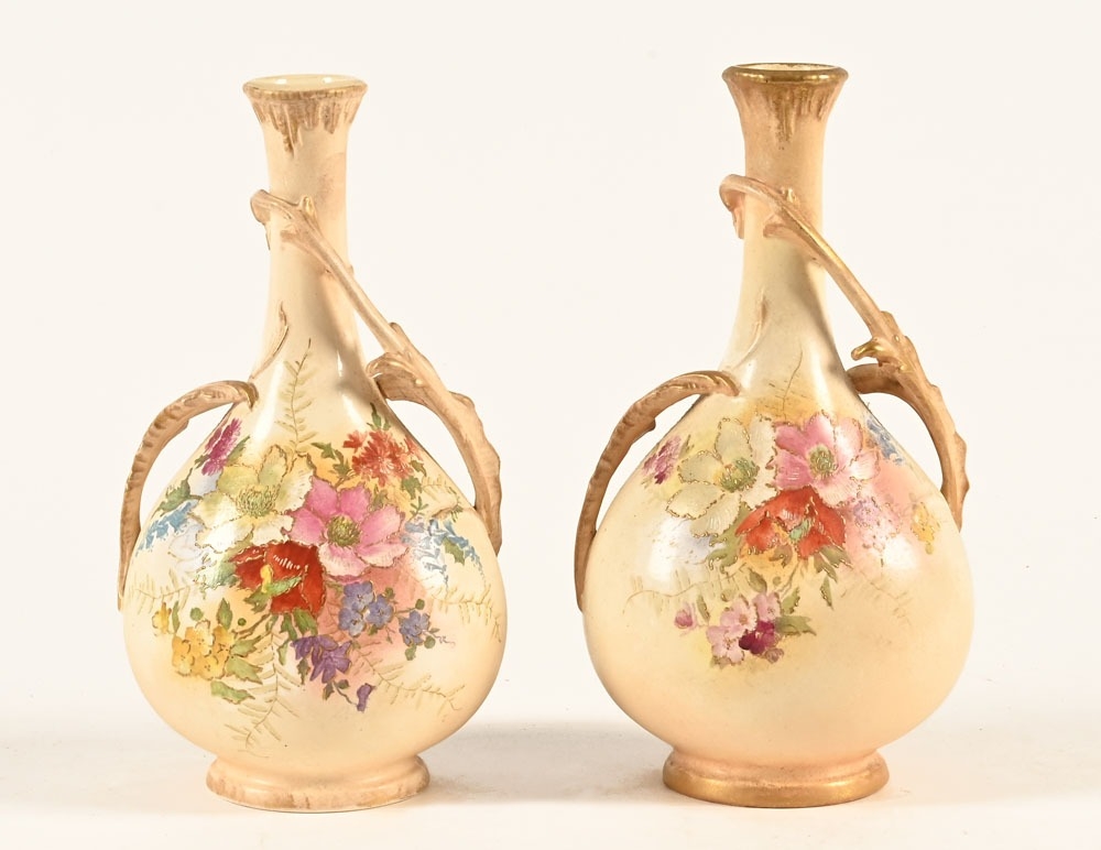 A pair of German Bonn hand painted club shaped vases. Height 13.5 cm.
