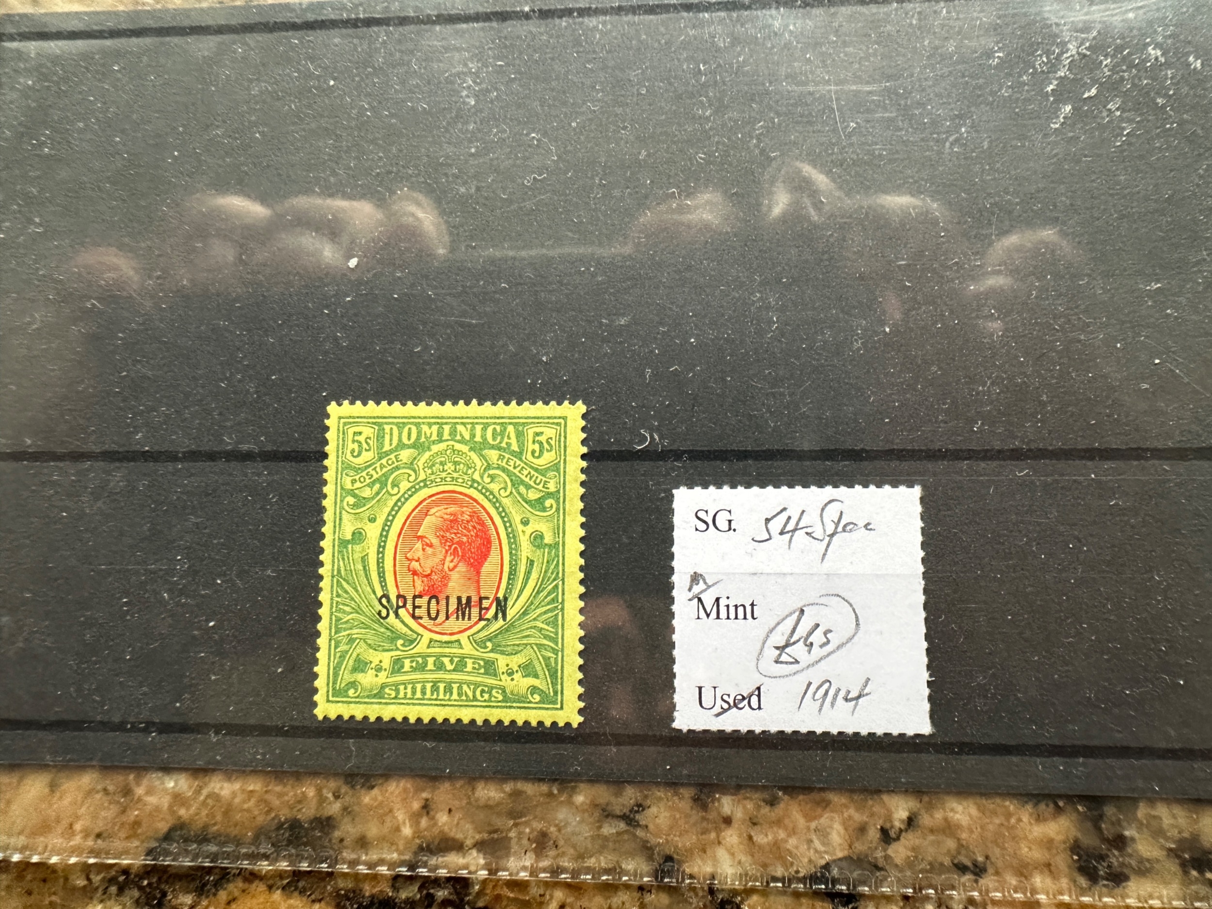 Dominica 1914 5/- Specimen, m/m. (SG 54Spec).