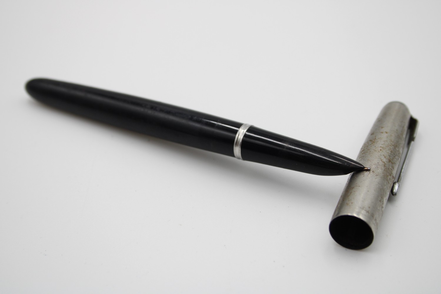 Vintage PARKER 51 Black FOUNTAIN PEN w/ Brushed Steel Cap WRITING