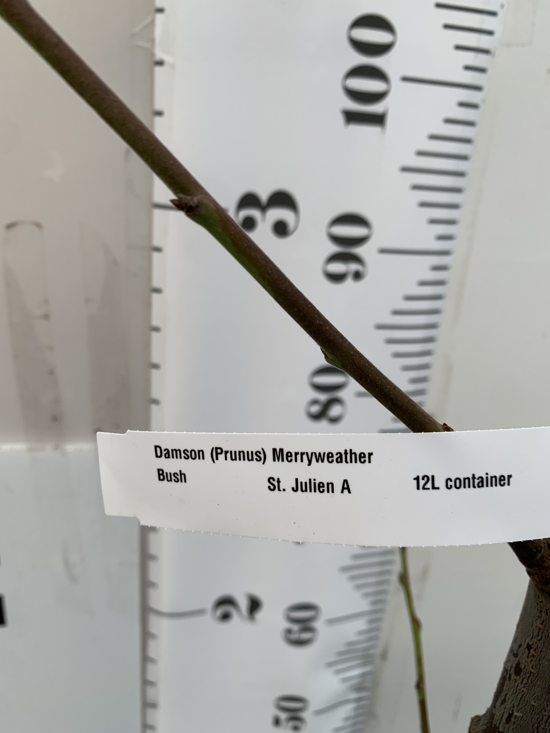 ONE DAMSON 'MERRYWEATHER' IN A 12 LTR POT. APPROX 180CM TALL, THIS DAMSON HAS UNUSUALLY LARGE FRUITS BOTH FOR DESSERT AND CULINARY USE. RELIABLE HEAVY CROPPER OF BLUE BLACK SWEET FRUITS. NO VAT
