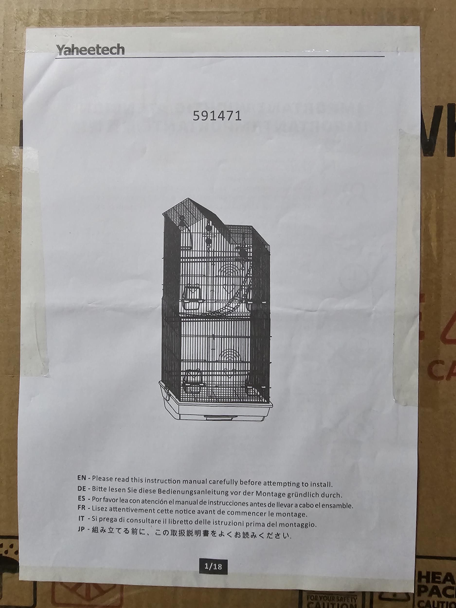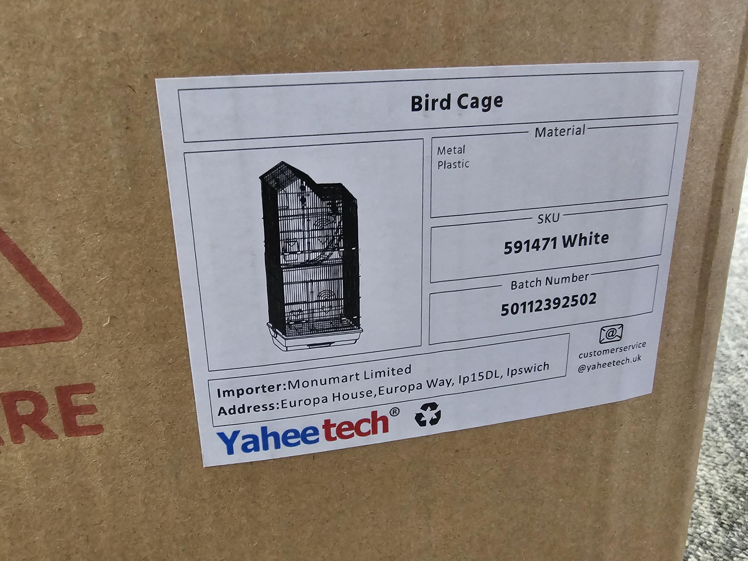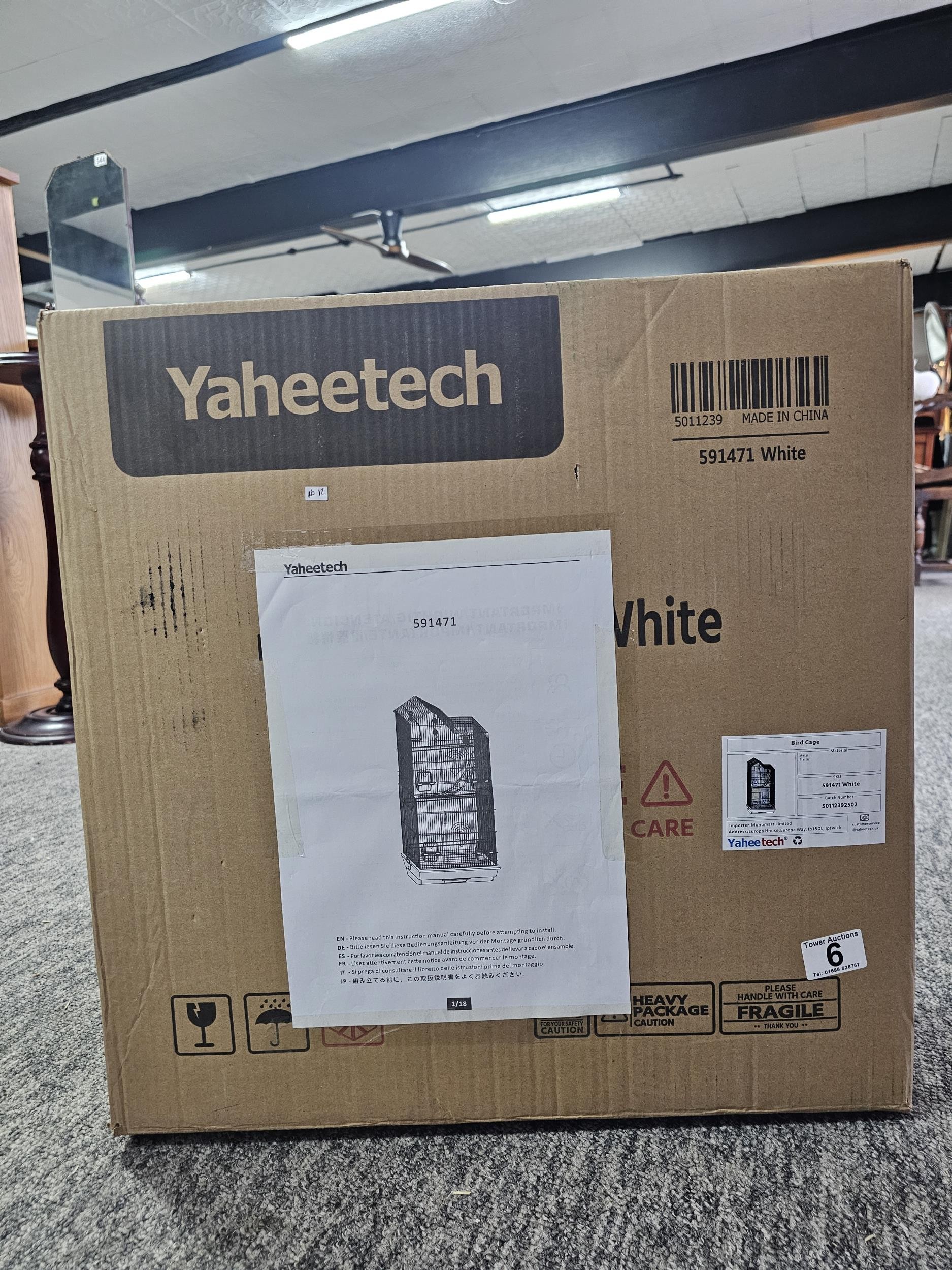 A boxed new 2 tier birdcage in white by Yaheetech.
