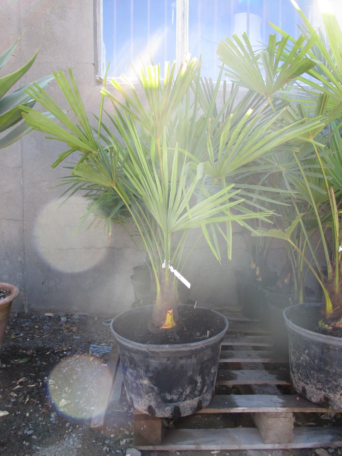 Five potted mature Palm shrubs