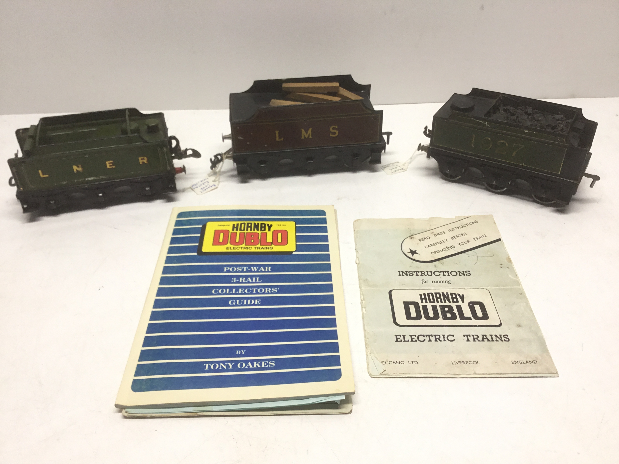 Two Bassett Lowe carriages and a Meccano carriage O gauge plus a Hornby Dublo collectors guide book