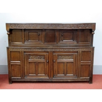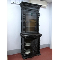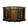 A XIX Century Boulle Ebonised Credenza, the top with gadrooned ormolu edge, over oval shaped boulle panelled door, serpentine shaped ends, on plinth base with all-over ormolu mounts, 210cm wide.