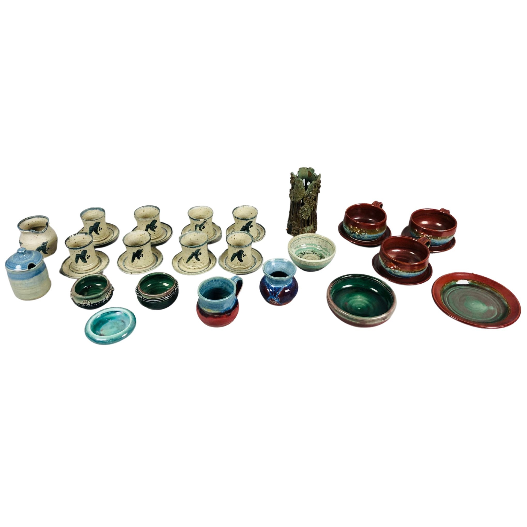 Various items of Studio Pottery to include a set of 8 cups and saucers.