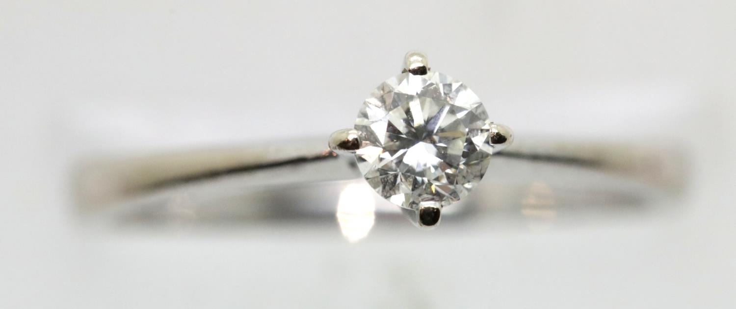 Beaverbrooks 18ct white gold solitaire diamond ring with diamond certificate, RRP £1950.00 in 2014. P&P Group 1 (£14+VAT for the first lot and £1+VAT for subsequent lots)