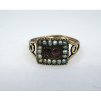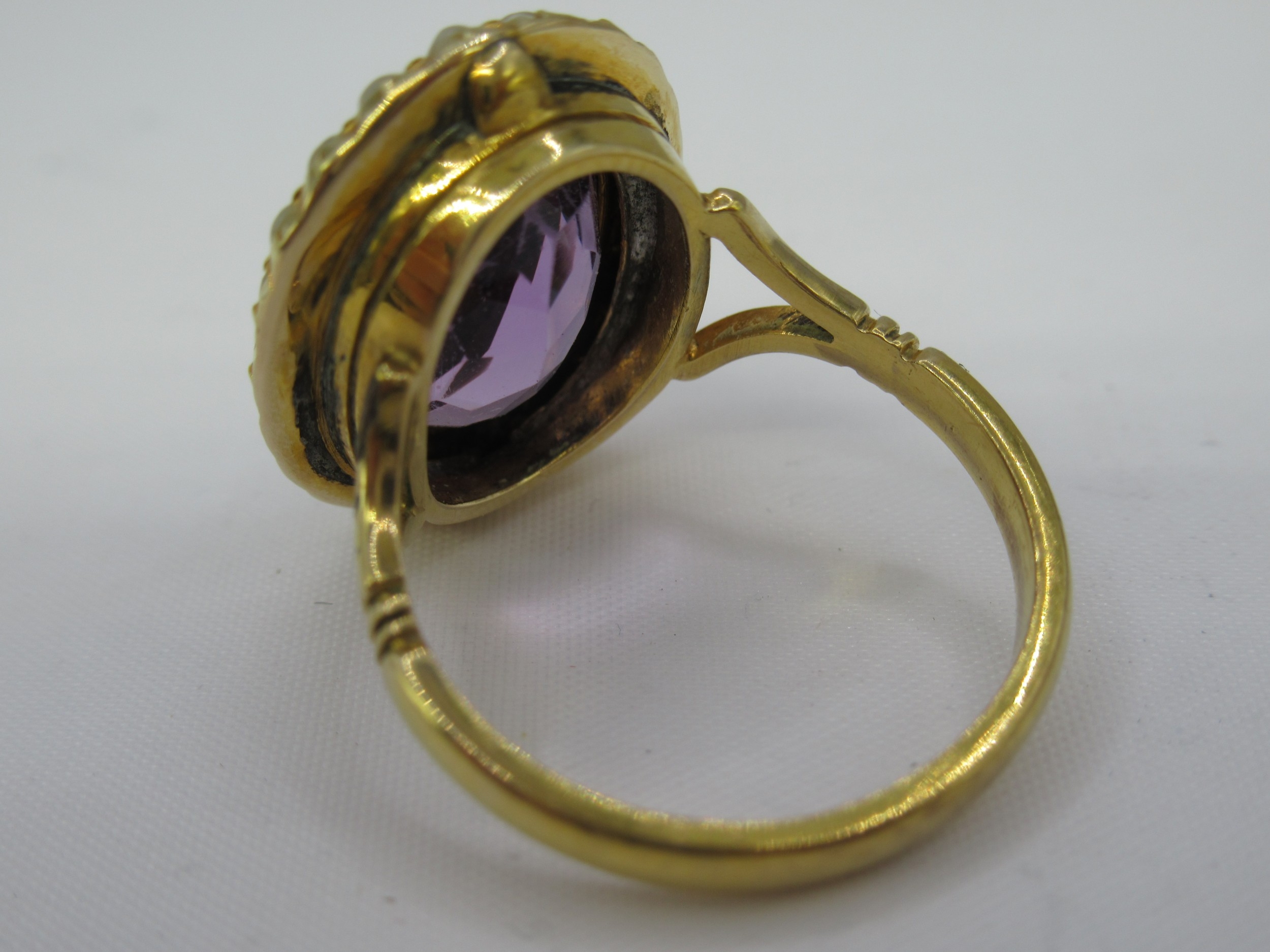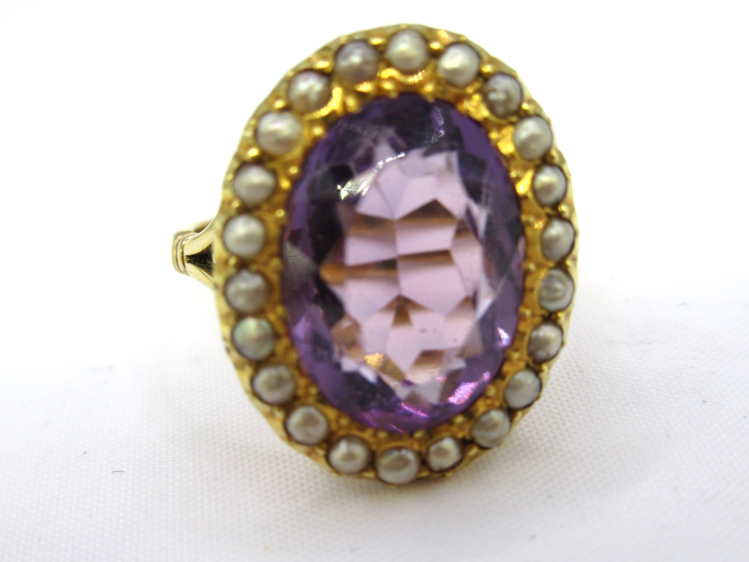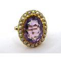 Gold oval amethyst and split pearl ring, size M, 5.5g