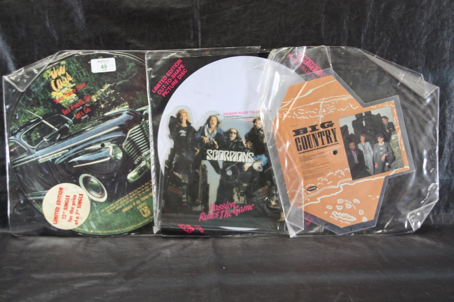 Three picture discs - The Cars 12" single, Scorpions and Big Country