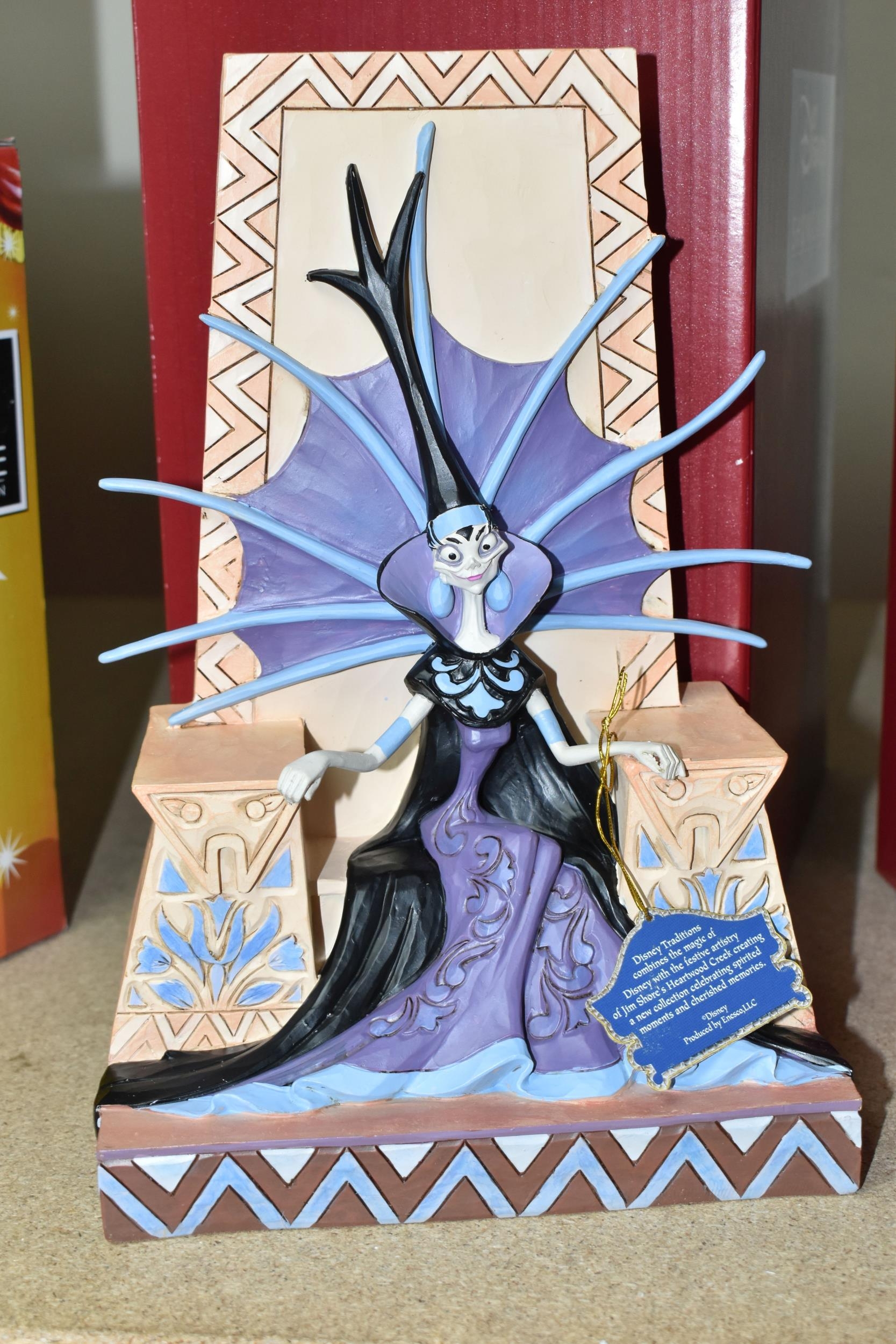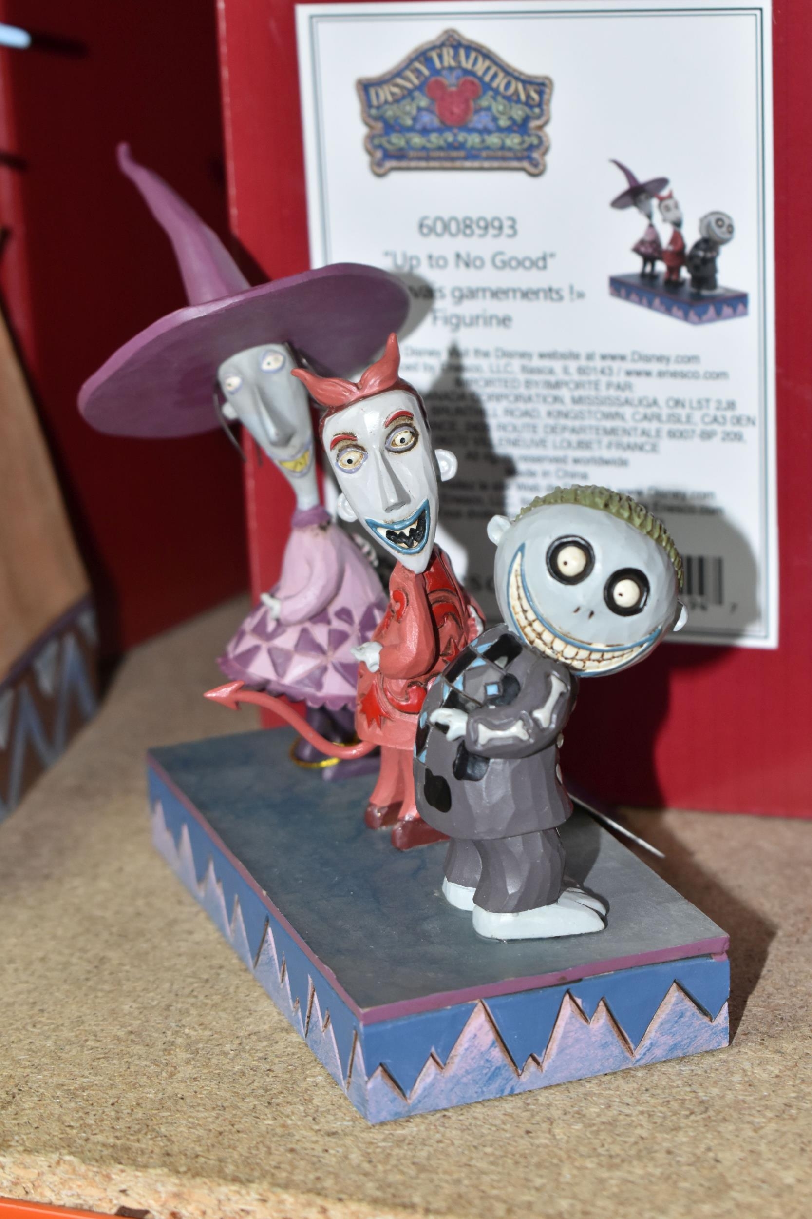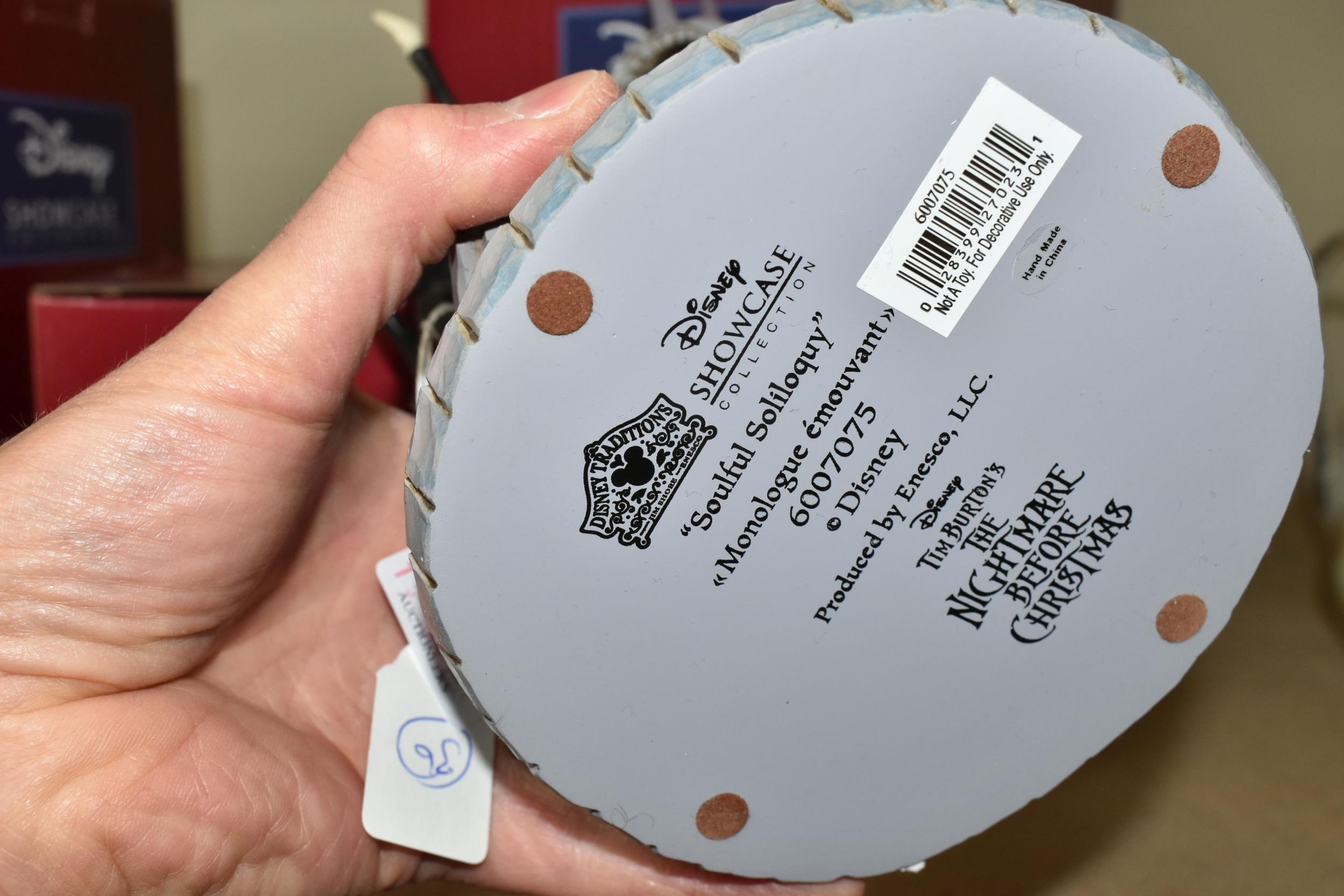 THREE BOXED ENESCO DISNEY SHOWCASE COLLECTION FIGURES, by Jim Shore, comprising The Nightmare Before Christmas 'Soulful Soliloquy' no 6007075 and 'Up to No Good' no 6008993, with 'Emaciated Evil' no 6008061 (3 + 3 boxes) (Condition Report: all appear in good condition, occasional tiny paint chips)