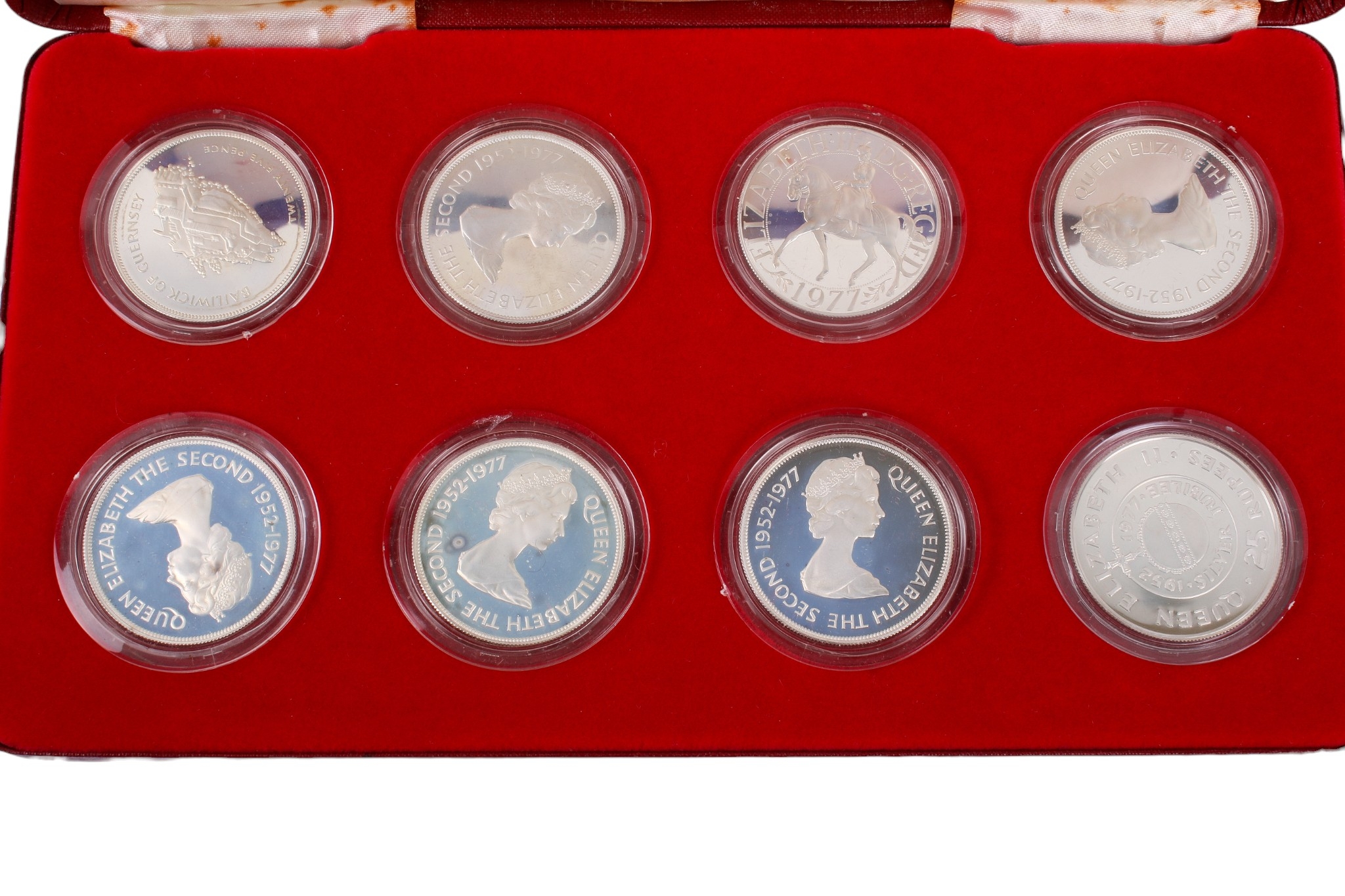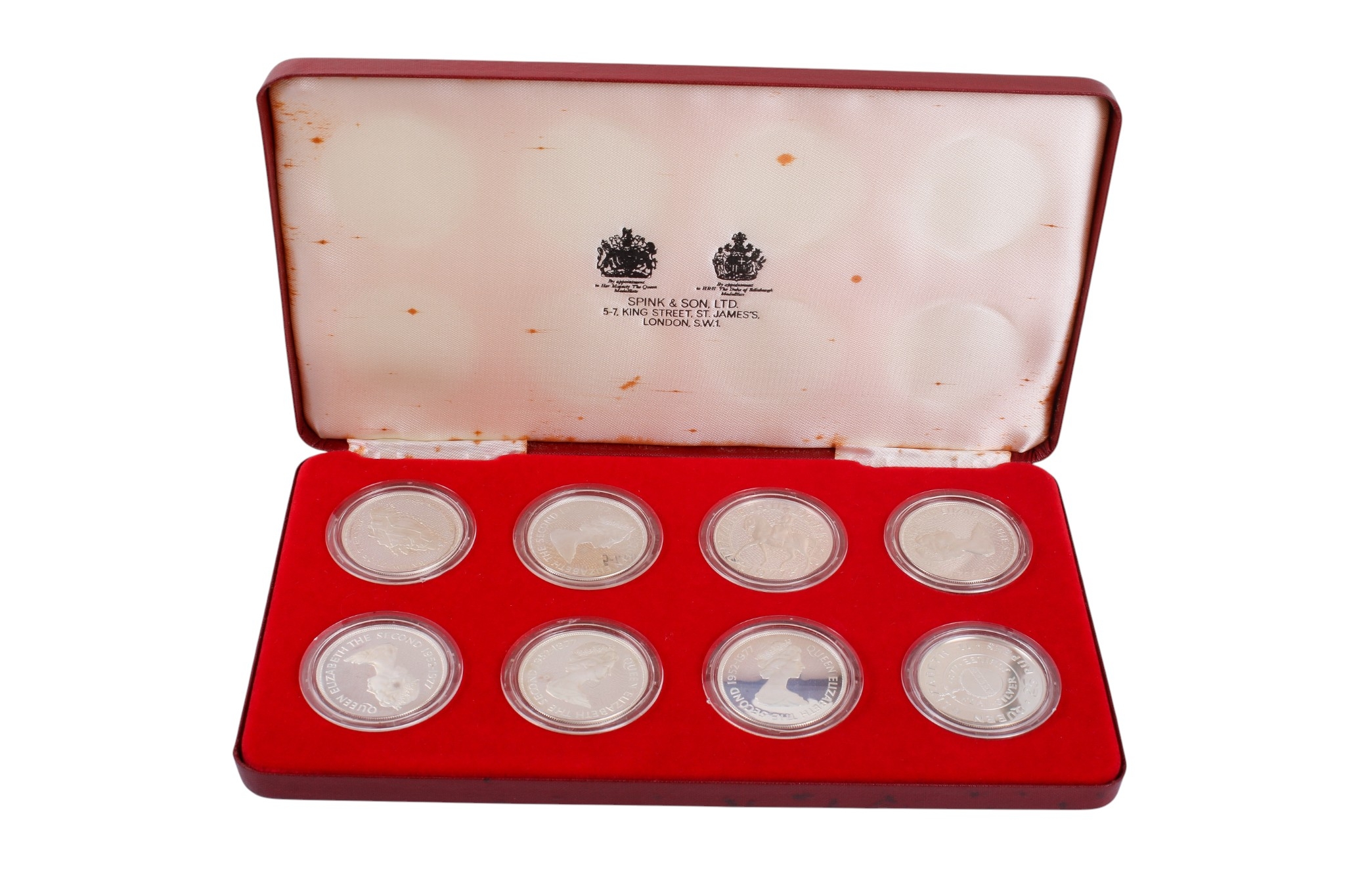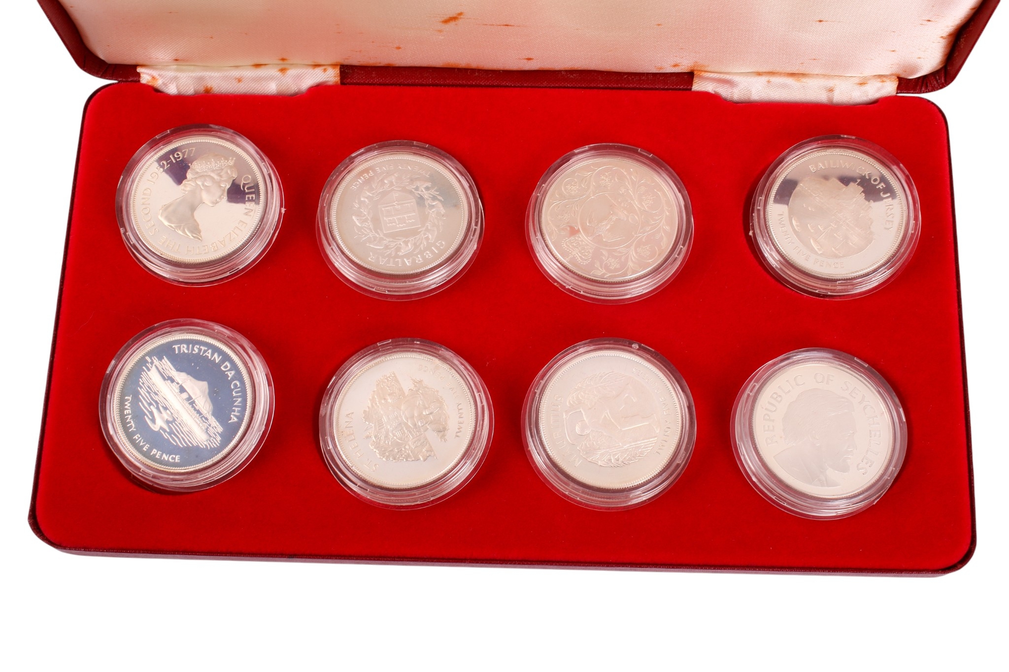 A set of eight commwealth 1977 silver proof crowns. Boxed with certificate