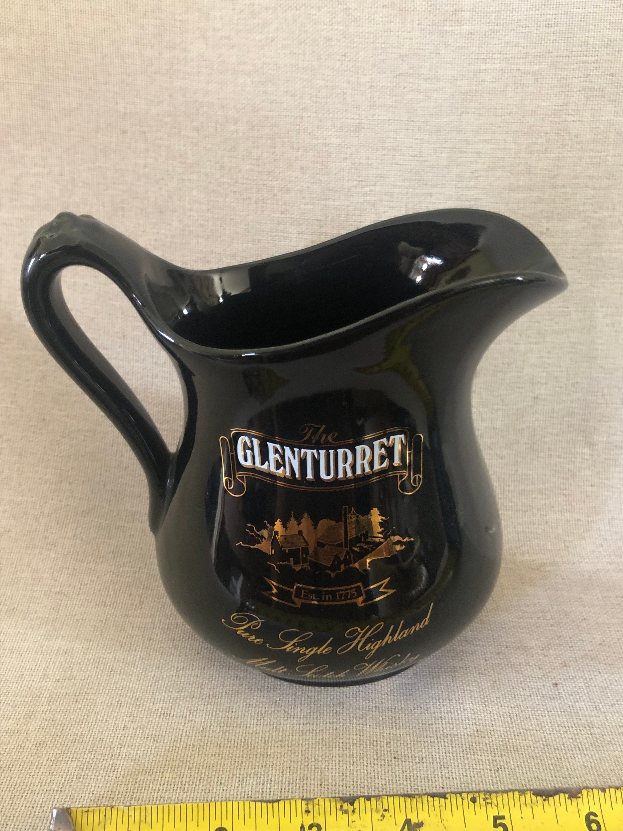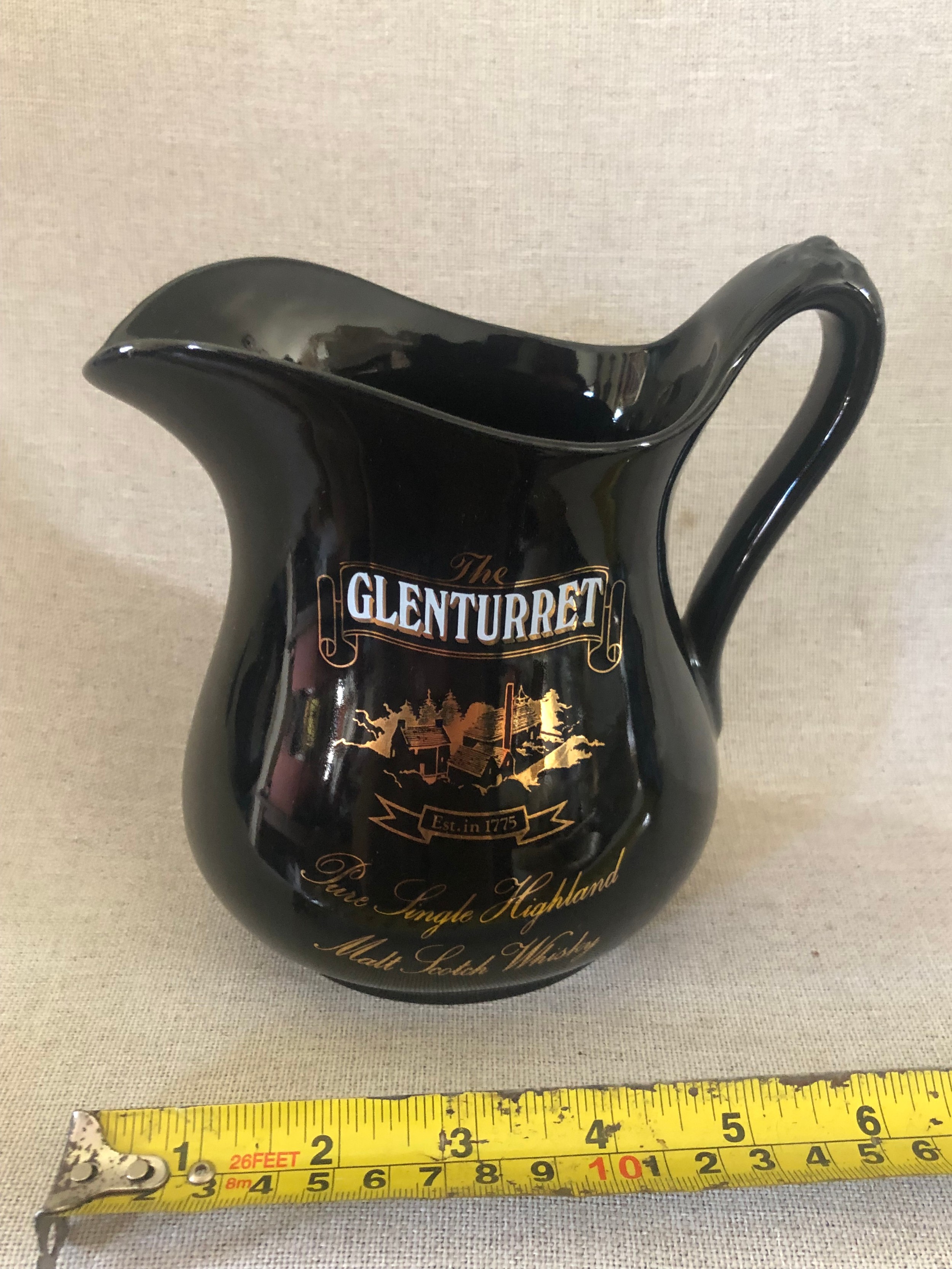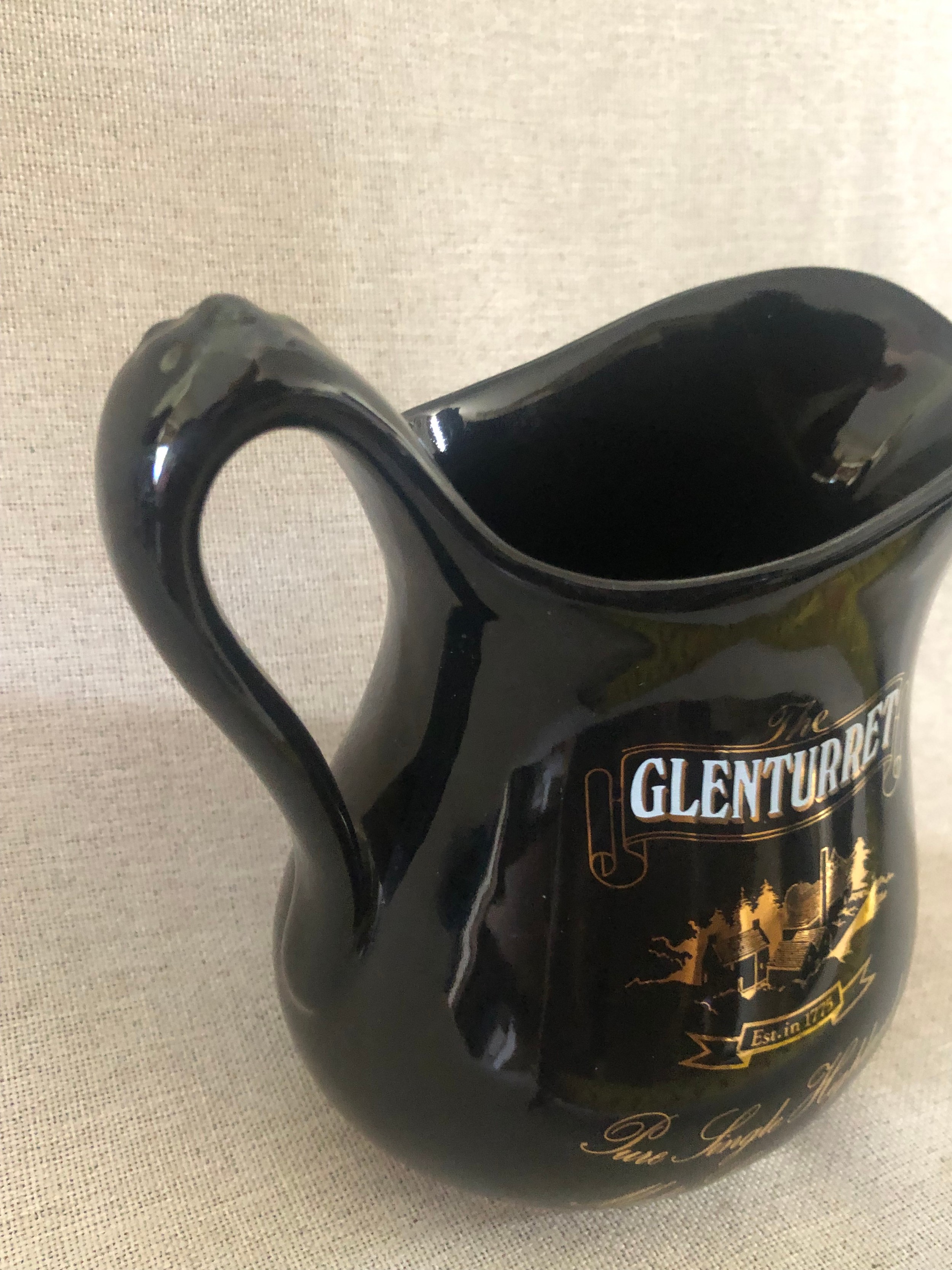 Glenturret pure single Highland malt scotch whisky jug.