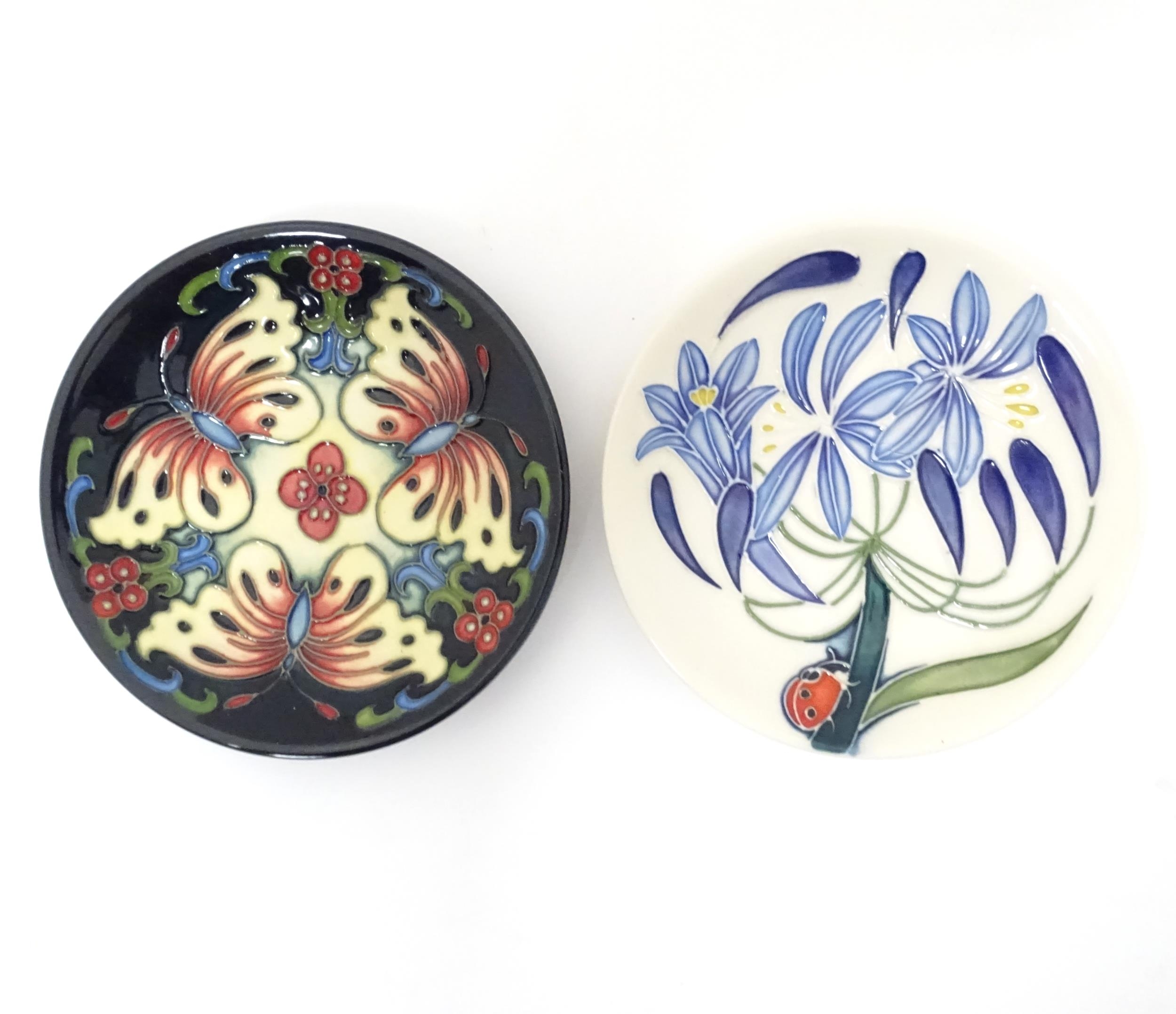 Two Moorcroft pin dishes, one decorated in the pattern Fly A...