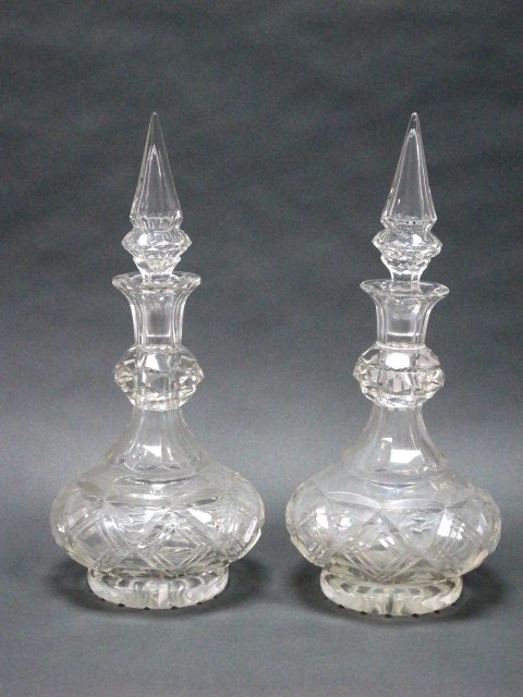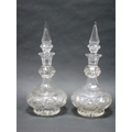 A Pair of Late XIX Century Heavy Glass Oversized Decanters and Stoppers, with cut decoration, 45cm high. (2)