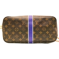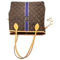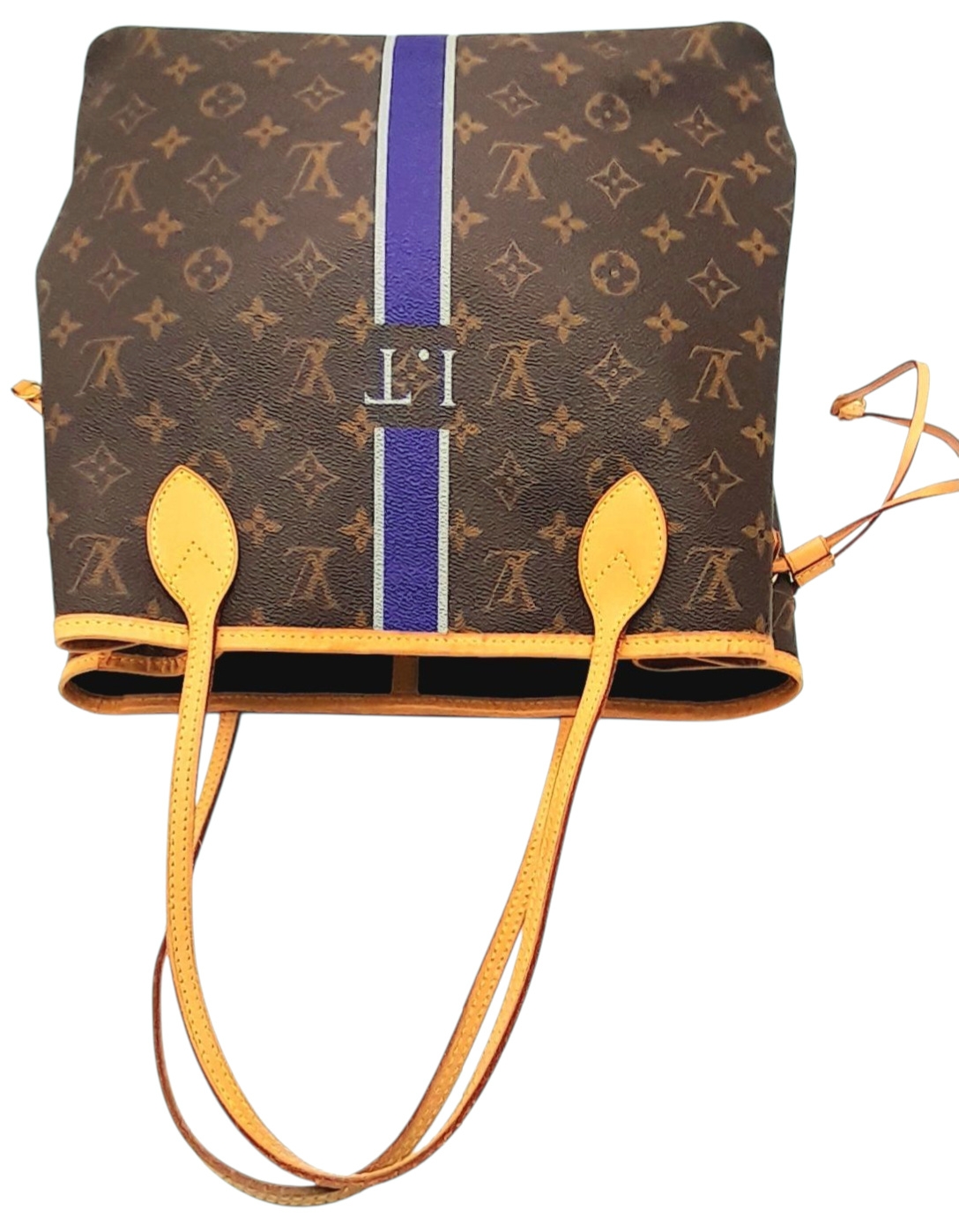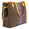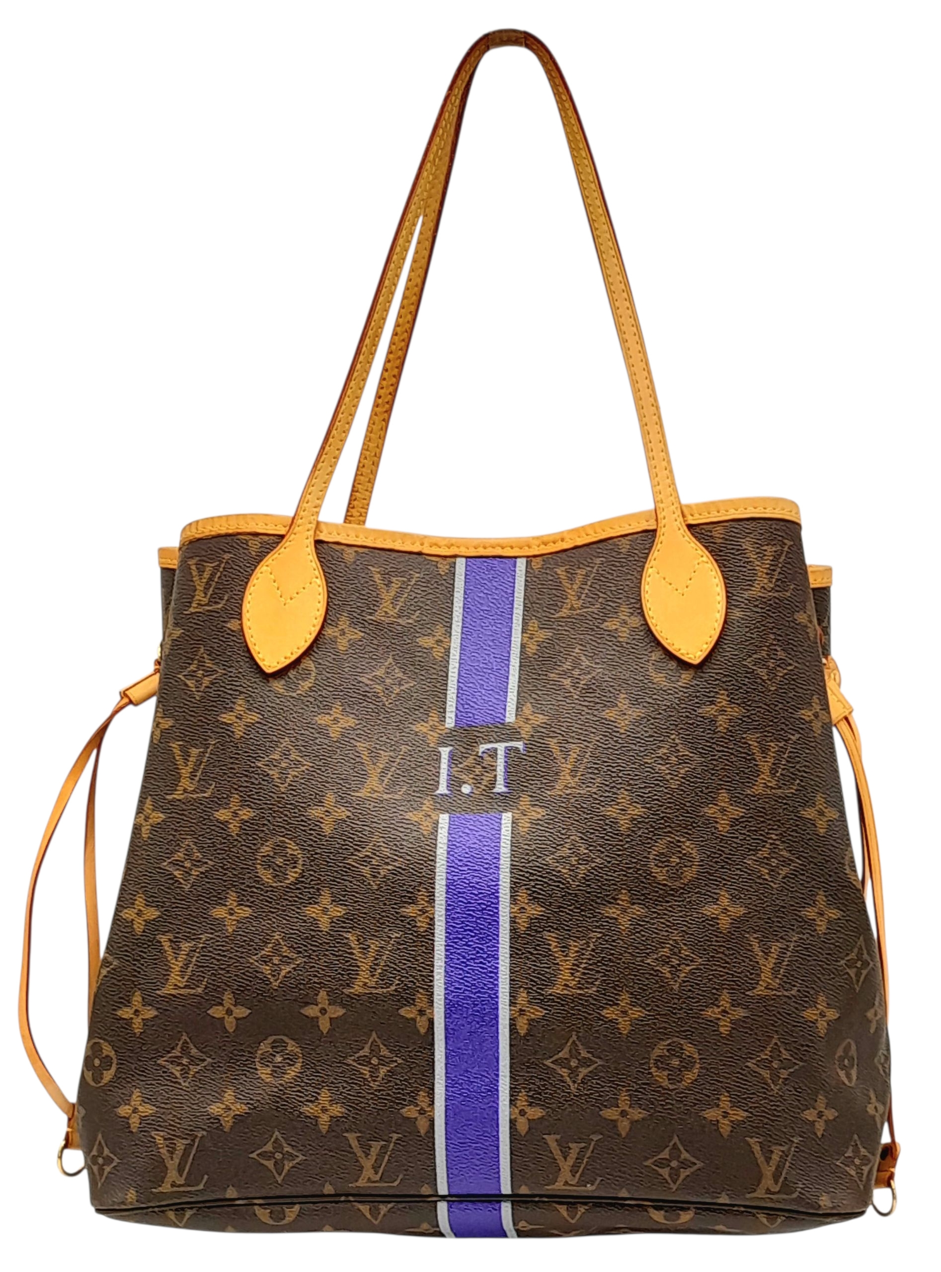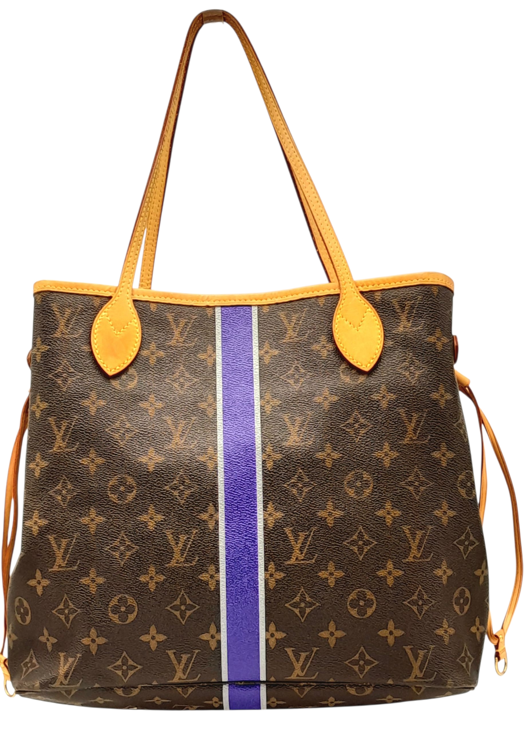 A Louis Vuitton Neverfull Tote Bag. Monogram coated canvas exterior with leather trim, two straps and double safety straps. Purple textile interior with a zipped side pocket. Approximately 44cm length x 28cm height. Some light discolouration to leather but in good condition overall - please see photos for conditions or request a condition report. . REF: STK024776