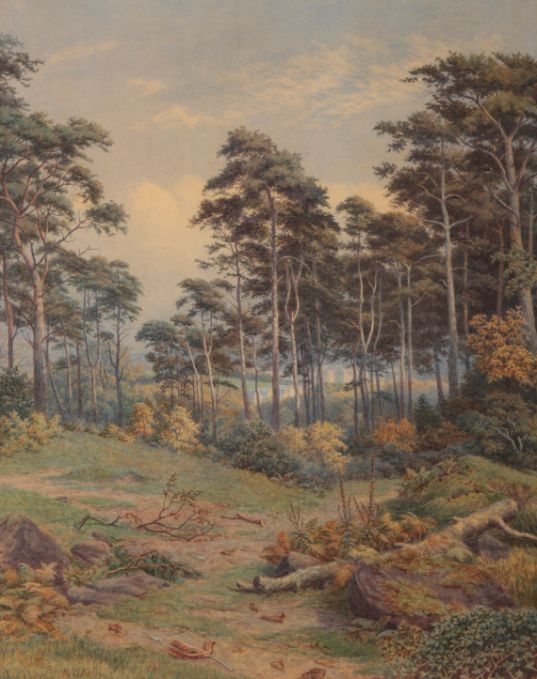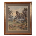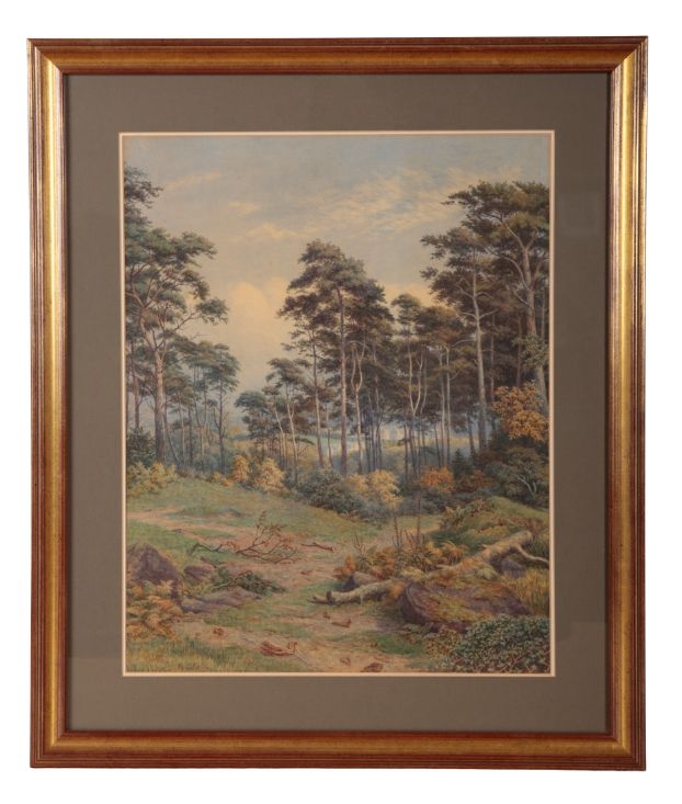 ROBERT GEORGE KELLY (1822-1910) 'In Prenton, Birkenhead' landscape with buildings visible through the trees, signed lower left, watercolour, 54cm x 43cm