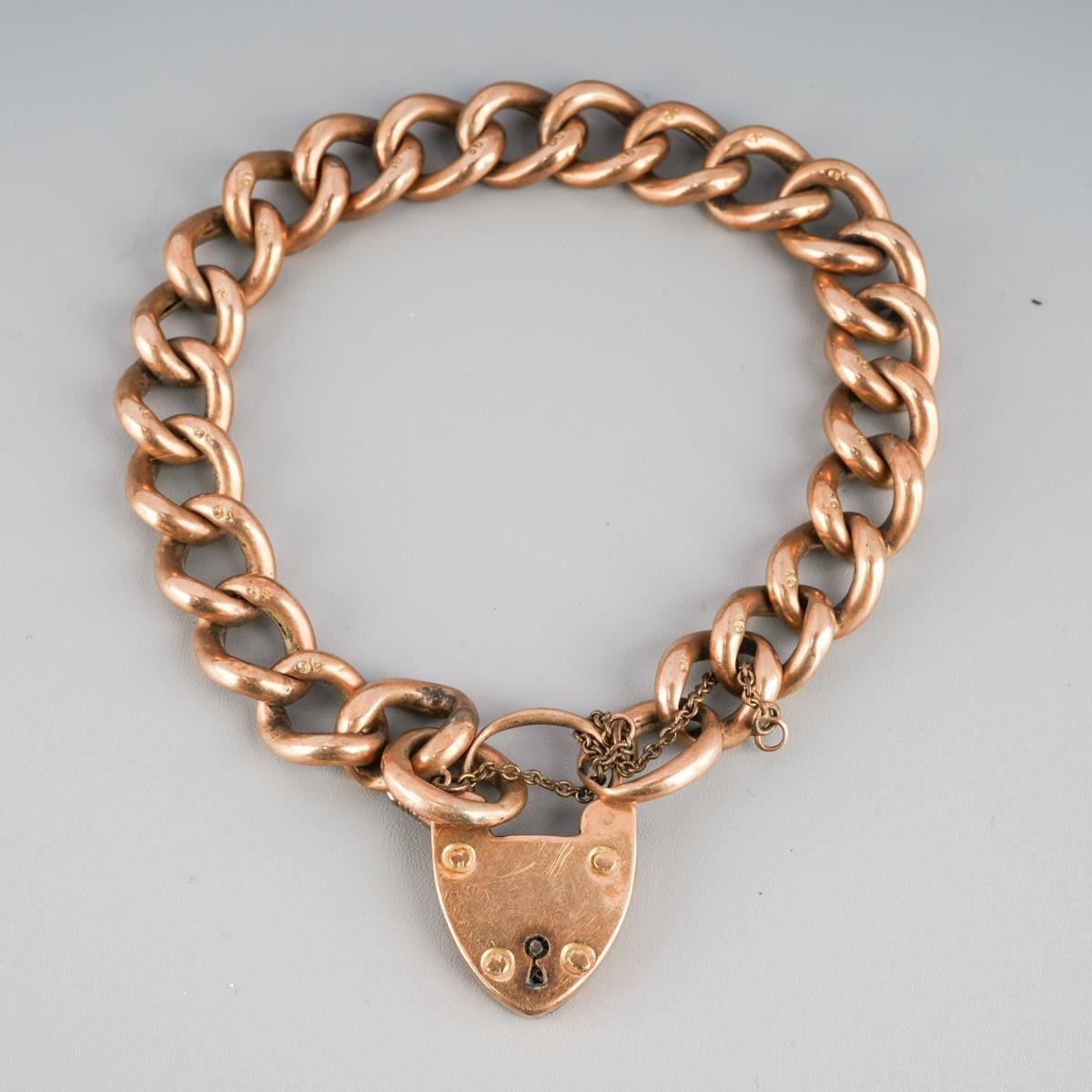 A 9ct gold curb link bracelet with heart padlock, each link of the chain marked 9c, gross weight approx. 16.9g