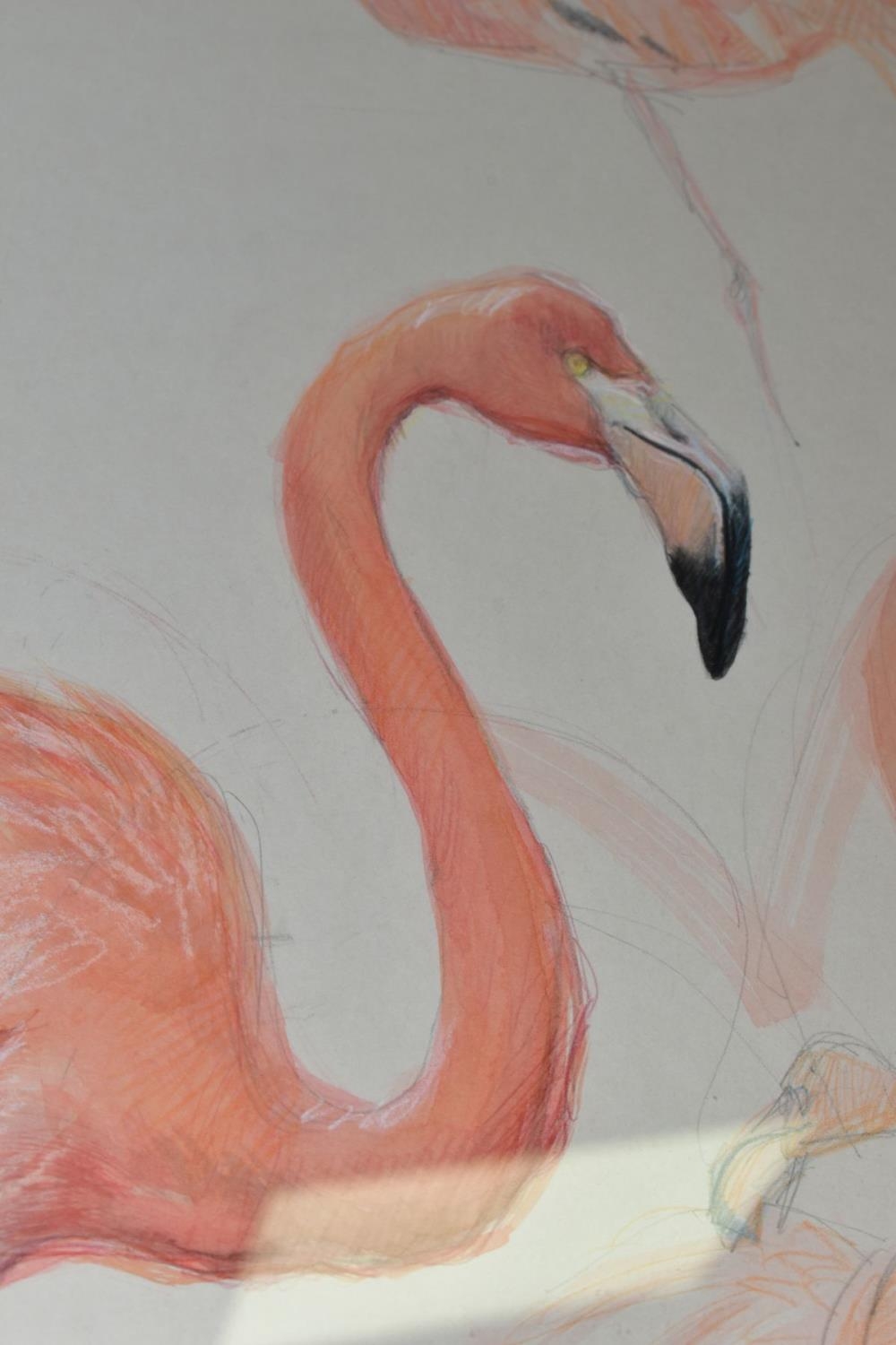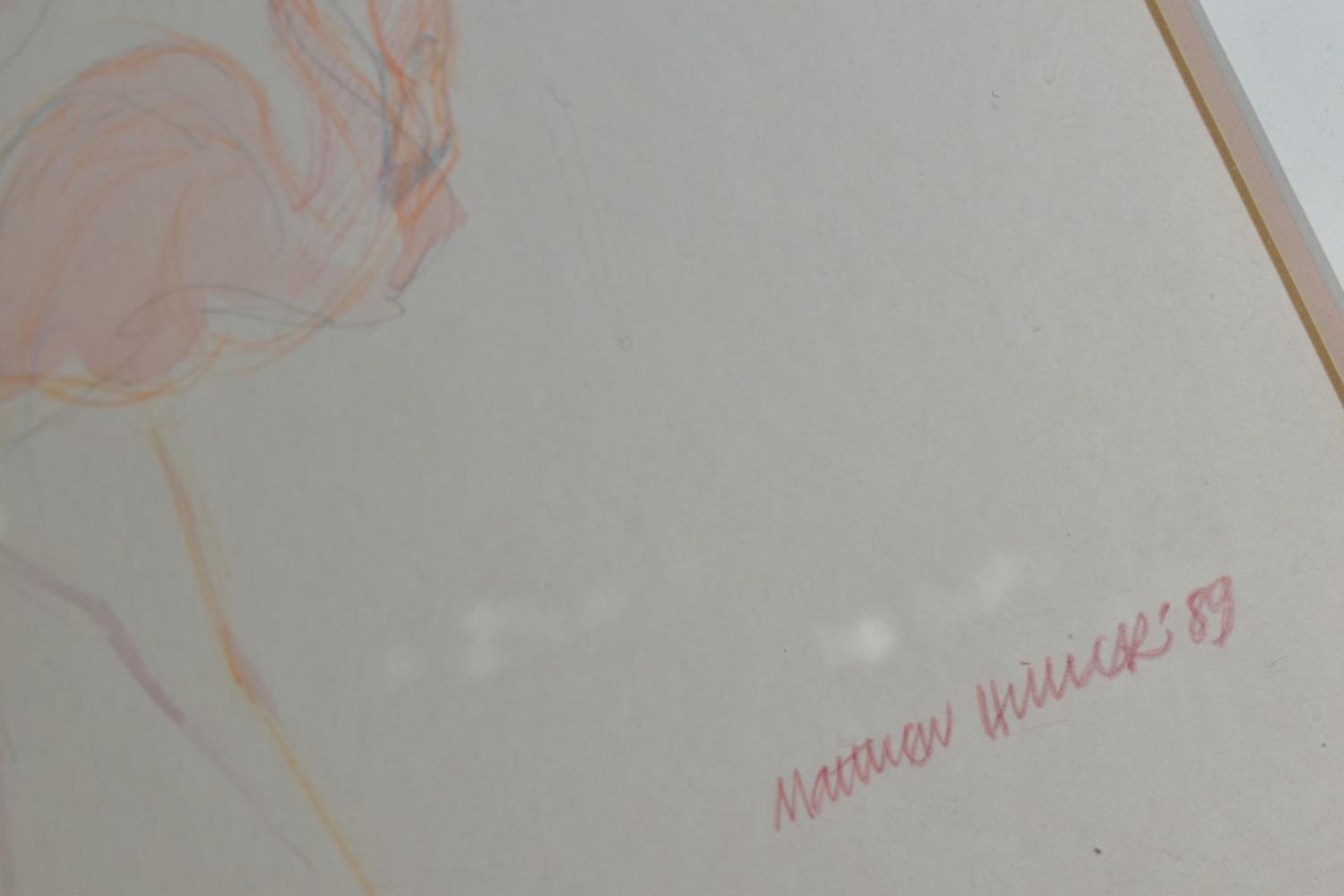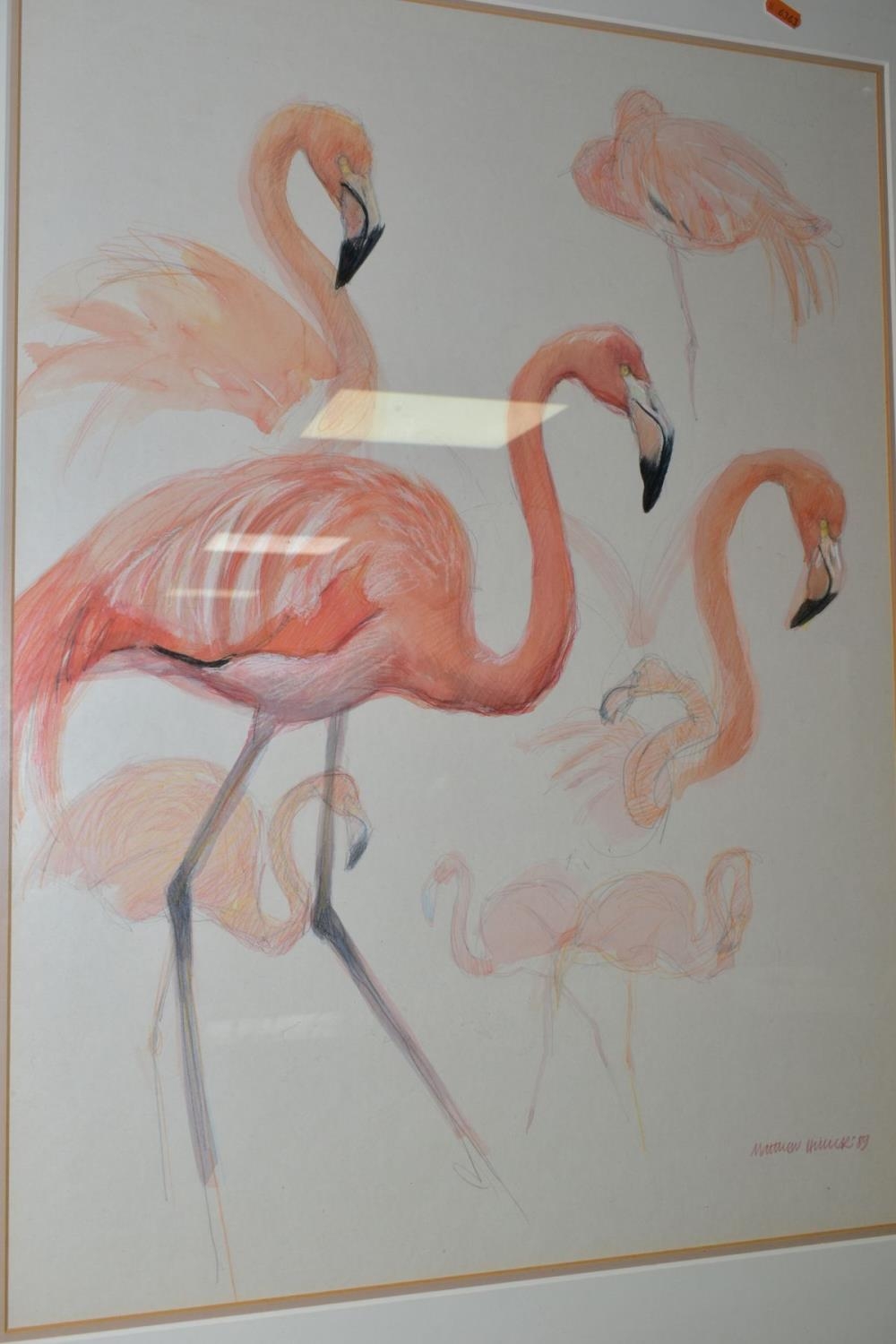 MATTHEW HILLIER (BRITISH 1958) a study of pink flamingos, signed and dated (19)89, pencil and watercolour wash on paper, mounted, framed and glazed, approximate image size 72cm x 52cm