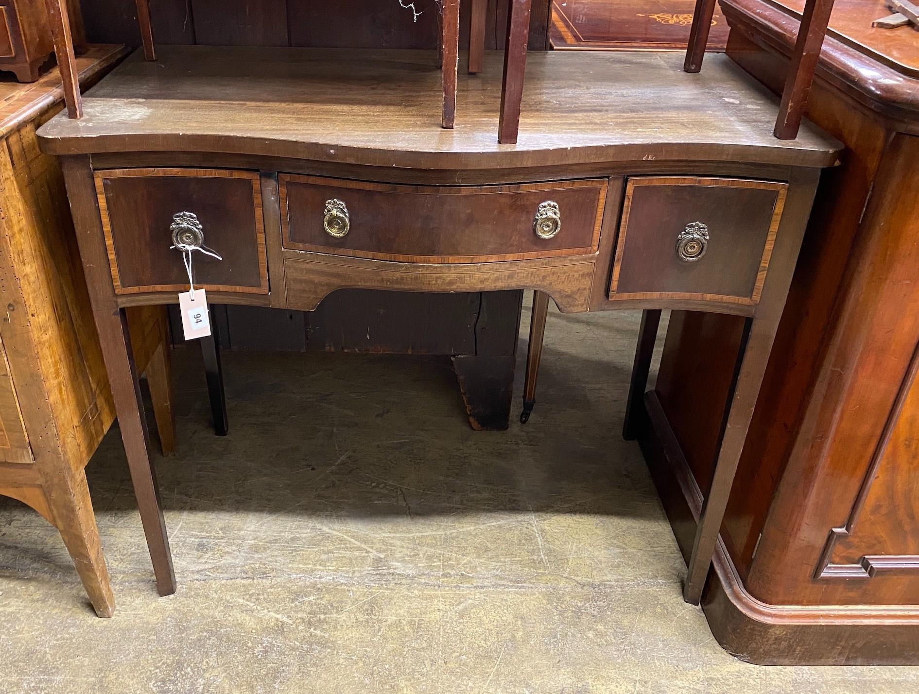 An Edwardian satinwood banded mahogany serpentine side table, width 100cm, depth 53cm, height 83cm