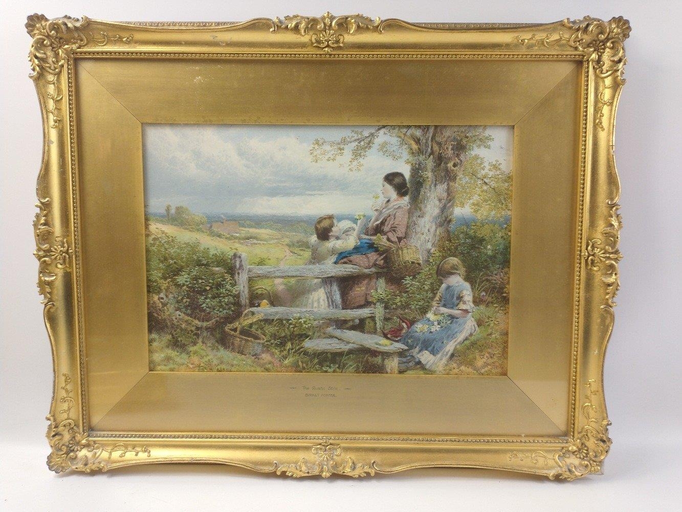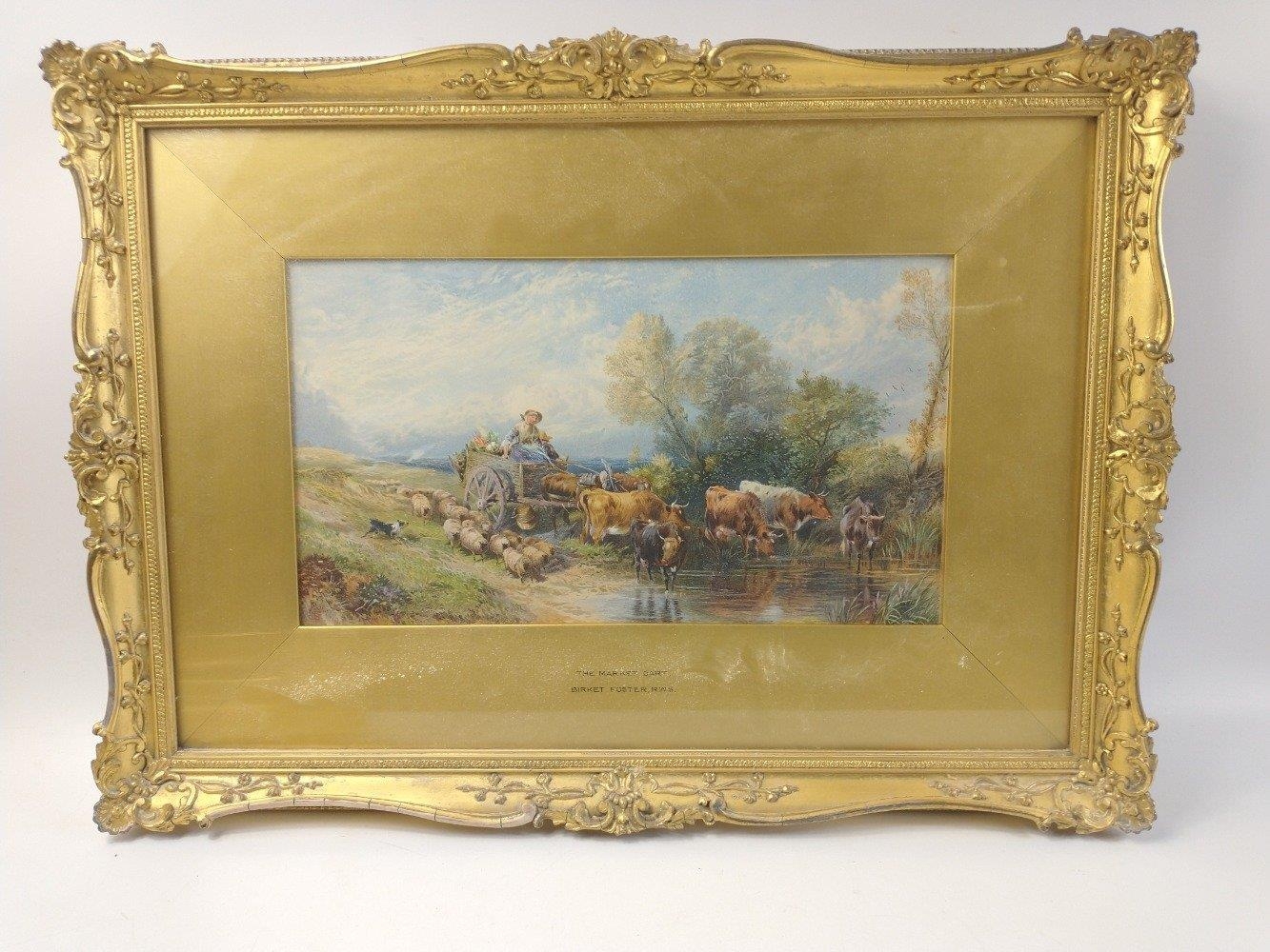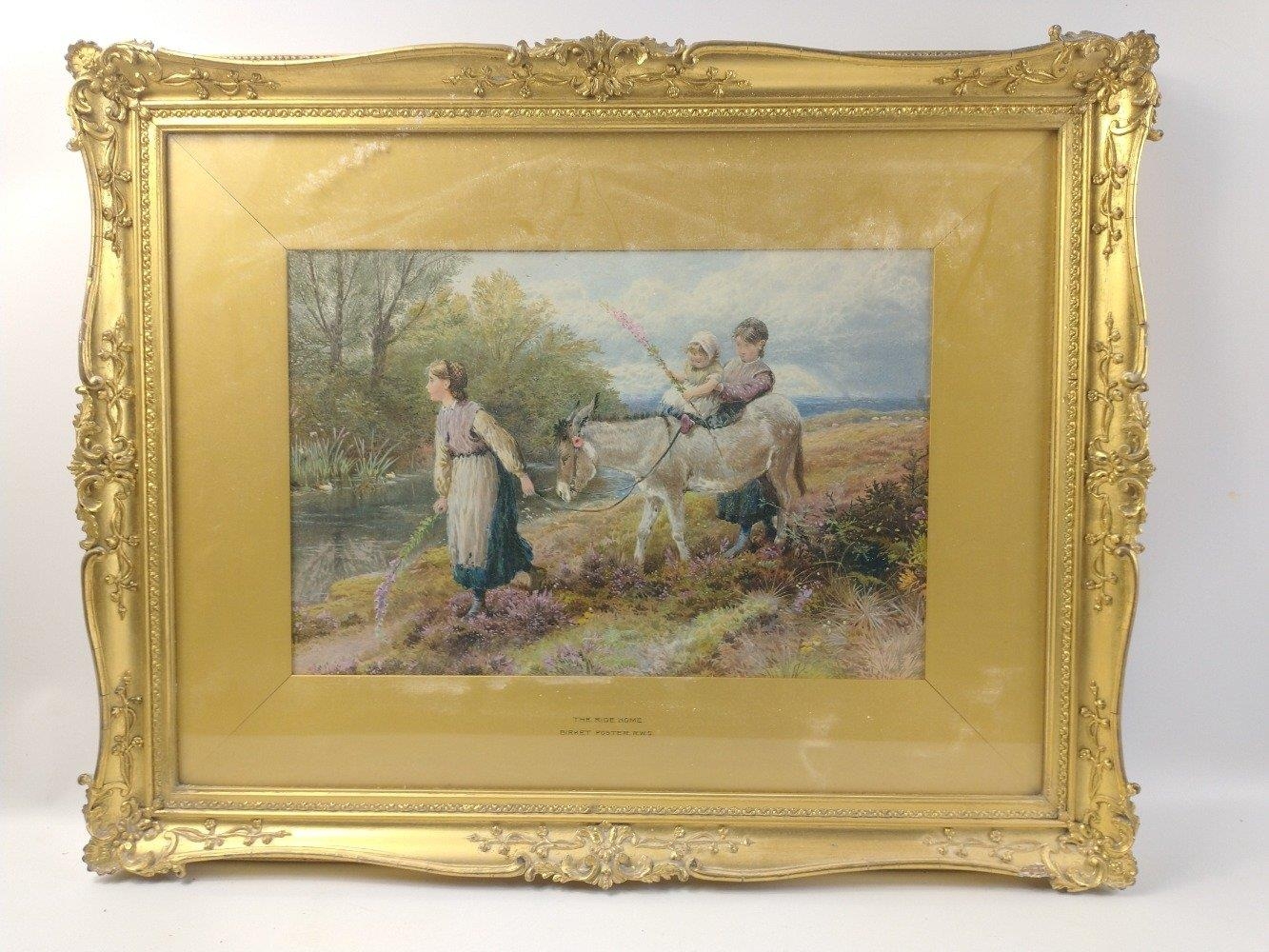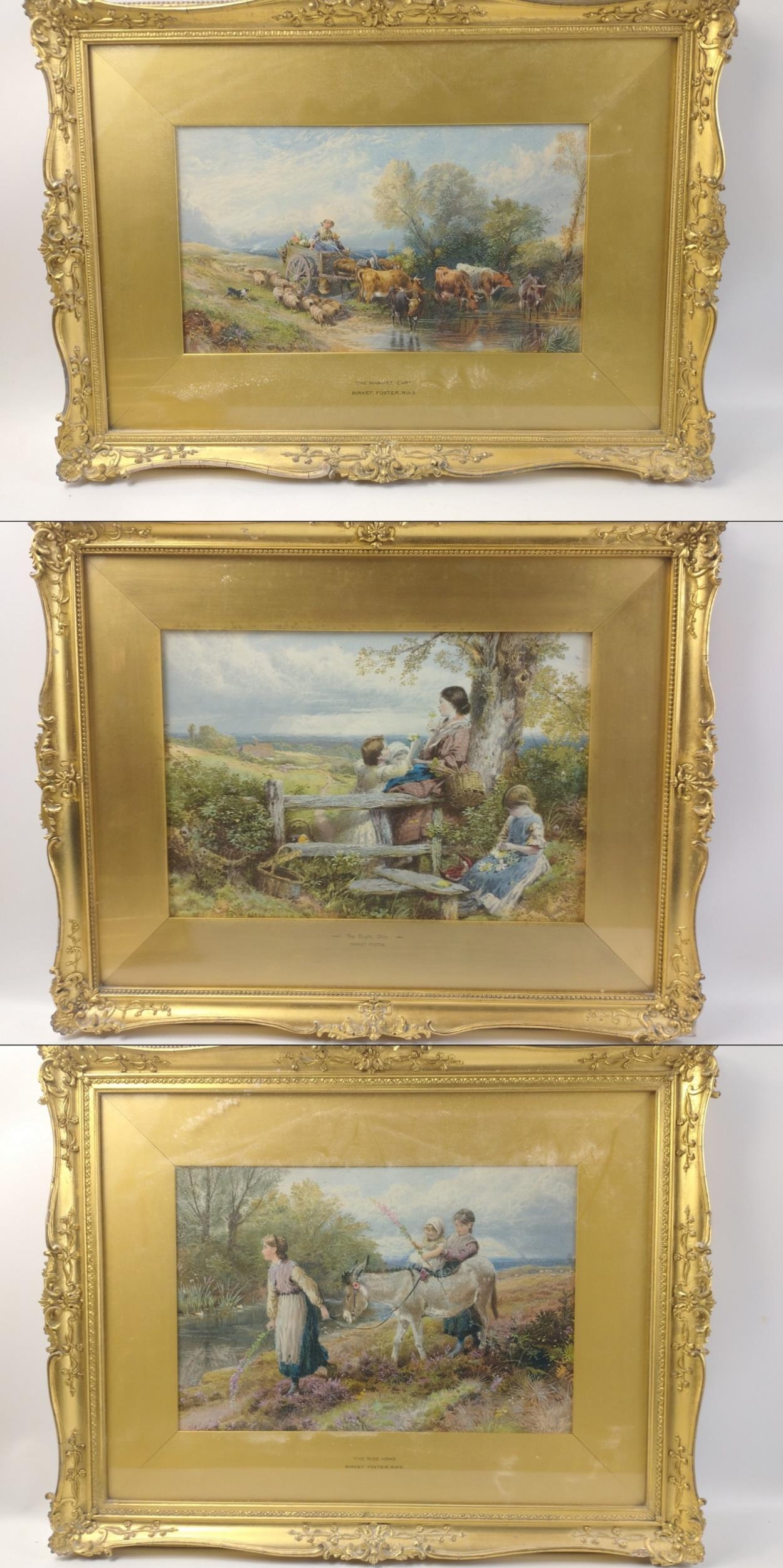 Three quality prints of works in ornate gilt frames by BIRKET FOSTER including 'The Rustic Stile' (frame size 55x42cm approx), 'The Market Cart' (frame size 58x40cm approx frame damaged), and 'The Ride Home' (frame size 60x47cm approx)