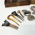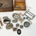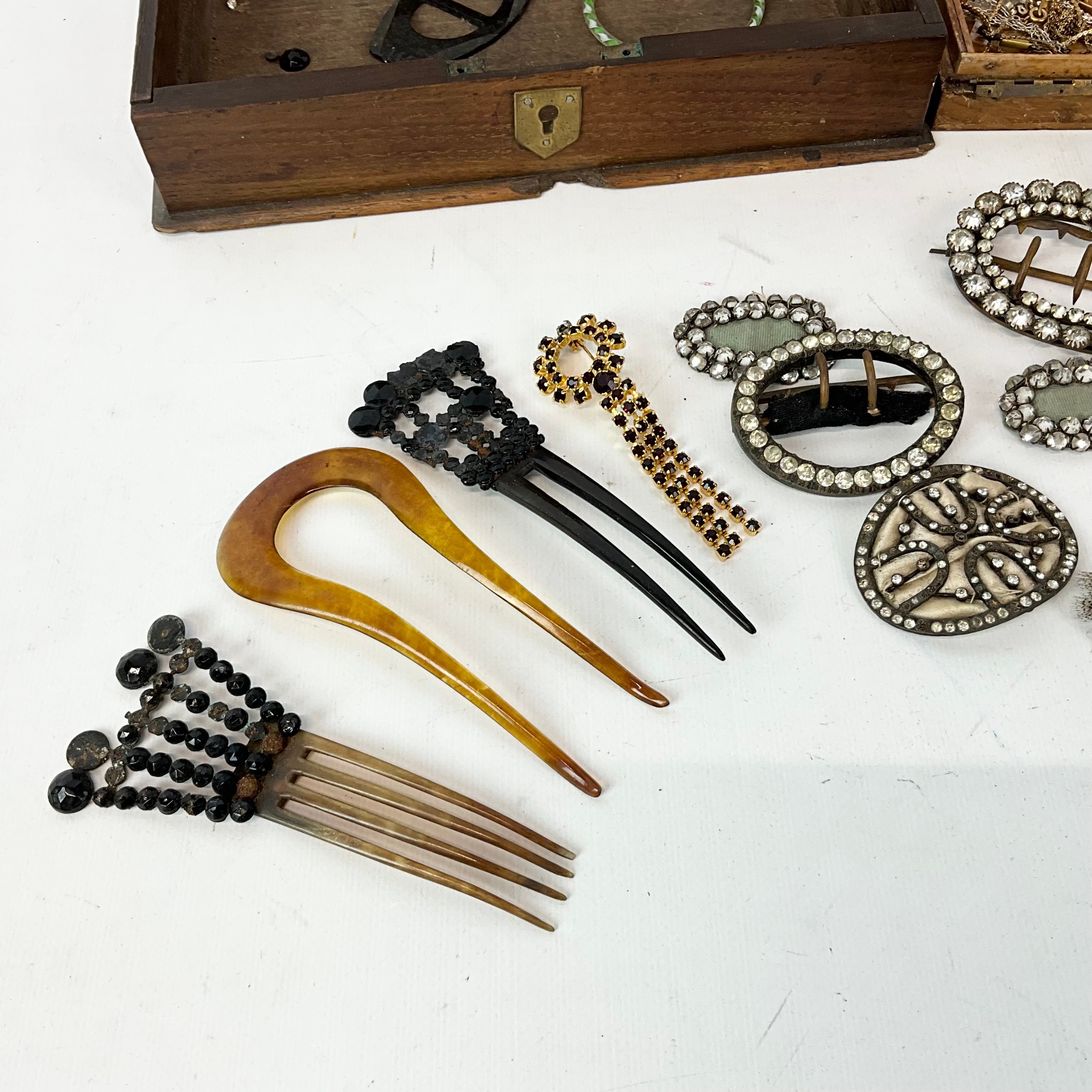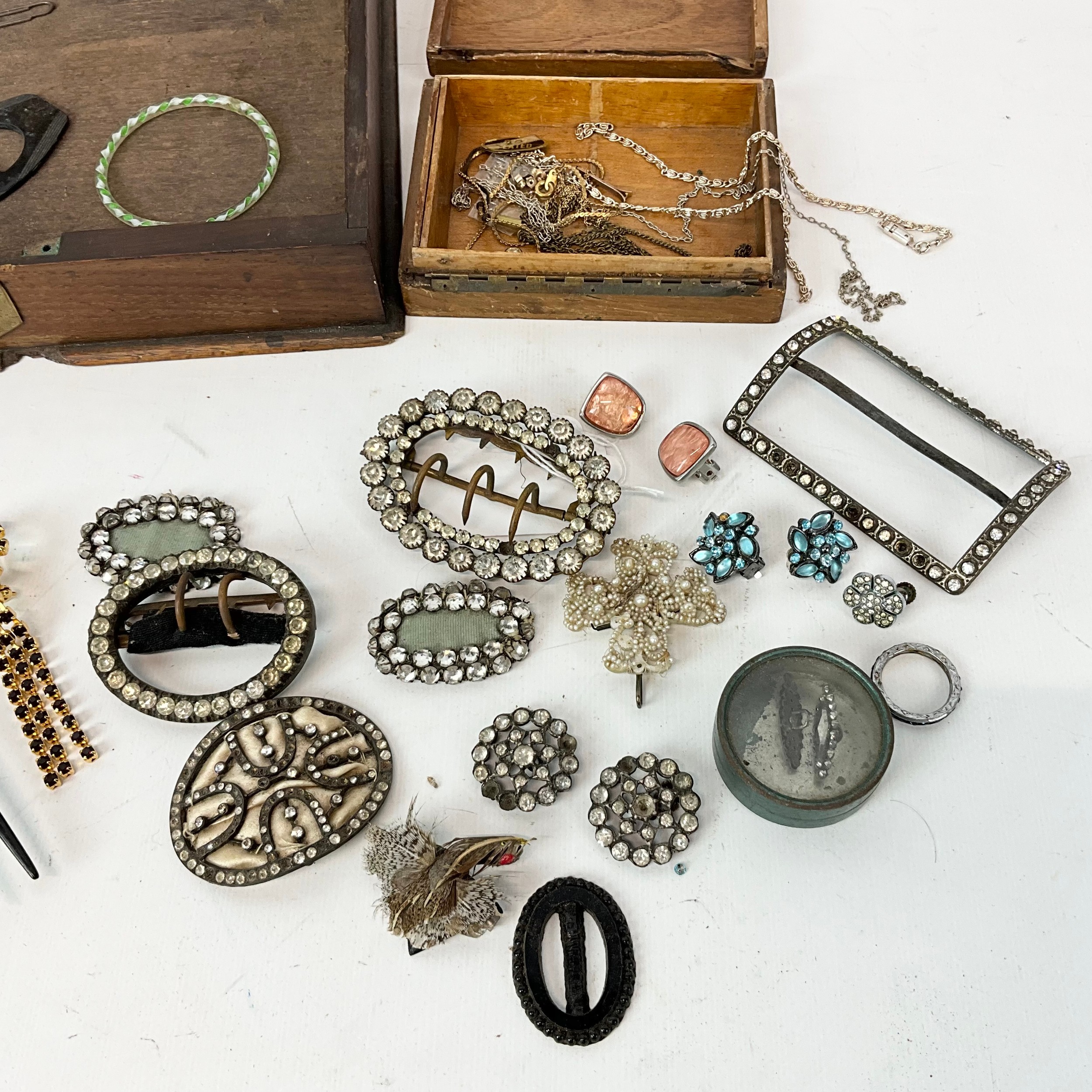 An assortment of Georgian buckles, Venetian glass twist bangle, along with various costume jewellery.