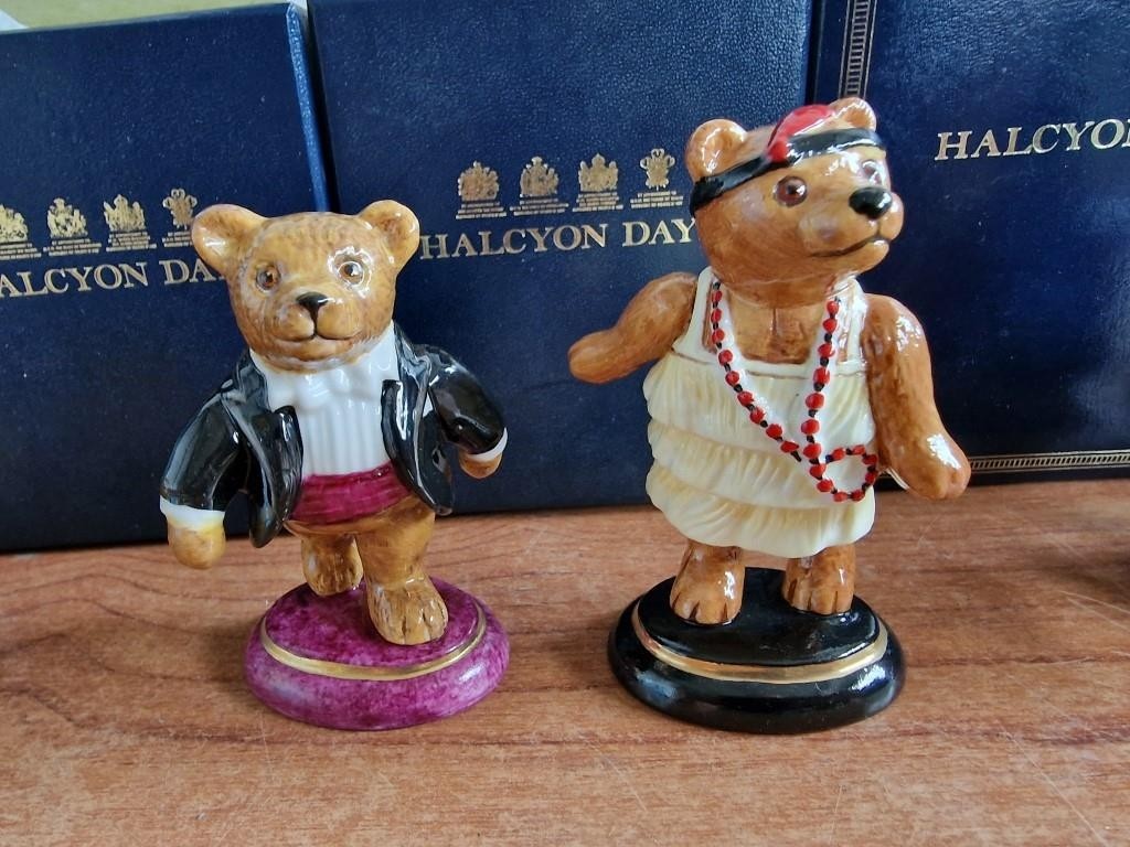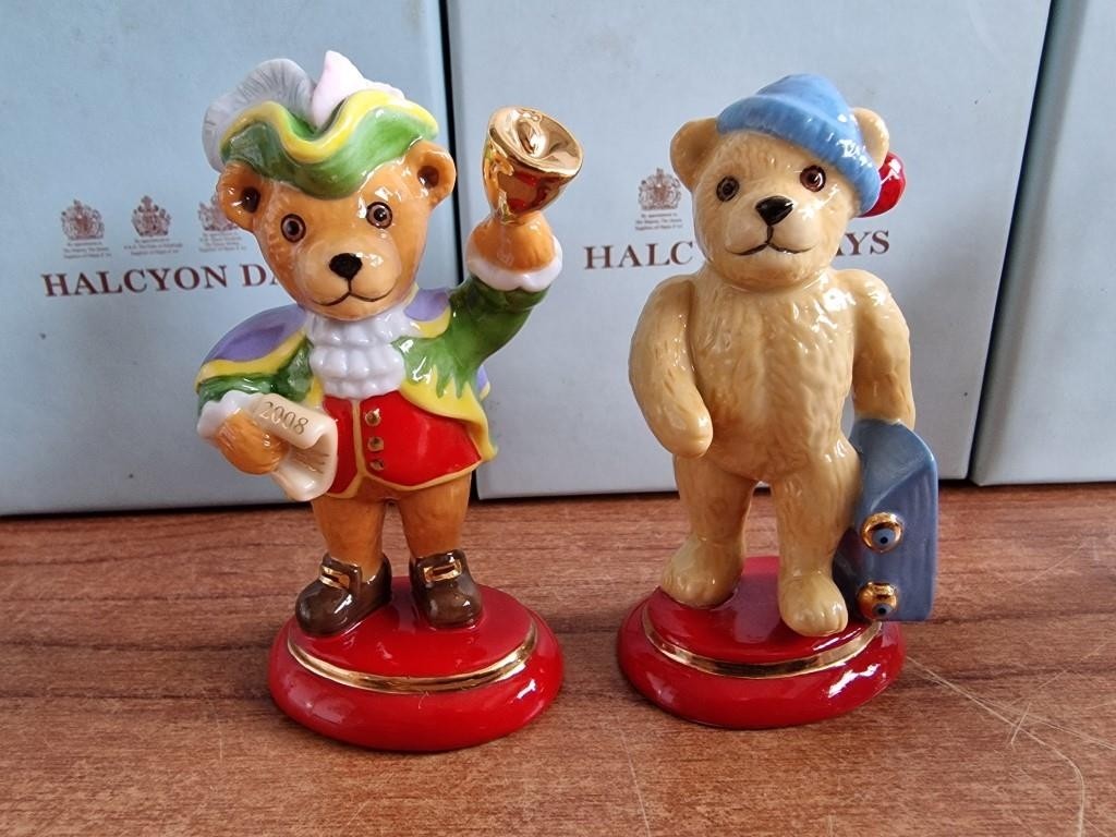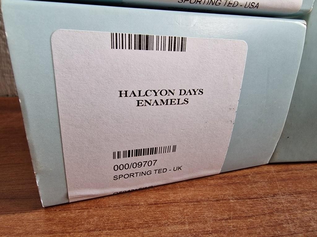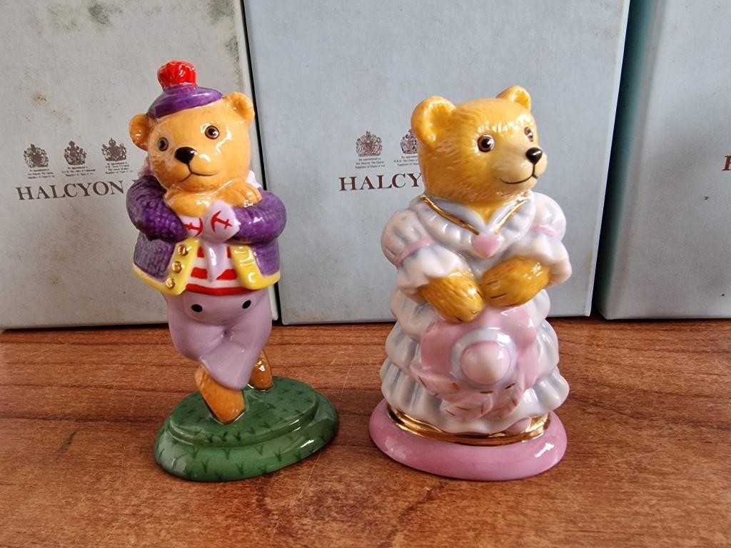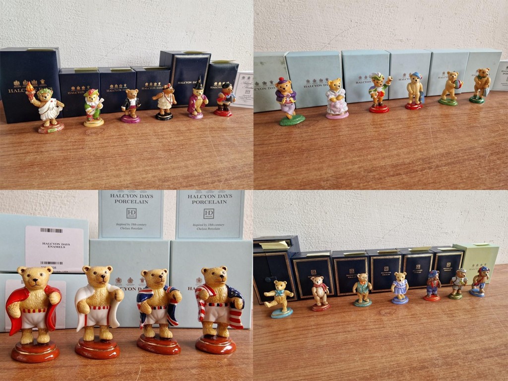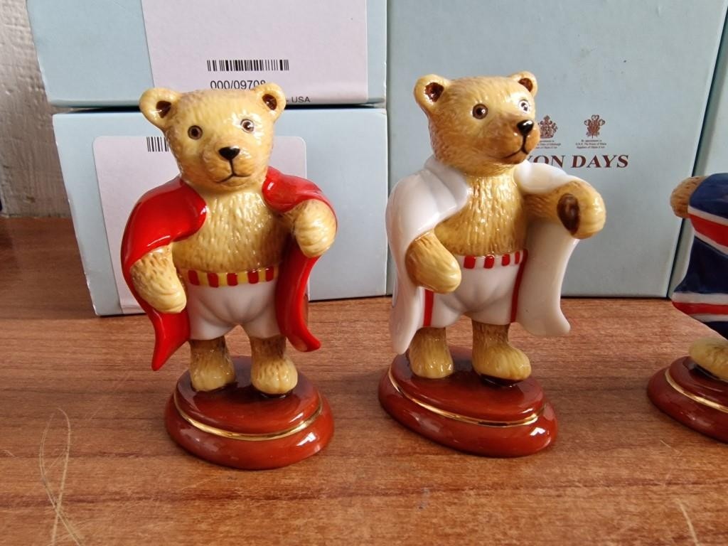 Collection of 23 x Halcyon Days Annual 'Teddy of the Year' Hand Painted Porcelain Figurines; Consecutive Years from 1993 to 2011, Together with 4 x 2012 'Sporting Teds' with Different County Flags, Each with Original Box, (23)