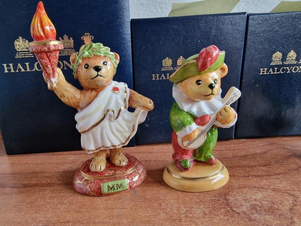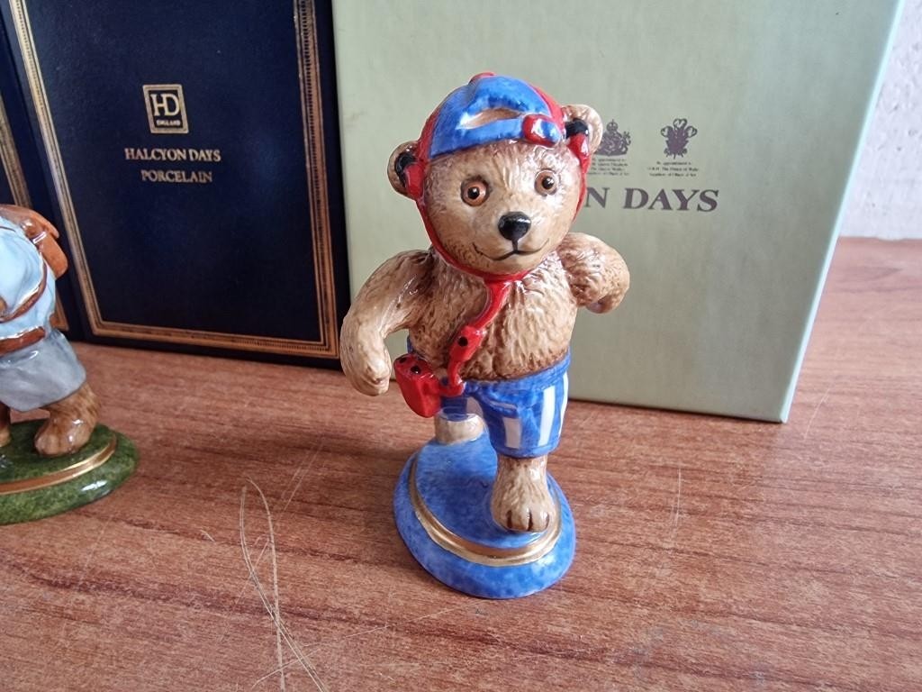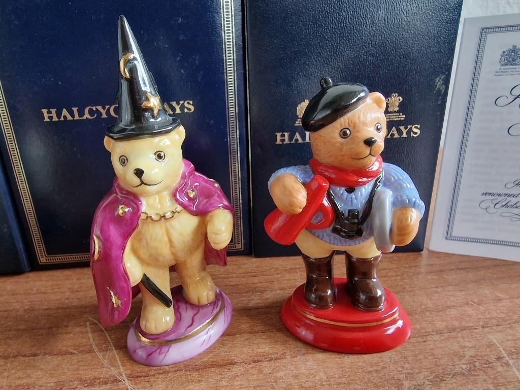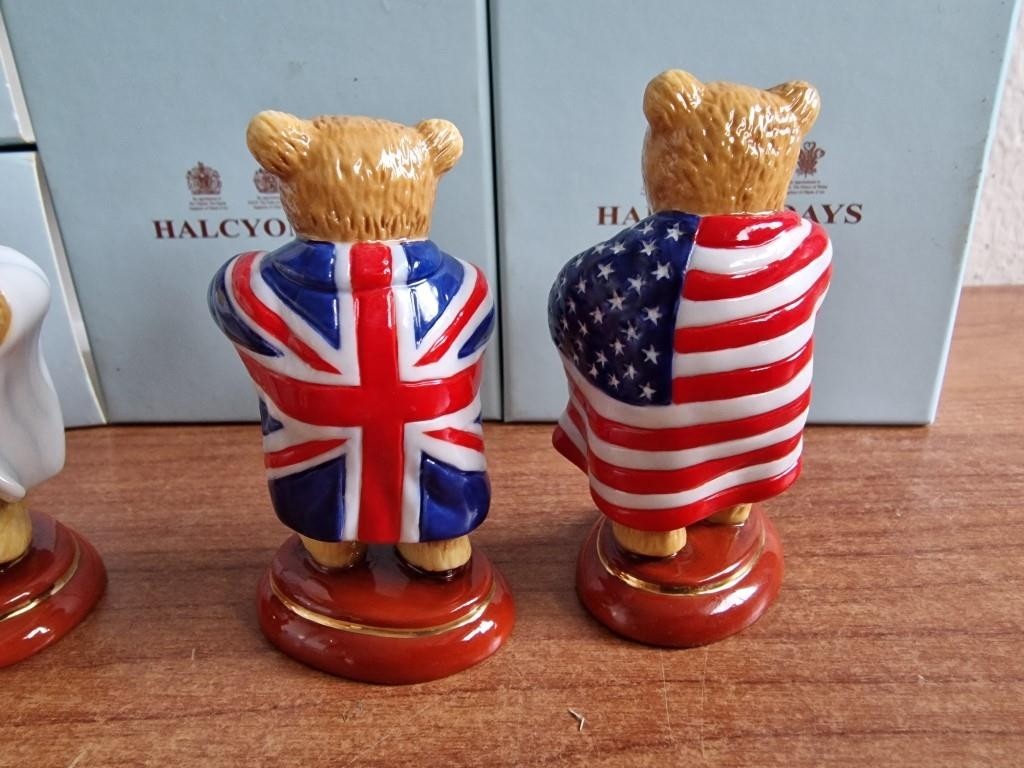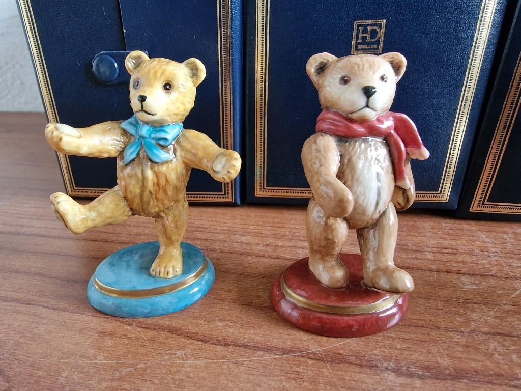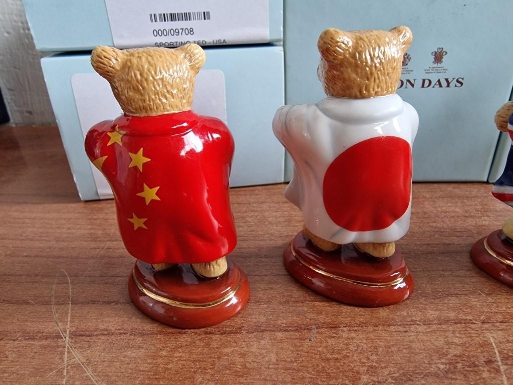 Collection of 23 x Halcyon Days Annual 'Teddy of the Year' Hand Painted Porcelain Figurines; Consecutive Years from 1993 to 2011, Together with 4 x 2012 'Sporting Teds' with Different County Flags, Each with Original Box, (23)