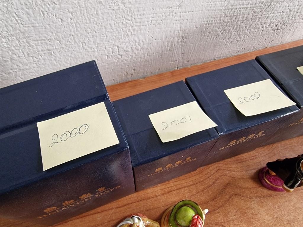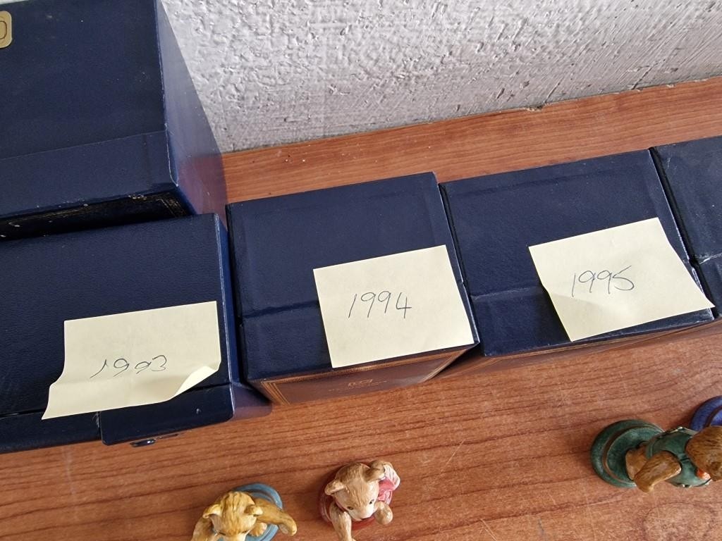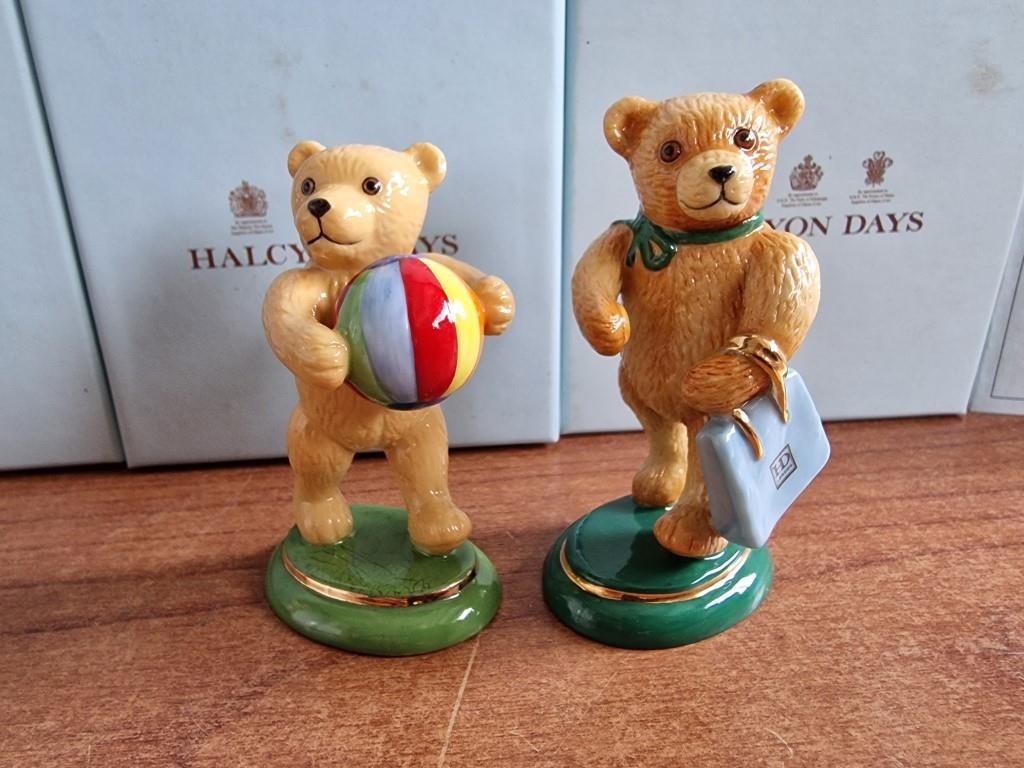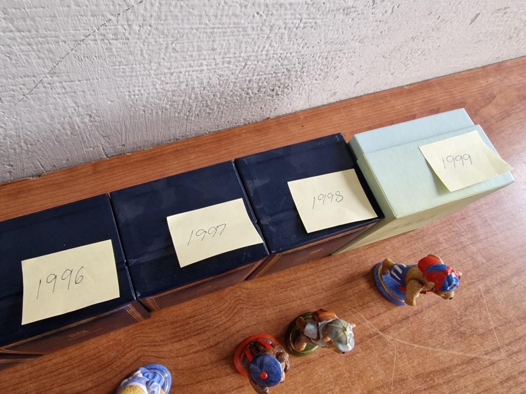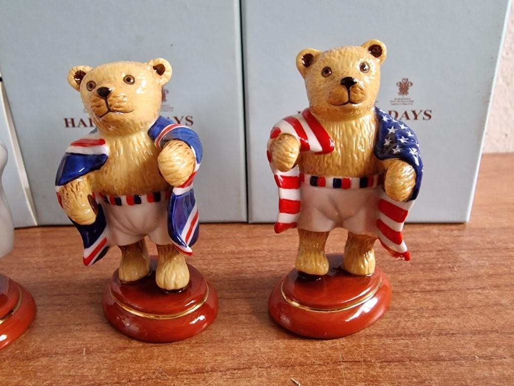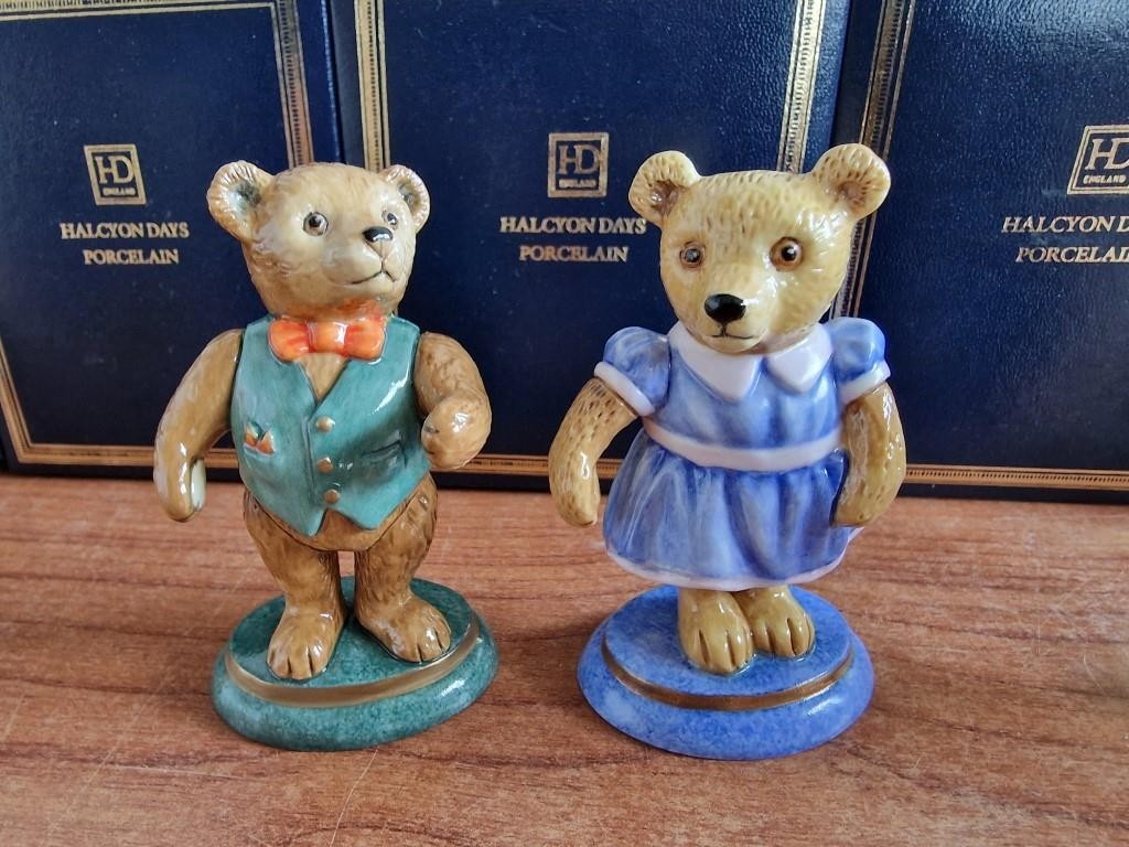 Collection of 23 x Halcyon Days Annual 'Teddy of the Year' Hand Painted Porcelain Figurines; Consecutive Years from 1993 to 2011, Together with 4 x 2012 'Sporting Teds' with Different County Flags, Each with Original Box, (23)