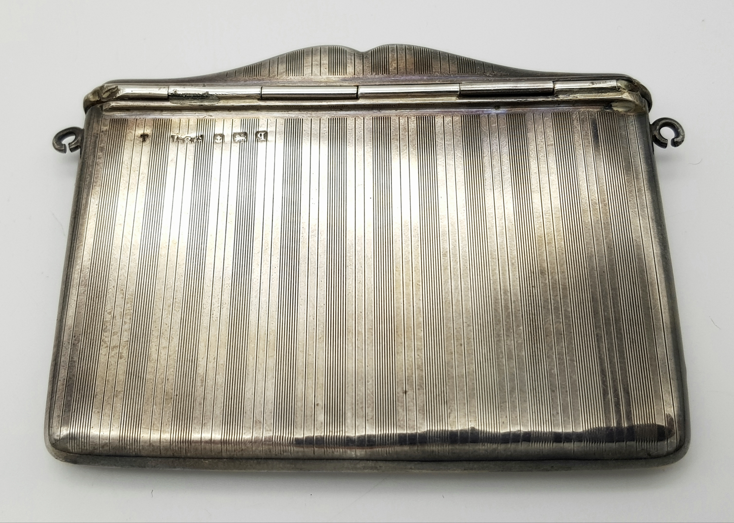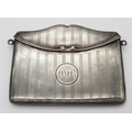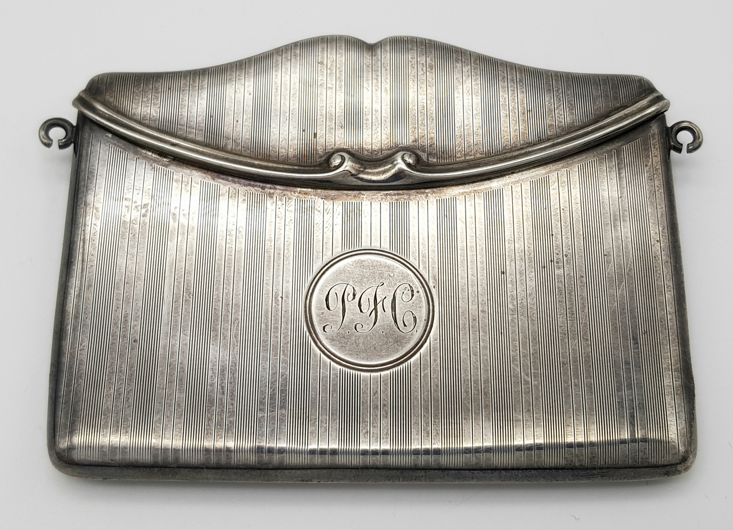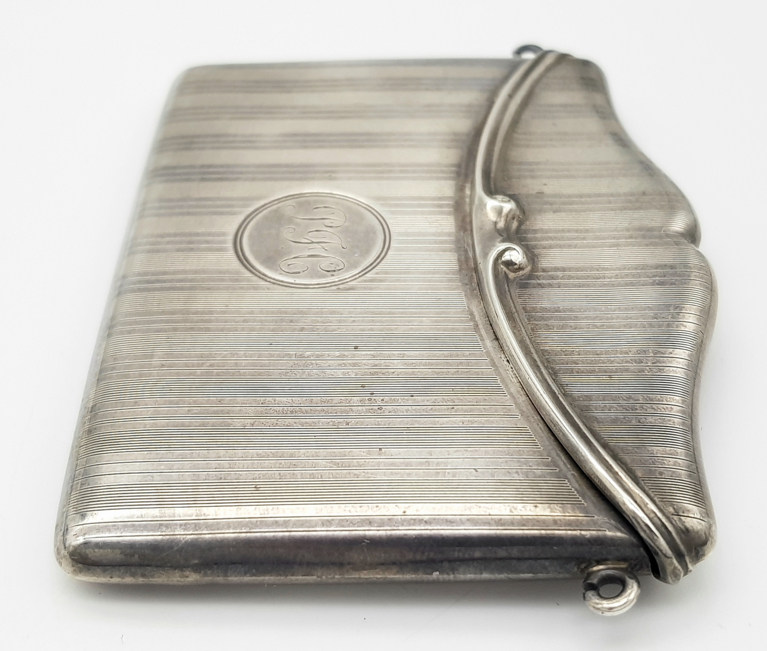 Antique SILVER CARD CASE. Birmingham 1915. Taking the form of an Envelope with Attractive Chased Design and Initialled Cartouche. 9 cm x 7 cm .