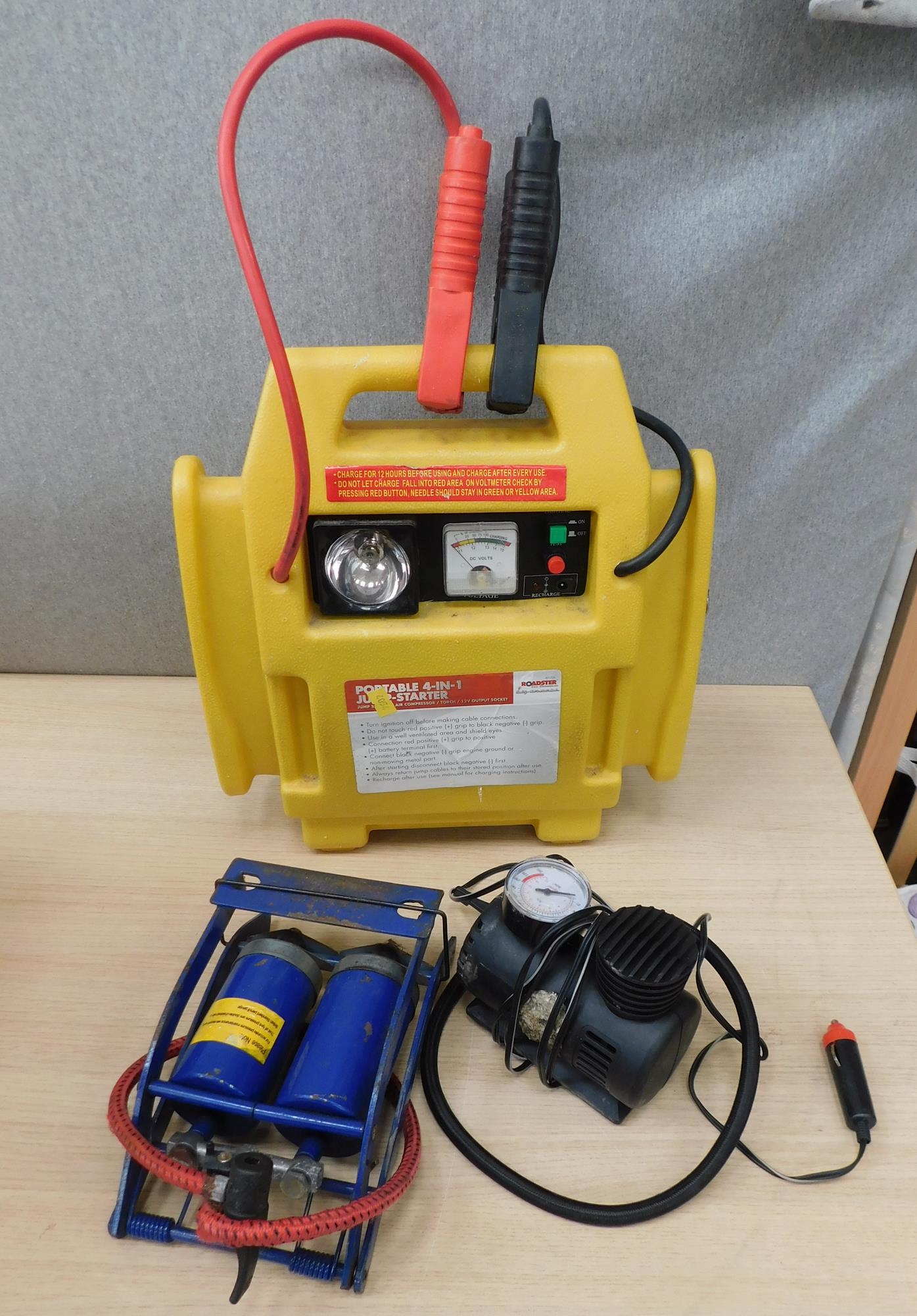 Portable 4 in 1 jump starter, foot pump etc. - unchecked