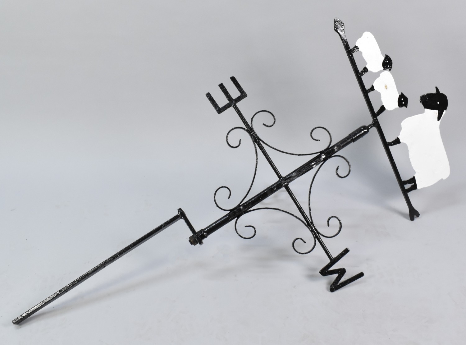A Wall Mounting Wrought Iron Wind Vane with Suffolk Ewe and Lamb Motif, 110cms High