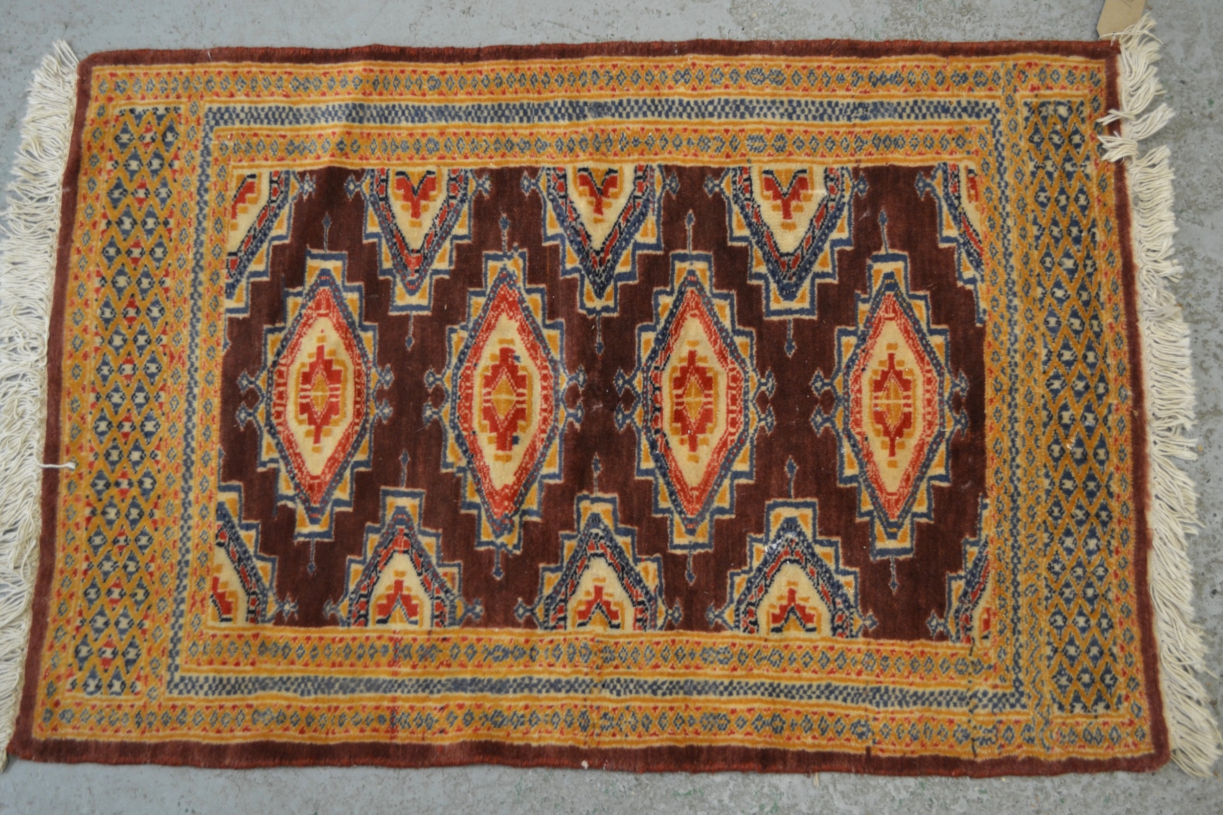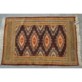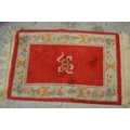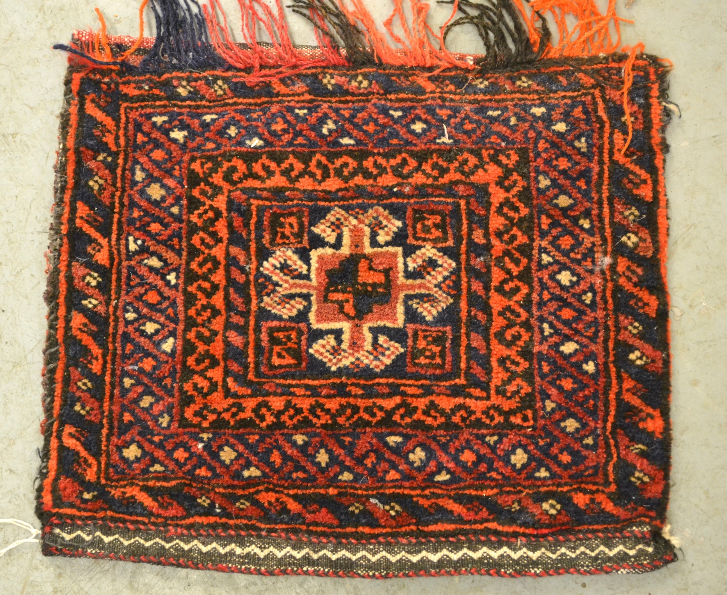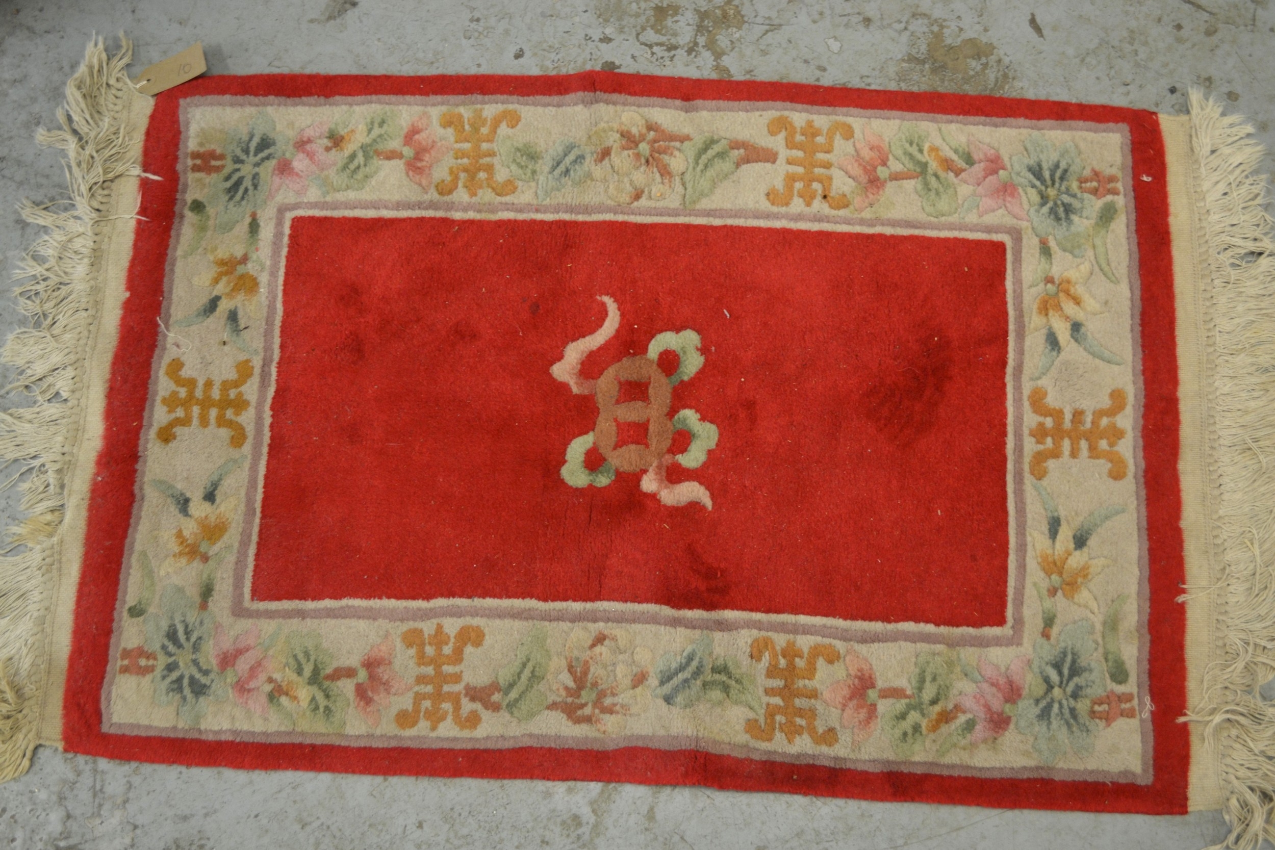 Small tent bag with central hooked medallion and multiple borders, two small Chinese floral decorated rugs and another small antique style rug