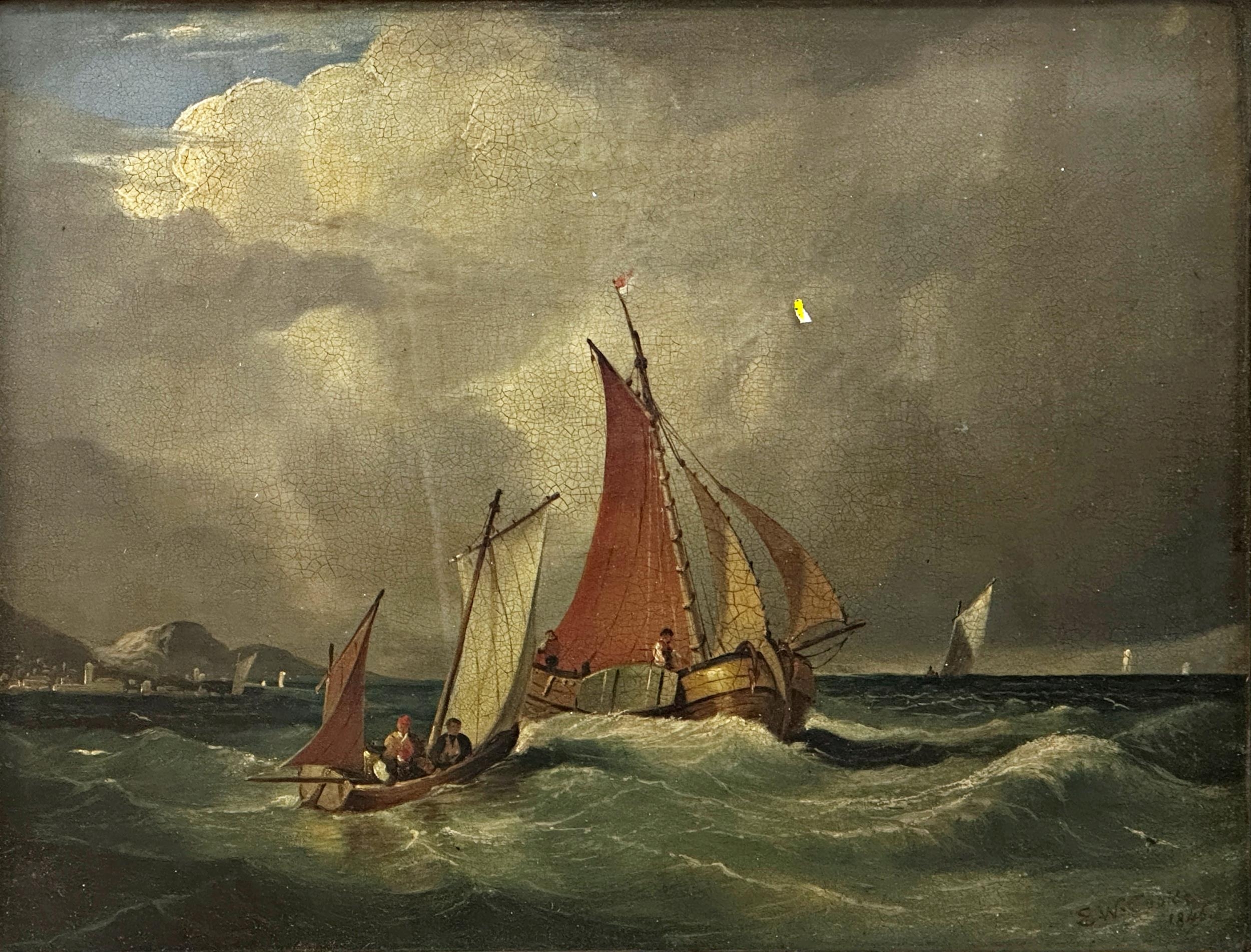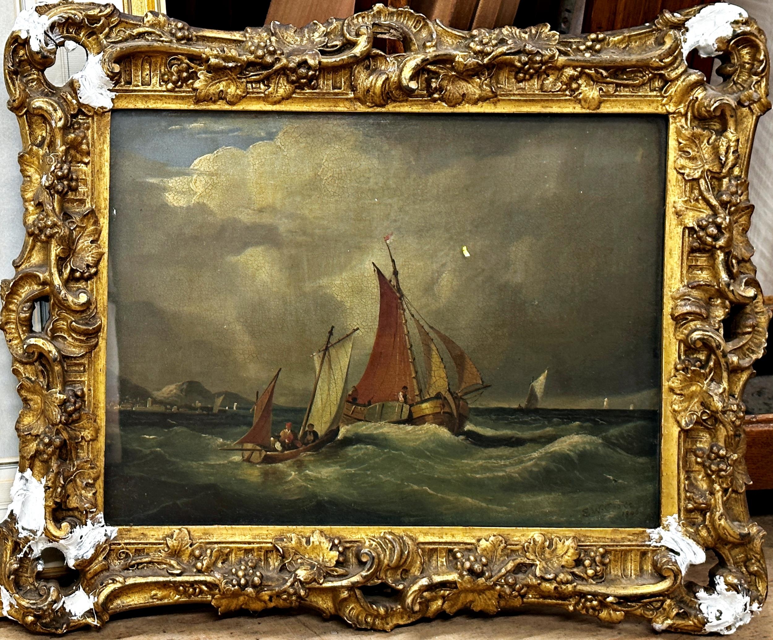 Edward William Cooke (1811-1880) - Marine scene of sailing vessels on choppy water, signed and dated 1846, oil on canvas, 30 x 40cm, giltwood frame