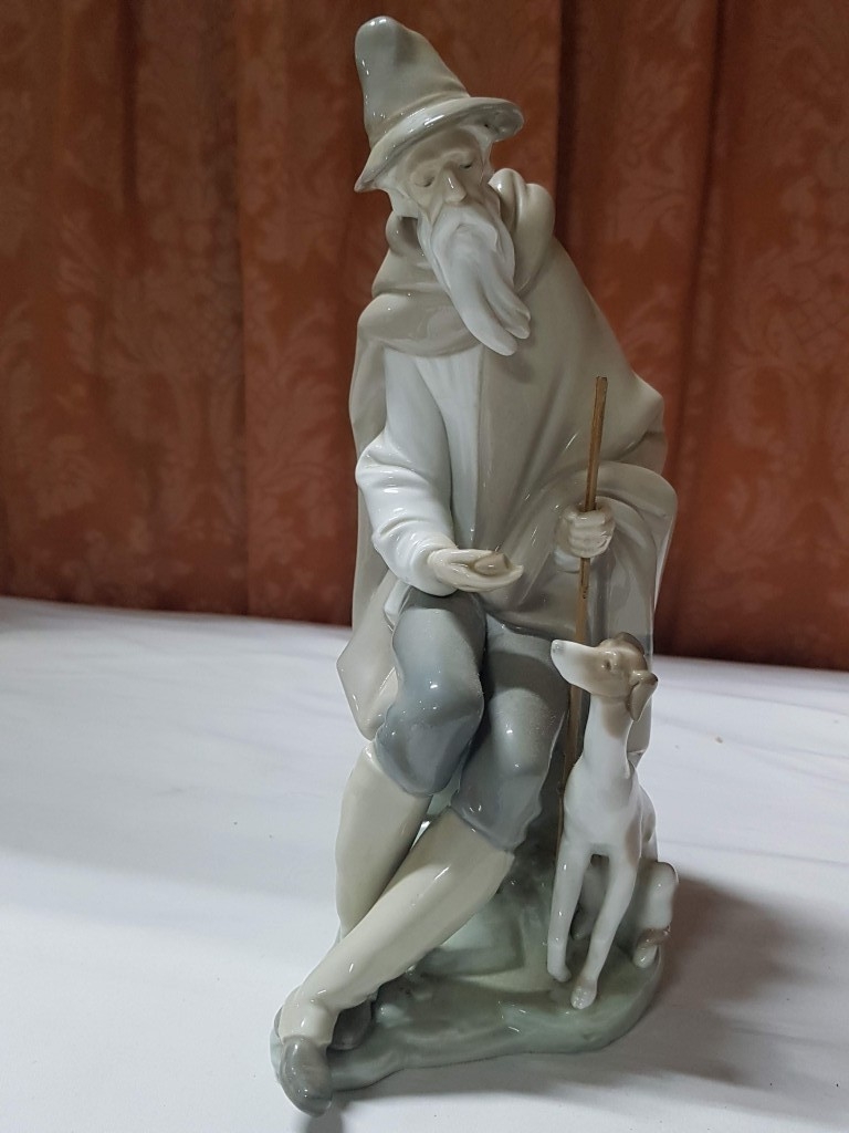 Lladro, Spanish Porcelain, 'Medigo' Beggar Men & Dog by Juan Heurta, #1094, Circa 1981 (Approx. H: 28cm)